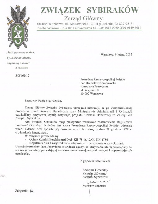 Odznaka Honorowa za Zasługi dla Związku Sybiraków