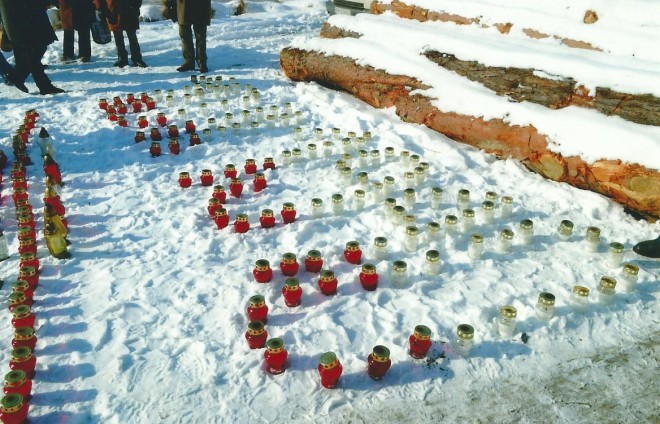 Znicze na rampie kolejowej w Bakończycach