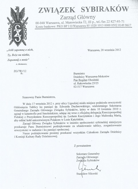 Tablica poświęcona pamięci Edwarda Duchnowskiego