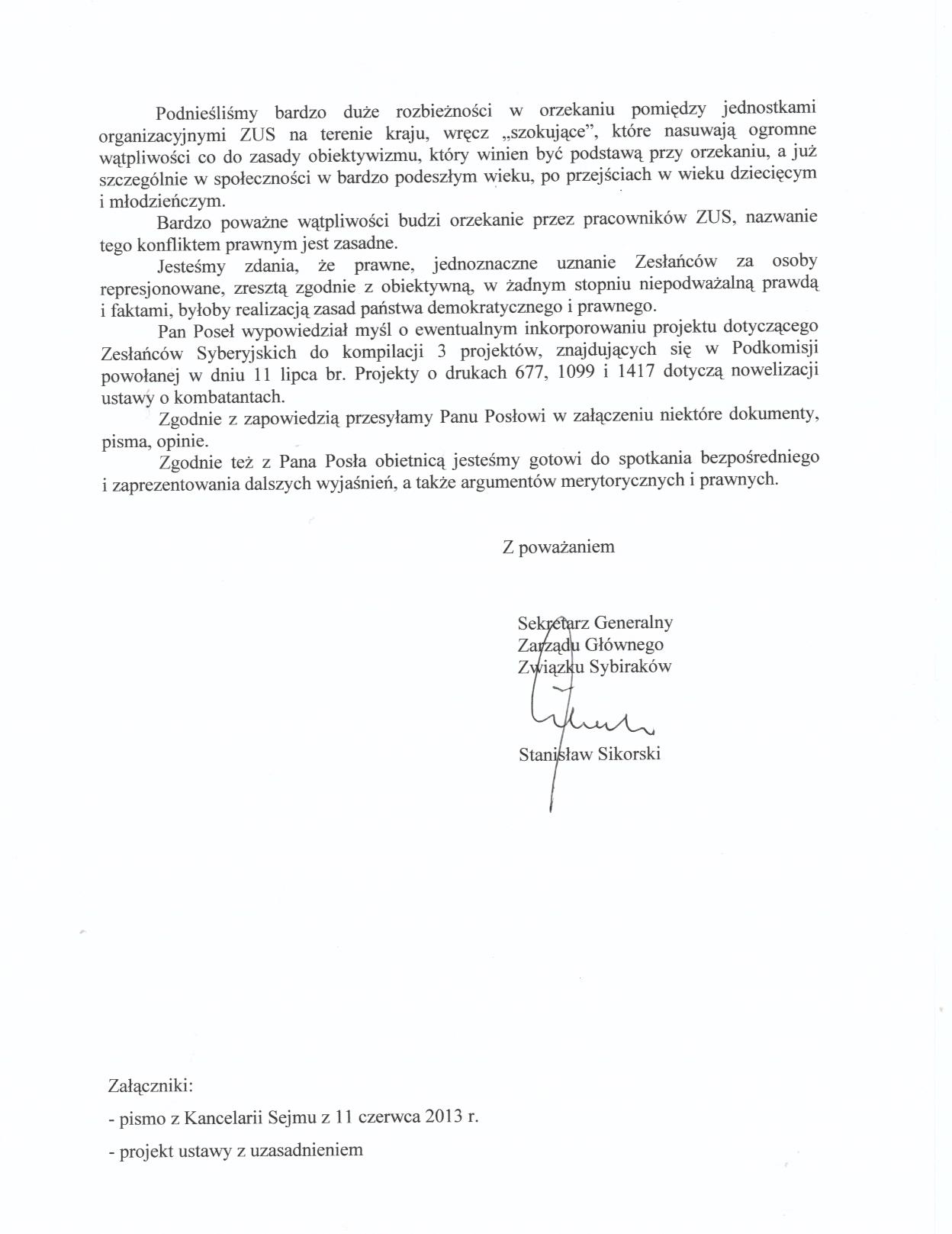 Pismo do posła na Sejm RP Sławomira Piechoty