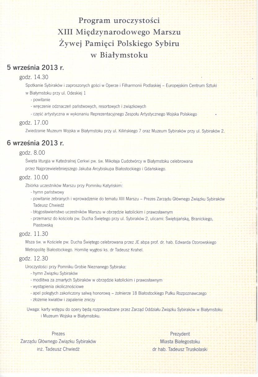 Przeczytano 17 Nawigacja wpisu XIII Międzynarodowy Marsz Żywej Pamięci Polskiego Sybiru w Białymstoku 5–6 września 2013 r.