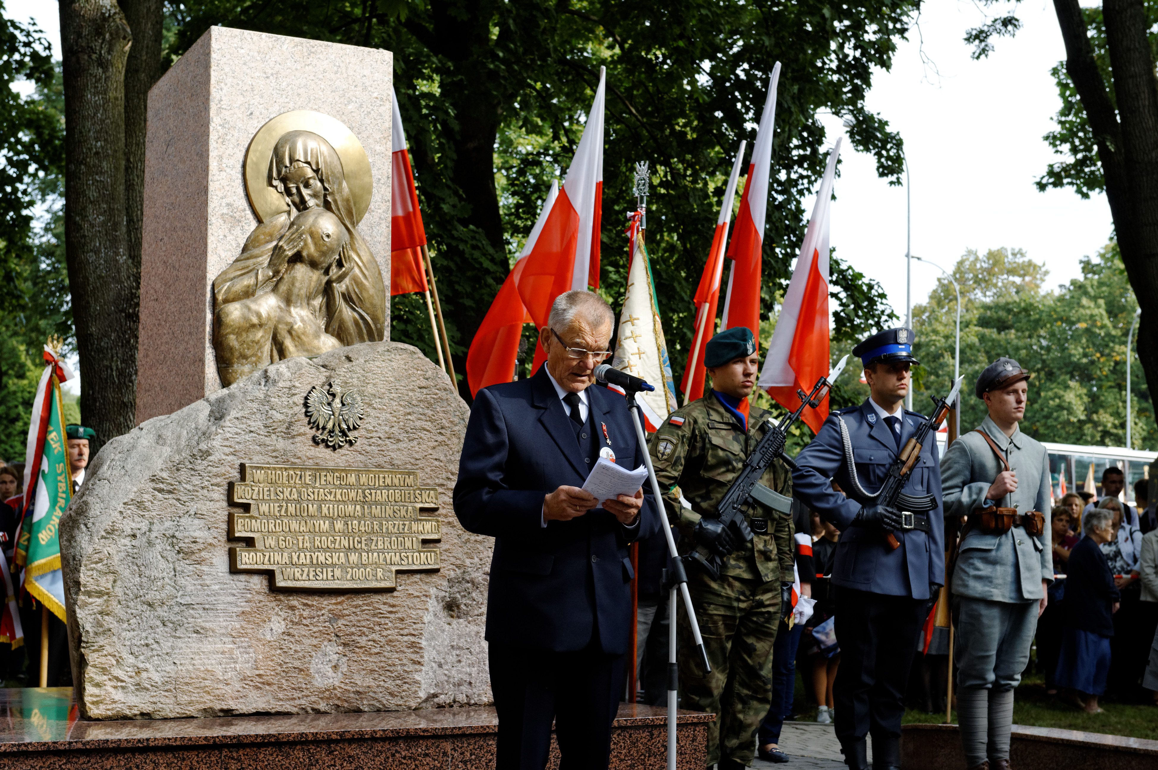 Przemówienie prezesa Tadeusza Chwiedzia przy Pomniku Katyńskim