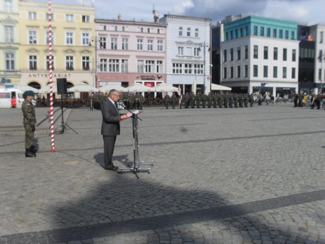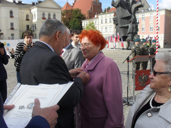17 września 2017 r. pod patronatem wojewody kujawsko-pomorskiego Mikołaja Bogdanowicza, marszałka województwa kujawsko-pomorskiego Piotra Całbeckiego, prezydenta miasta Bydgoszczy Rafała Bruskiego, ordynariusza bydgoskiego bp. Jana Tyrawy, Sybiracy i mieszkańcy Bydgoszczy obchodzili 78. rocznicę napaści ZSRR na Polskę. W dniu rocznicy odbyła się uroczysta msza święta w bydgoskiej katedrze pod przewodnictwem JE ks. bp. Jana Tyrawy. Przed mszą chór Exultate Deo z parafii pw. Świętych Polskich Braci Męczenników wykonał hymn Związku Sybiraków. Następnie wprowadzono do świątyni sztandary. Ordynariusz, zwracając się do zebranych, podkreślił, że wspomnienie 17 września 1939 r. jest szczególne z dwóch powodów: „To historyczne zdarzenie, które okazuje się hekatombą ludzkości. Zdarzenie, które objawia, co znaczy wolność człowieka i do czego jest zdolny wolny człowiek”. Drugim powodem, według biskupa ordynariusza, była treść zawarta w odczytanym słowie Bożym. „Jest ono całe przeniknięte wezwaniem do przebaczenia, byśmy uczyli się je realizować w obliczu konkretnych sytuacji” – podkreślił. Pasterz diecezji zauważył także, że wezwanie to pojawia się jednocześnie jako odpowiedź na pytanie o pewną filozofię życia – ile razy człowiek ma przebaczać. Bp Jan Tyrawa dodał, że jest to wezwanie do czegoś najtrudniejszego – do przekraczania samego siebie. Czytania czytała Helena Regina Król z Koła ZS na Wyżynach, modlitwę wiernych odczytała Helena Bogusławska – prezes Zarządu Koła ZS Błonie. Dary ołtarza wniosły Stanisława Jaworska, Teodora Pawlak i dwie uczennice z Technikum Rolniczego im. Sybiraków CKR w Bydgoszczy. Na zakończenie liturgii chór wykonał utwór z „Nabucco” Giuseppe Verdiego. W poczcie sztandarowym Oddziału Związku Sybiraków w Bydgoszczy wystąpili uczniowie Technikum Rolniczego im. Sybiraków. Po mszy na Starym Rynku, pod pomnikiem Walki i Męczeństwa odbyło się zgromadzenie patriotyczne. Po odegraniu hymnu państwowego przez orkiestrę Wojska Polskiego i wciągnięciu flagi na maszt przemówienia wygłosili prezes Zarządu Oddziału ZS w Bydgoszczy Mirosław Myśliński, wicemarszałek województwa kujawsko-pomorskiego Zbigniew Ostrowski, zastępca prezydenta miasta Bydgoszczy Mirosław Kozłowicz. Następnie zespół wokalny Ogrodnik Team pod kierownictwem Romana Wiśniewskiego wykonał „Marsza Sybiraków”. Po czym nastąpiło dekorowanie zasłużonych Sybiraków Złotymi Odznakami Honorowymi za Zasługi dla Związku Sybiraków. Odznaki otrzymali: prezes Zarządu Koła ZS Wyżyny Jan Babiarz, zastępca prezesa Zarządu Oddziału Ludmiła Borowczyk, członek pocztu sztandarowego Zofia Pałasz, prezes Zarządu Koła ZS w Solcu Kujawskim Teresa Pasiecka, prezes Zarządu Koła ZS w Sępólnie Krajeńskim Franciszek Dziobak, skarbnik w Kole ZS w Nakle nad Notecią Zenon Górny, skarbnik w Kole ZS w Koronowie Antoni Skotnicki, członek pocztu sztandarowego Jan Sztejn. Aktu dekoracji dokonali prezes Zarządu Oddziału Mirosław Myśliński w towarzystwie zastępcy prezydenta miasta Bydgoszczy Mirosława Kozłowicza. W następnej kolejności odczytano apel pamięci i oddano salwę honorową, po czym delegacje złożyły kwiaty pod pomnikiem Walki i Męczeństwa. Kwiaty składali: prezes Zarządu Oddziału Mirosław Myśliński w asyście Zofii Pałasz i Jana Sztejna, doradca wojewody kujawsko-pomorskiego Krzysztof Człapiński, wicemarszałek Zbigniew Ostrowski, zastępca prezydenta miasta Bydgoszczy Mirosław Kozłowicz, naczelnik Delegatury IPN w Bydgoszczy Edyta Cisewska, radna miasta Bydgoszczy Grażyna Szabelska, przedstawiciele Wojska Polskiego, Straży Granicznej, więziennictwa, organizacji kombatanckich, szkół i mieszkańcy. Na zakończenie orkiestra wykonała wiązankę melodii patriotycznych. Poczty sztandarowe podczas uroczystości, w tym młodzież z CKR Technikum Rolniczego im. Sybiraków w poczcie sztandaru Oddziału ZS w Bydgoszczy Przemawia prezes Zarządu Oddziału ZS w Bydgoszczy Mirosław Myśliński Zespół Ogrodnik Team z CKR Technikum Rolniczego im. Sybiraków wykonuje Hymn Sybiraków Zofia Pałasz otrzymuje Złotą Odznakę Honorową za Zasługi dla Związku Sybiraków. Ponad 100 razy wystąpiła w poczcie sztandarowym Oddziału ZS w Bydgoszczy Autor: Mirosław Myśliński, prezes Zarządu Oddziału ZS w Bydgoszczy, zdjęcia Tadeusz Paszko Przeczytano 81 Nawigacja wpisu Dzień Sybiraka w Częstochowie Obchody Dnia Sybiraka w Kole nr 7 Związku Sybiraków w Żarach