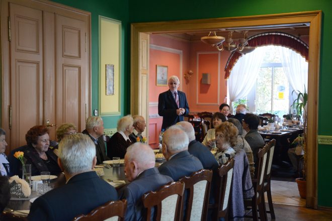 W dniu 28 września 2017 r. w restauracji D’oro w Dzierżoniowie na wspólnym obiedzie spotkali się członkowie dzierżoniowskiego Koła Związku Sybiraków oraz zaproszeni goście: wiceburmistrz miasta Dzierżoniów Andrzej Bolisęga, przewodniczący Rady Powiatu Dzierżoniowskiego Marian Kowal i dyrektor Gimnazjum im. Zesłańców Sybiru z Piławy Górnej Edyta Lisowska. Zgromadzonych powitał prezes Zarządu Koła Ziemi Dzierżoniowskiej Eugeniusz Kuszka, dziękując gościom za przybycie, a Sybirakom za tak liczny udział w spotkaniu. Podkreślił, że takie spotkania są bardzo ważne, służą wymianie poglądów, dzieleniu się problemami, które napotyka się w życiu codziennym, wspominaniu czasów zesłania. Na koniec prezes dodał, że pomimo tragizmu wydarzeń sprzed 70 lat należy o nich pamiętać i przekazywać informację o nich kolejnym pokoleniom i taka jest rola Sybiraków, jak i nauczycieli. Przewodniczący Rady Powiatu Dzierżoniowskiego Marian Kowal podziękował za zaproszenie na tak sympatyczną uroczystość, podkreślił, że bardzo ważne jest, aby organizować takie integracyjne spotkania, które pozwalają zachować przyjazne relacje między członkami Koła. Wiceburmistrz Andrzej Bolisęga w swojej wypowiedzi również podkreślił, że istotne jest organizowanie spotkań osób zrzeszonych w organizacjach, mających na celu także zwykłe, towarzyskie wymiany poglądów. Dodał, że Sybiracy zawsze mogą liczyć na pomoc władz miasta. Dyrektor szkoły Edyta Lisowska wyraziła radość, że po raz kolejny może spotkać się z Sybirakami. Dodała również, że ma nadzieję na kontynuację tematyki sybirackiej w szkole, która przekształciła się w szkołę podstawową, i że na pewno przyczyni się, żeby pamięć o zesłaniach nie zniknęła ze świadomości młodych ludzi wraz z wygaśnięciem formuły gimnazjów. Po przemówieniach zgromadzeni przystąpili do poczęstunku i prowadzili przyjacielskie rozmowy. Spotkanie Sybiraków Koła Ziemi Dzierżoniowskiej, przemawia prezes Eugeniusz Kuszka Autor: Eugeniusz Kuszka, prezes Zarządu Koła ZS Ziemi Dzierżoniowskiej, zdjęcie DOBA.PL Przeczytano 32 Nawigacja wpisu Uroczystościach rocznicy powstania Polskiego Państwa Podziemnego w Tarnowie Z niezapomnianymi przeżyciami…