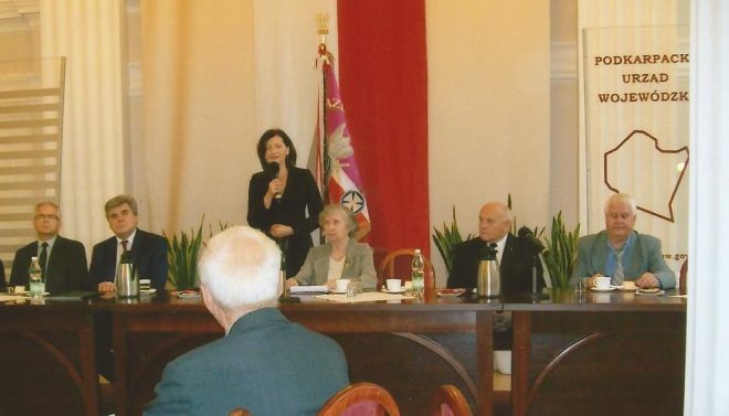 W dniu 15 września 2017 r. odbyło się spotkanie społeczności sybirackiej zrzeszonej w Oddziale Związku Sybiraków w Rzeszowie z okazji 78. rocznicy napaści Związku Radzieckiego na Polskę. Uroczystość zorganizowano w Sali Kolumnowej Urzędu Wojewódzkiego w Rzeszowie. Spotkanie zaszczyciły swoją obecnością władze miasta i województwa w osobach: wojewody podkarpackiego Ewy Leniart, wiceprezydenta miasta Henryka Wolickiego, wicemarszałka województwa podkarpackiego Bogdana Romaniuka, naczelnika Wydziału Archiwum IPN Dariusza Byszuka, dyrektor Zarządzania Kuratorium Oświaty Bożeny Pasieki, przedstawiciela Wojska Polskiego płk. Józefa Mroczka oraz licznie zgromadzeni Sybiracy. Przemówienie okolicznościowe wygłosiła prezes Zarządu rzeszowskiego Oddziału ZS Danuta Zbyszyńska. Głos zabrali także wojewoda Ewa Leniart, wiceprezydent Henryk Wolicki oraz wicemarszałek Bogdan Romaniuk. Uroczystość uświetnił występ artystów Regionalnego Stowarzyszenia Twórców Kultury pod dyrekcją Stanisława Dworaka. Zespół recytatorski i chór nawiązały w treści swoich utworów do historii i kultury Kresów, co zostało przyjęte z rozrzewnieniem i tęsknotą za tym, co odeszło na zawsze. Ekipa telewizji rzeszowskiej nagrywała przebieg spotkania, co zostało przekazane w dzienniku wieczornym mieszkańcom miasta. Przemawia wojewoda Ewa Leniart, obok z prawej prezes Zarządu Oddziału ZS Danuta Zbyszyńska Występ zespołu artystycznego Regionalnego Stowarzyszenia Twórców Kultury Autor: Danuta Zbyszyńska, prezes Zarządu Oddziału ZS w Rzeszowie Przeczytano 21 Nawigacja wpisu Obchody Dnia Sybiraka w Toruniu Uroczystość 78. rocznicy napaści Rosji Sowieckiej na Polskę oraz Dzień Sybiraka w Opolu