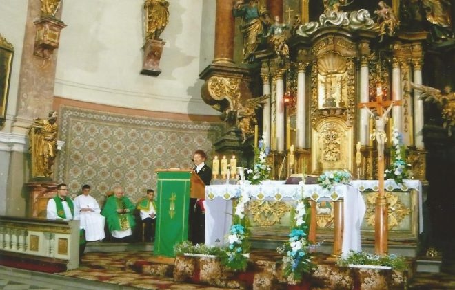 Sybir – obco i groźnie brzmi ta nazwa w naszej ojczyźnie, a jednak znana jest Polakom, bo już od XVII w. za panowania cara Piotra I Wielkiego odnotowuje się pierwsze zesłania Polaków na katorżnicze prace w dalekie rejony Syberii. Panowanie Katarzyny II Wielkiej to czas narastania represji w stosunku do Polaków. To wtedy konfederaci barscy i żołnierze Tadeusza Kościuszki pędzeni byli w kajdanach na Sybir, często z dożywotnim wyrokiem. XIX w. naznaczyły zesłania powstańców narodowych. Jednak Polacy to naród niepokorny i im większe były represje i prześladowania, tym silniejsze było dążenie do niepodległości. To właśnie patrioci walczący o wolność Polski słowo „Sybir” umieścili w nazwie Związku Sybiraków powołanego do życia w 1928 r. Zdawać by się mogło, że po uzyskaniu niepodległości można było żyć spokojnie i budować zręby wolnej Polski, bez grozy wspomnień o zesłaniach naszych dziadów i ojców. Niestety zamiary zagłady narodu polskiego i innych narodów rodziły się już w umysłach wielkich morderców z pierwszej połowy XX w., jakimi byli Hitler i Stalin. Wybuch II wojny światowej rozpoczął kolejne represje, zsyłki i wywózki Polaków na groźny Sybir. Okres ten nie pozwalał na jawną działalność Związku. Dopiero w 1988 r. we Wrocławiu i w Warszawie podjęto pierwsze prace organizacyjne – nie nad powołaniem Związku Sybiraków, lecz by reaktywować bliski Polakom Związek Sybiraków z 1928 r. Po rozbudowie i dostosowaniu do obecnych potrzeb Statutu Związku z 1928 r., w grudniu 1988 r. został zarejestrowany reaktywowany Związek Sybiraków. Jednym z naczelnych zadań ujętych w Statucie jest upamiętnianie martyrologii Polaków na Wschodzie. Od tego czasu wszędzie tam, gdzie osiedleni zostali Polacy powracający z Syberii, powstawały Koła i Oddziały Związku Sybiraków, by swą działalnością upamiętniać śmierć wszystkich Sybiraków zagłodzonych, pomordowanych, zamarzniętych w śniegach Syberii, by pamięć o nich nie zaginęła. Koło Związku Sybiraków w Dusznikach-Zdroju rozpoczęło działalność pod koniec 1989 r. Inicjatorką powołania Koła była Sybiraczka Maria Homerska, w poczynaniach tych wspierały ją Elżbieta Budzińska, ówczesna przewodnicząca Związku Zawodowego „Solidarność” w Dusznikach-Zdroju oraz Sybiraczka Weronika Winczura, późniejsza prezes Zarządu Koła. Koło, realizując zadania ujęte w Statucie, dla upamiętnienia martyrologii narodu polskiego, dla tych, którzy zostali tam, na tej niegościnnej ziemi, którym nie były dane ani grób, ani krzyż, postanowiło postawić symboliczny grób w postaci obelisku Sybiraków, który stanął na rynku w 1996 r. W związku z przebudową rynku, obelisk Sybiraków został przeniesiony na plac przy kościele parafialnym pw. Świętych Piotra i Pawła przy ul. Kłodzkiej, gdzie co roku 10 lutego i 17 września spotykają się Sybiracy, poczty sztandarowe i mieszkańcy na krótkiej modlitwie, zapaleniu zniczy, złożeniu wiązanek kwiatów, a następnie uczestniczą w mszy świętej w intencjach zmarłych i żyjących Sybiraków. Innymi znakami pamięci zainicjowanymi przez Koło są: sztandar Koła, urna z ziemią z grobów katyńskich i tablica poświęcona pomordowanym żołnierzom Polakom umieszczona przy obelisku Sybiraków, tablica poświęcona Sybirakom umieszczona w kościele parafialnym pw. Jana Chrzciciela w Szczytnej (tamtejsi Sybiracy należą do dusznickiego Koła), aleja Sybiraków biegnąca wzdłuż rzeczki Bystrzycy Dusznickiej, tablica poświęcona patronowi Sybiraków św. Rafałowi Kalinowskiemu umieszczona w kościele parafialnym w Dusznikach-Zdroju. Dzień Sybiraka 17 września 2017 r. uczczono jak co roku spotkaniem przy obelisku Sybiraków. Uczestniczyli w nim Sybiracy, poczty sztandarowe Koła Związku Sybiraków, Szkoły Podstawowej i dusznickiego Koła Krwiodawców, księża, ministranci oraz mieszkańcy. Po odmówieniu krótkiej modlitwy, zapaleniu zniczy i złożeniu wiązanek kwiatów od młodzieży szkolnej, burmistrza i od Sybiraków, wszyscy przy dźwiękach „Marsza Sybiraków” weszli do kościoła na uroczystą mszę świętą, którą odprawił ojciec franciszkanin, a homilię wygłosił ks. wikary Bartłomiej Picheta. Na zakończenie mszy świętej prezes Zarządu Koła Janina Łaba w krótkich słowach przybliżyła zebranym historię tragicznych przeżyć Polaków na zesłaniu. Następnie odczytała piękną modlitwę dziękczynną ku czci Matki Boskiej Sybirackiej za szczęśliwy powrót do kraju tych zesłańców, którzy przeżyli, i podziękowała księżom, ministrantom, pocztom sztandarowym i wszystkim uczestniczącym w mszy świętej. Mszę zakończono odśpiewaniem hymnu „Boże, coś Polskę”. Wystąpienie prezes Zarządu Koła ZS w Dusznikach-Zdroju Janiny Łaby Od lewej: poczet sztandarowy Szkoły Podstawowej w Dusznikach-Zdroju, Koła Związku Sybiraków w Dusznikach-Zdroju, osoby składające kwiaty, poczet sztandarowy Koła Krwiodawców Autor: Zarząd Koła ZS w Dusznikach-Zdroju Przeczytano 17 Nawigacja wpisu Obchody Dnia Sybiraka na Podlasiu Uroczystości 17 września 2017 r. w Dzierżoniowie