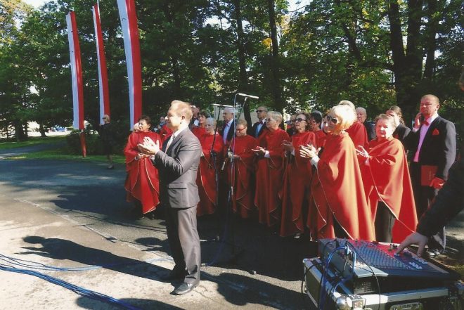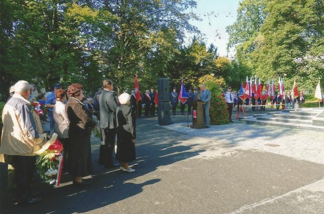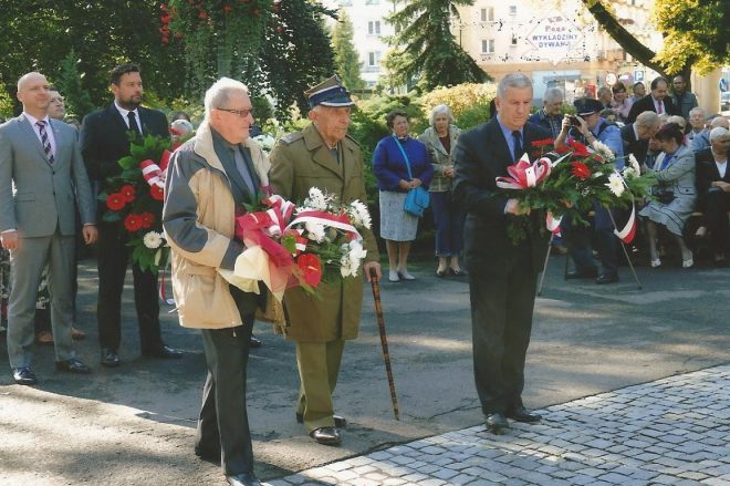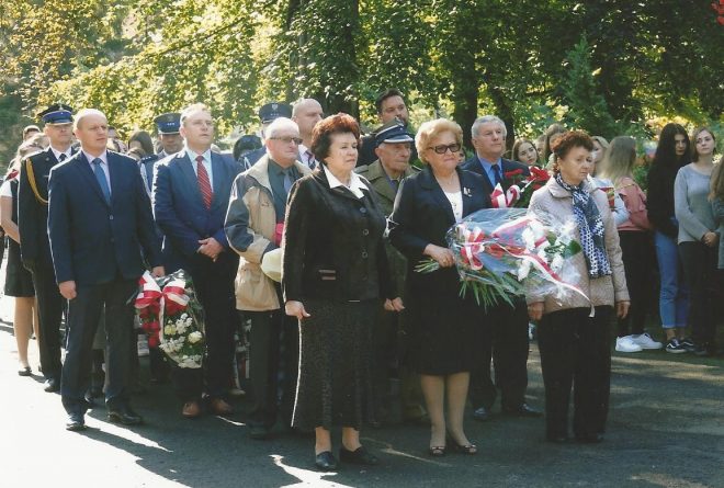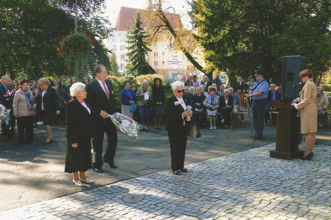 Dzień Sybiraka 17 września w tym roku przypadał w niedzielę. W związku z tym w naszym Kole obchodzony był 18 września. Uroczystość zorganizowana była przez władze miasta pod pomnikiem Patriotom Polskim. Udział w uroczystości wzięli: organizacje kombatanckie, policja, straż miejska, a przede wszystkim młodzież szkolna wraz z pocztami sztandarowymi oraz delegacje Sybiraków z Opola i Brzegu, jak również liczni mieszkańcy Nysy. Obchody rozpoczęte zostały hymnem państwowym w wykonaniu chóru Hosanna pod dyrekcją dyrygenta Mariusza Drożdżala. Minutą ciszy uczciliśmy pamięć Sybiraków, którzy pozostali na „nieludzkiej ziemi”, jak i tych, co odeszli w ojczyźnie. Wiceburmistrz Nysy Piotr Bobak wygłosił referat na okoliczność Dnia Sybiraka, w którym podkreślił tragedię i gehennę zesłańców oraz ich bohaterstwo na „nieludzkiej ziemi”. Następnie prezes Zarządu Koła ZS w Nysie Teresa Sajan wróciła pamięcią do wywózek i dramatycznych losów na zesłaniu oraz przedstawiła cele i zadania naszego Związku. W uroczystości udział wzięli również seniorzy z Dziennego Domu Pobytu w Nysie. Dwie panie recytowały wiersze: „A ja Cię kocham, Polsko” Kazimierza Węgrzyna i „Ziarno dobrej nowiny” Mariana Jonkajtysa, które bardzo wzruszyły zebranych. Delegacje miasta, starostwa, policji, straży miejskiej, pożarnej, OSP, organizacji kombatanckich, młodzieży i dzieci szkół nyskich, a nawet przedszkolaków złożyły kwiaty i zapaliły znicze pod pomnikiem. Uroczystość pod pomnikiem zakończono „Marszem Sybiraków” w wykonaniu chóru Hosanna. Następnie autokarem MZK przewieziono Sybiraków do Szkoły Podstawowej nr 3 w Nysie, gdzie uczestniczyli w apelu poległych z okazji Dnia Sybiraka. Obejrzeli także program artystyczny poświęcony Sybirakom, przygotowany przez dzieci i grono pedagogiczne. Rozpoczął go polonez Michała Ogińskiego „Pożegnanie ojczyzny”. Chór szkolny zaśpiewał pieśni, m.in. „Polskie kwiaty”, były również recytacje zbiorowe o Sybirakach. Na zakończenie części oficjalnej uczeń zaśpiewał „Marsza Sybiraków”. W dalszej części władze miasta ufundowały dla Sybiraków i zaproszonych gości poczęstunek. Było bardzo podniośle i uroczyście. Pomnik Patriotom Polskim w Nysie Chór Hosanna z dyrygentem Mariuszem Drożdżalem Poczty sztandarowe i delegacje podczas składania kwiatów Delegacja Sybiraków z Opola – Danuta Szeliga, delegacja z Brzegu – Janina Góral i Jan Machowski Kwiaty składają: kombatanci oraz przewodniczący Rady Seniorów w Nysie Ryszard Rogowski, za nimi wiceburmistrzowie Marek Rymarz (z prawej) i Piotr Bobak Delegacja Sybiraków z Nysy (od lewej): sekretarz Zarządu Koła Anna Sławecka, prezes Teresa Sajan, Sybiraczka Maria Borkowska Przemawia prezes Teresa Sajan Autor: Teresa Sajan, prezes Zarządu Koła ZS w Nysie Przeczytano 63 Nawigacja wpisu Dzień Pamięci Polskiego Sybiru w Sieradzu Nigdy więcej wojny, nigdy więcej zsyłek Polaków na Sybir