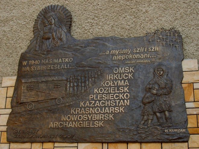 Data 17 września 1939 r. głęboko utkwiła w sercach Polaków. To początek naszych losów syberyjskich, to początek tysięcy ofiar. A już szczególnym okrucieństwem stały się cztery masowe deportacje na Syberię i do Kazachstanu. To ważna data dla Sybiraków, którym dane było przeżyć katorgę sześciu lat zniewolenia, poniewierki, głodu, chorób, pracy ponad siły i wrócić do ojczyzny. To wywózka Polaków bydlęcymi wagonami przy 30-stopniowym mrozie, na bezkresne tereny ZSRR. To jest także hołd składany wszystkim tym, którzy pozostali na tej „nieludzkiej ziemi” na zawsze. Dzień 17 września stał się początkiem tragicznych wydarzeń, masowych wywózek całych rodzin na bezkresne tereny ZSRR. Utraciliśmy wtedy dorobek całego życia, wszystko przepadło bezpowrotnie. My, jako dzieci, mimo minionych 78 lat – pamiętamy brutalny łomot do drzwi przed świtem, wielotygodniową podróż w bydlęcych wagonach, a następnie katorżniczą pracę naszych rodziców. A cierpienia, jakich doznaliśmy, mimo wielu lat odczuwamy po dziś dzień na naszym zdrowiu. Tegoroczna uroczystość 78. rocznicy agresji ZSRR na Polskę i Dnia Sybiraka rozpoczęła się mszą świętą i miała charakter religijno-patriotyczny. Proboszcz parafii Matki Boskiej Zwycięskiej ks. dr Zdzisław Wójcik wraz z ks. dr. Zbigniewem Jacuńskim – Sybirakiem wprowadzili poczty sztandarowe straży miejskiej i coraz liczniej reprezentowane przez młodzież szkolną, która rokrocznie bierze udział w naszych uroczystościach. W mszy świętej uczestniczyli przedstawiciele władz miasta Częstochowy, władz samorządowych, kombatanci Wojska Polskiego, organizacje polityczne, społeczne, mieszkańcy Częstochowy i okolic, Sybiracy, młodzież szkolna oraz harcerze, którzy jak co roku zaciągnęli wartę honorową przy tablicy poświęconej naszemu szczęśliwemu powrotowi z tułaczki. Przez dziesięciolecia temat zsyłki na Sybir był tematem przemilczanym i przekazywanym wyłącznie w rodzinnych opowieściach. Dopiero zmiany, jakie zaszły w Polsce pod koniec lat 80., pozwoliły przywrócić pamięć tej tragicznej karty naszej historii. Ks. dr Zbigniew Jacuński w swej homilii przypomniał, że to wiara i modlitwa pomagały przetrwać Sybir. Podczas czterech wielkich wywózek na Sybir w latach 1940–1941 modlitwa i wiara pomagały zesłańcom w przetrwaniu i były siłą podtrzymującą chęć życia i nadzieję powrotu do ojczyzny. Po zakończeniu mszy świętej i wyprowadzeniu sztandarów, uczestnicy udali się przed fronton kościoła, gromadząc się pod naszą tablicą. Po odśpiewaniu hymnu państwowego jako pierwszy zabrał głos zastępca prezydenta miasta Częstochowy dr Ryszard Stefaniak: „Co roku gromadzimy się u stóp tej tablicy memorialnej, by oddać Sybirakom hołd pamięci i najwyższego szacunku, by podziękować w imieniu naszego miasta za to, że pielęgnowali swoją polskość i byli godni tej Polski. W imieniu władz miasta wyrażam najwyższe uszanowanie dla Sybiraków, że dla Polski poświęcili życie. Będziemy dbać zawsze o to, by pamięć o Sybirakach była wieczna i obyście państwo zawsze byli otaczani najwyższym szacunkiem. Dlatego zesłańcom Sybiru cześć i chwała. Dobrze zasłużyliście się ojczyźnie”. Następnie głos zabrał prezes Zarządu Oddziału Związku Sybiraków w Częstochowie senator Grzegorz Lipowski i wspomniał, że 78 lat minęło od II wojny światowej – największej zbrodni świata, w której zginęło 55 mln ludzi, w tym 15 mln żołnierzy, a 40 mln to osoby cywilne. Następstwem napaści Rosjan na Polskę były masowe wywózki z terenów ziem wschodnich. Po tych wystąpieniach młodzież ze Szkoły Samochodowo-Budowlanej w Częstochowie przedstawiła przygotowany na tę uroczystość program artystyczny. Były to recytacje wierszy Sybiraka Mariana Jonkajtysa. Podczas uroczystości cztery osoby z Zarządu Oddziału ZS w Częstochowie – postanowieniem prezesa Zarządu Głównego ZS w Warszawie zostały odznaczone Odznaką Honorową za Zasługi dla Związku Sybiraków. Złotą Odznakę otrzymali Adela Bryniak i Artur Woźniakowski, Srebrną Odznakę – Teresa Krętuś i Stanisław Panek. Po ceremonii odznaczenia delegacje złożyły przepiękne wiązanki kwiatów pod naszą tablicą, wykonaną w 2007 r. przez artystę rzeźbiarza z Krakowa Jana Funka, a zaprojektowaną przez Helenę Kurzak – Sybiraczkę, w podzięce Matce Bożej Kozielskiej – Zwycięskiej za szczęśliwy powrót Sybiraków do ojczyzny. Uroczystość zakończyła się odśpiewaniem Hymnu Sybiraków. Tablica pamiątkowa w Częstochowie Członkowie Zarządu Oddziału ZS: w pierwszym rzędzie Helena Kurzak, w drugim – pierwsza z lewej sekretarz Jolanta Twardowska, w trzecim – pierwszy z lewej prezes Zarządu Grzegorz Lipowski, obok wiceprezes Artur Woźniakowski Szkolne poczty sztandarowe Przedstawiciele Zarządu Oddziału prezes Grzegorz Lipowski, Wiktoria Krawczyk (z lewej) i sekretarz Jolanta Twardowska (z prawej) składają podziękowanie za odprawioną mszę świętą Odznaczeni (od lewej): Teresa Krętuś, Artur Woźniakowski, Adela Bryniak i Stanisław Panek Zaproszeni kombatanci Wojska Polskiego Warta honorowa pod naszą tablicą Autor: Helena Kurzak, członek Zarządu Oddziału ZS w Częstochowie Przeczytano 153 Nawigacja wpisu Wałeckie uroczystości z okazji 78. rocznicy agresji ZSRR na Polskę i 89. rocznicy powstania Związku Sybiraków Dzień Sybiraka w Bydgoszczy