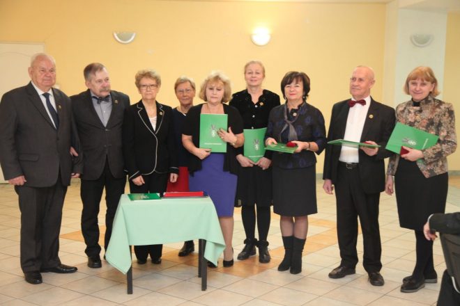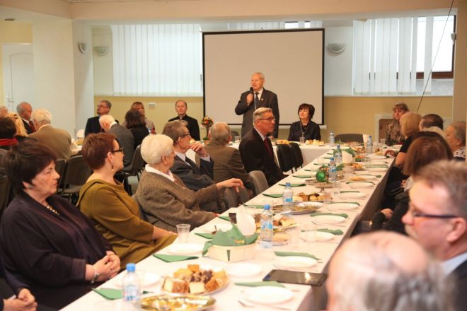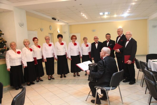 W dniu 12 grudnia 2017 r. Sybiracy z Kół Związku Sybiraków działających na terenie Warszawy i podwarszawskich miejscowości zebrali się, by wspólnie świętować nadchodzące Boże Narodzenie. W spotkaniu wzięli udział również zaproszeni goście reprezentujący współpracujące z Oddziałem urzędy, instytucje i zaprzyjaźnione szkoły, których serdecznie powitał prezes Zarządu Oddziału Mieczysław Pogodziński. Spotkanie opłatkowe rozpoczęto wysłuchaniem Hymnu Sybiraków w wykonaniu zespołu Domu Kultury „Zacisze” oraz minutą ciszy za zmarłych w tym roku członków Oddziału Związku. Szczególnie zasłużone osoby współpracujące z Oddziałem Warszawskim zostały odznaczone Złotą Odznaką Honorową za Zasługi dla Związku Sybiraków. Byli to: kierownik Muzeum Katyńskiego Ewa Kowalska, dyrektor Domu Kultury „Zacisze” Bożenna Dydek, pracownik Domu Kultury „Zacisze” Taida Załuska oraz twórca i dyrygent działającego w tej placówce zespołu Zaciszańska Nuta Jan Czerwiński. Dekoracji dokonał prezes Mieczysław Pogodziński. Dyplom uznania ze szczególnymi podziękowaniami za długą współpracę z Oddziałem otrzymali Wanda i Kazimierz Posiewkowie. W imieniu odznaczonych podziękowała Ewa Kowalska. Sprawujący duchową opiekę nad spotkaniem proboszcz parafii pw. Świętego Krzyża ks. Robert Berdychowski odczytał fragment Biblii o narodzeniu Pańskim i złożył wszystkim życzenia. Świąteczne życzenia przekazali również przedstawiciele Zarządu Oddziału i poszczególnych Kół, a następnie zebrani podzielili się opłatkiem. Oprawę artystyczną zapewnił zasłużony dla Związku Sybiraków zespół Zaciszańska Nuta z Domu Kultury „Zacisze”, wykonując tradycyjne kolędy i pieśni kresowe, które szczególnie wzruszyły Sybiraków. Spotkanie upłynęło w niezwykle miłej atmosferze, pełnej życzliwości i świątecznego ciepła. Spotkanie opłatkowe warszawskich Sybiraków. Przemawia prezes Zarządu Oddziału Warszawskiego Mieczysław Pogodziński Odznaczenie zasłużonych osób. Od prawej: Ewa Kowalska, Jan Czerwiński, Bożenna Dydek, Taida Załuska, Wanda Posiewka, sekretarz Zarządu Oddziału Halina Bieniakońska-Żak, wiceprezes Maria Stankiewicz, Kazimierz Posiewka, prezes Mieczysław Pogodziński Występ zespołu wokalnego Zaciszańska Nuta pod kierownictwem Sybiraka z Kazachstanu Jana Czerwińskiego (gra na akordeonie) Autorzy: Mieczysław Pogodziński, Beata Żyłkowska Przeczytano 45 Nawigacja wpisu Warszawski Dzień Sybiraka „Wigilie polskie”