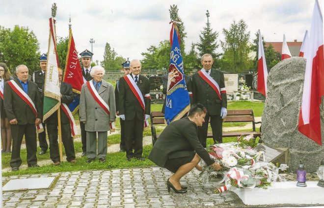 Aktualnie na terenie Oddziału ZS w Legnicy działa 16 terenowych Kół. W niniejszych Kołach odprawione zostały nabożeństwa poświęcone sybirakom, którzy odeszli do krainy wieczności, i tym, którzy żyją. Po nabożeństwie sybiracy spotykają się na skromnym poczęstunku i wspomnieniach na zesłaniu. Bardzo uroczyście obchodzono ten dzień w takich Kołach jak: Głogów, Jawor, Ścinawa, Prochowice, Rudna, Legnickie Pole. W uroczystościach w tych Kołach uczestniczyli przedstawiciele Oddziału ZS w Legnicy. 17 września 2017 r. w obchodach w Kole ZS w Prochowicach brała udział prezes Zarządu Oddziału Maria Jurkiewicz. Po zakończeniu nabożeństwa uczestnicy spotkania udali się do miejsca pomięci, gdzie zapalono znicze, złożono kwiaty i uczczono pamięć zmarłych i żyjących sybiraków. Następnie odbyło się spotkanie, wszyscy Sybiracy otrzymali pamiątki wykonane przez młodzież szkolną. Również 17 września 2017 r. w obchodach w Kole ZS w Ścinawie z Oddziału w Legnicy udział wzięli Wanda Puchała i Antoni Dziemirowicz. Spotkanie rozpoczęto mszą świętą, po wprowadzeniu sztandarów, uczestnicy wysłuchali hymnu państwowego. Homilię wygłosił były proboszcz ks. Bogdan Kaczorowski. Na zakończenie młodzież szkolna wręczała kwiaty i podziękowała prezesowi Zarządu Koła Józefowi Budrewiczowi za współpracę z młodzieżą i zarecytowała wiersz. Następnie uczestnicy udali się na cmentarz pod obelisk Sybiraków, gdzie miejscowa orkiestra zagrała hymn państwowy. Słowo wstępne wygłosił przedstawiciel Centrum Turystyki i Kultury w Ścinawie, następnie poprosił ks. Andrzeja Pławiaka o modlitwę. Odśpiewano przy asyście orkiestry Hymn Sybiraków. Wiceprezes Zarządu Oddziału Wanda Puchała wygłosiła słowo okolicznościowe, w którym szczególnie podkreśliła współpracę z młodzieżą. Na zaproszenie burmistrza i przewodniczącego Rady Miasta uczestnicy uroczystości udali się do Centrum Turystyki i Kultury, gdzie przy wejściu orkiestra powitała uczestników marszem. Spotkanie urozmaicone zostało graniem pieśni patriotycznych i biesiadnych oraz śpiewem. 17 września 2017 r. prezes Zarządu Oddziału Maria Jurkiewicz i Ryszard Filipienko wzięli udział w uroczystościach w Kole ZS w Rudnej. Spotkanie rozpoczęto mszą świętą, po której wójt gminy Rudna zorganizował transport i przewiózł uczestników do Domu Kultury w Kliszowie, gdzie odbyła się część artystyczna. Prezes Maria Jurkiewicz wręczyła Złotą Odznakę Honorową za Zasługi dla Związku Sybiraków prezes Zarządu Koła Związku Sybiraków w Rudnej Kamili Mazurek. Wójt gminy z prezes Zarządu Oddziału złożyli życzenia Piotrowi Sypieniowi z okazji 90. rocznicy urodzin. W dalszej części Sybiracy wysłuchali przemówień władz i wspaniałych występów młodzieży szkolnej. Koło Związku Sybiraków w Głogowie to najbardziej aktywne koło Oddziału. Prezes Stanisław Dwojny potrafi nawiązać wspaniałą współpracę z władzami powiatu oraz szkołami. Każdego roku wszystkie uroczystości patriotyczne są organizowane przy udziale Sybiraków. 18 września 2017 r. w obchodach Dnia Sybiraka brało udział około 30 pocztów sztandarowych, obecni byli przedstawiciele wszystkich lokalnych organizacji, posłowie oraz liczna grupa ludzi. W Kole ZS w Jaworze 19 września 2017 r. Sybiracy oraz przedstawiciele władz miasta i parlamentarzyści spotkali się przed pomnikiem Sybiraków przy kościele św. Marcina, by oddać hołd wszystkim zmarłym i żyjącym Sybirakom. Słowo okolicznościowe wygłosił prezes Zarządu Koła Michał Janczewski w asyście Renaty Węgiel. Przy pomniku licznie zgromadzona była młodzież szkolna. W czasie uroczystości w Teatrze Miejskim Michał Janczewski powitał zebranych gości i Sybiraków. Następnie wygłosił referat okolicznościowy. Wanda Puchała, wiceprezes Zarządu Oddziału, powiedziała o dobrej współpracy z młodzieżą. Odznaczenia dostali: wicestarosta Jawora oraz Sybiracy. Honorowe wprowadzenie pocztów sztandarowych do kościoła w Ścinawie Modlitwa przed miejscem pamięci w Ścinawie Złożenie kwiatów przed obeliskiem na cmentarzu komunalnym w Ścinawie W Centrum Turystyki i Kultury w Ścinawie w czasie spotkania władz z Sybirakami przygrywała orkiestra Delegacja Zarządu Oddziału ZS w Legnicy podczas obchodów w Jaworze (od prawej): Wanda Puchała, Emilia Kotek i Henryk Olejnik Przemarsz uczestników uroczystości do Teatru Miejskiego w Ścinawie Wspólna fotografia odznaczonych i członków Zarządu Oddziału ZS w Legnicy Autor: Wanda Puchała, wiceprezes Zarządu Oddziału ZS w Legnicy Przeczytano 48 Nawigacja wpisu Mówili do młodych – aby pamiętali Dzień Sybiraka w Gromniku