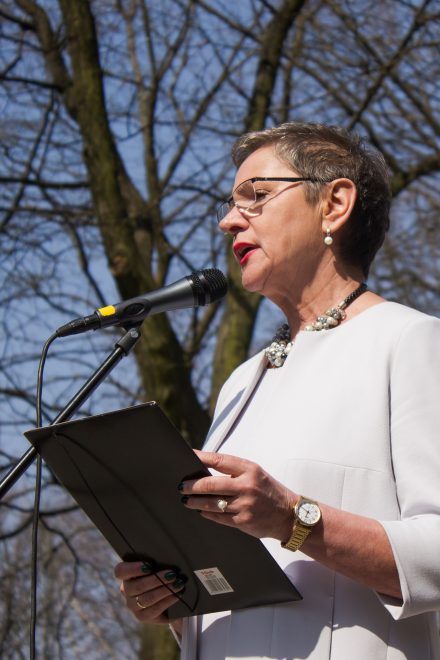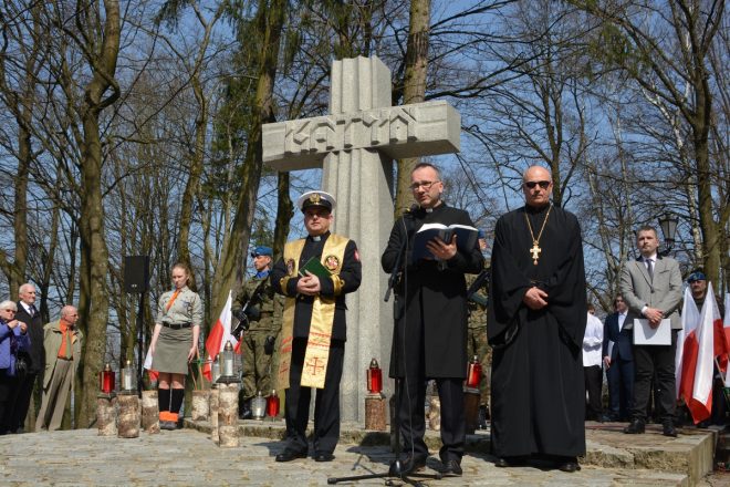 Uroczystości upamiętniające 78. rocznicę zbrodni katyńskiej w Słupsku odbyły się 13 kwietnia 2018 r. Przy pomniku Krzyża Katyńskiego w samo południe zebrali się kombatanci okresu II wojny światowej, młodzież szkolna, przedstawiciele władz samorządowych, uczelni i instytucji państwowych oraz liczni mieszkańcy Słupska. Obecni byli przedstawiciele dowództwa 7. Brygady Obrony Wybrzeża, dowództwa amerykańskiej jednostki obrony przeciwrakietowej oraz jednostki ochrony tej bazy. Szczególny charakter uroczystości nadały poczty sztandarowe organizacji kombatanckich, instytucji i szkół. Wojsko wystawiło kompanię honorową. Zebranych przywitał w imieniu Miejskiego Komitetu Obchodów Świąt Państwowych i Rocznic Dariusz Poręba. Młodzież zapaliła znicze przy Krzyżu Katyńskim oraz przy nieopodal znajdujących się Krzyżu Wołyńskim i grobowcu zamordowanych przez żołnierzy niemieckich w 1945 r. polskich robotników przymusowych. Uroczystości te od 12 lat są przygotowywane przez Związek Sybiraków i Urząd Miejski. Przemówienie okolicznościowe wygłosił Tadeusz Konopacki, członek Zarządu Oddziału Związku Sybiraków w Słupsku. W swoim wystąpieniu powiedział m.in.: „Katyń – to słowo zna każdy Polak. Przypomnijmy. Na początku wojny w 1939 r. do niewoli sowieckiej dostało się 240 tys. żołnierzy polskich. Utworzono trzy specjalne obozy jenieckie w Kozielsku i Ostaszkowie w Rosji oraz w Starobielsku na Ukrainie dla około 15 tys. osób. Przebywali tam oficerowie Wojska Polskiego, policjanci, strażacy, leśnicy, urzędnicy państwowi i politycy. 7 tys. osób znajdowało się w więzieniach na Ukrainie i Białorusi. To była elita naszego państwa. Ci jeńcy i więźniowie byli pod szczególną opieką sowieckiej służby bezpieczeństwa jako osoby niebezpieczne dla Rosji i władzy sowieckiej. W marcu 1940 r. władze Rosji Sowieckiej nakazały zabić tych ponad 22 tys. Polaków. Są wśród Sybiraków członkowie rodzin pomordowanych – rodziny katyńskie. W tym czasie, w kwietniu 1940 r., gdy mordowano jeńców, ich rodziny deportowano na Syberię. Rosja Sowiecka realizowała drugą część planu niszczenia naszej państwowości. W 1940 r. rozpoczęła masową deportację ludności polskiej na Syberię i w inne rejony kraju. Tylko w latach 1940–1941 z okupowanych przez Sowietów terenów deportowano ponad milion Polaków. Dzisiejsi Sybiracy są częścią tych, którym się udało wrócić do ojczyzny. To potomkowie zesłańców okresu wojny przysłali nam ziemię z polskiego cmentarza w obwodzie Archangielsk. Wmurowana ona jest przy pomniku. Prawda o mordzie katyńskim do 1990 r. była ukrywana przez Rosję Sowiecką, jak i przez władze polskie. W archiwach moskiewskich jest dokumentacja działań Stalina i jego aparatu państwowego. Po 1990 r. część dokumentów udostępniono Polsce. Rosja przyznała się do tej zbrodni przypisywanej przez lata Niemcom hitlerowskim. Zabrakło jednak osądzenia i ukarania właściwych wykonawców działających w imieniu państwa rosyjskiego”. W imieniu władz samorządowych głos zabrała zastępca prezydenta miasta Słupska Krystyna Danilecka-Wojewódzka. Podkreślając znaczenie oddawania hołdu ofiarom zbrodni katyńskiej, powiedziała m.in.: „W historii świata są takie wydarzenia, których nie można zapomnieć. Wielkie, bohaterskie i wielkie tragiczne, wstydliwe dla ludzi i cywilizacji. W XX w. to czas II wojny światowej, zwycięstwo ideologii faszystowskiej III Rzeszy Niemieckiej i sowieckiej agresji Związku Radzieckiego. Wielką ofiarą tych ideologii stali się Polska i Polacy. Lata 1939–1945 to czas wielkich zbrodni wykonanych na ludziach przez ludzi. Zbrodni, których nie można zrozumieć, nie można zapomnieć, nie można wybaczyć. Najtragiczniejsze, sprzed 78 laty, zadane skrytobójczo przez sowieckie NKWD nie na polu walki, a w lochach więzień lub nad wykopanymi rowami, strzałem w tył głowy. Nauczyciele, profesorowie, lekarze, oficerowie Wojska Polskiego, policjanci, kolejarze, żołnierze straży granicznej. Polacy. Zamordowani bez winy. W pogardzie dla cywilizacji, w pogardzie dla konwencji międzynarodowych, które nakazywały honor dla jeńców wojennych. Niemal 22 tys. ofiar i co najmniej 150 tys. najbliższych, ożałobionych po stracie najbliższych, tych, którzy nie znali prawdy: matki i ojcowie, dzieci, żony, bracia i siostry”. Dla zaznaczenia różnorodności wyznań religijnych ofiar tragedii katyńskiej kapłani religii katolickiej, protestanckiej i prawosławnej odmówili modlitwę ekumeniczną. Z nieukrywaną aprobatą przyjęto nową formułę i treść „Katyńskiego apelu pamięci” odczytanego przez oficera Garnizonu Słupskiego Wojska Polskiego. Oprawę artystyczną uroczystości przygotowała młodzież Zespołu Szkół Technicznych w Słupsku pod kierunkiem Lilianny Lipnickiej. Uroczystość zakończyło złożenie kwiatów przy Krzyżu Katyńskim. W imieniu Sybiraków kwiaty złożyli członkowie Zarządu z prezesem Zarządu Oddziału Jerzym Lisieckim. W godzinach porannych w Zespole Szkół Technicznych odbyły się szkolne uroczystości, w których udział wzięli Sybiracy i przedstawiciele Rodzin Katyńskich. Uroczystości w Zespole Szkół Technicznych Sybiracy, Rodzina Katyńska i młodzież przy dębach pamięci ofiar Katynia Poczty sztandarowe podczas uroczystości przy Krzyżu Katyńskim Zapalonymi zniczami upamiętniono 78. rocznicę zbrodni katyńskiej Wystąpienie członka Zarządu Oddziału ZS w Słupsku Tadeusza Konopackiego Wystąpienie zastępcy prezydenta Słupska Krystyny Danileckiej-Wojewódzkiej Modlitwa ekumeniczna Kwiaty składa Zarząd Oddziału Autor: Wiktoria Bicimirska Przeczytano 36 Nawigacja wpisu Kwiecień – miesiąc Golgoty Wschodu w Białymstoku XIII Nowosądecki Marsz Pamięci Sybiraków