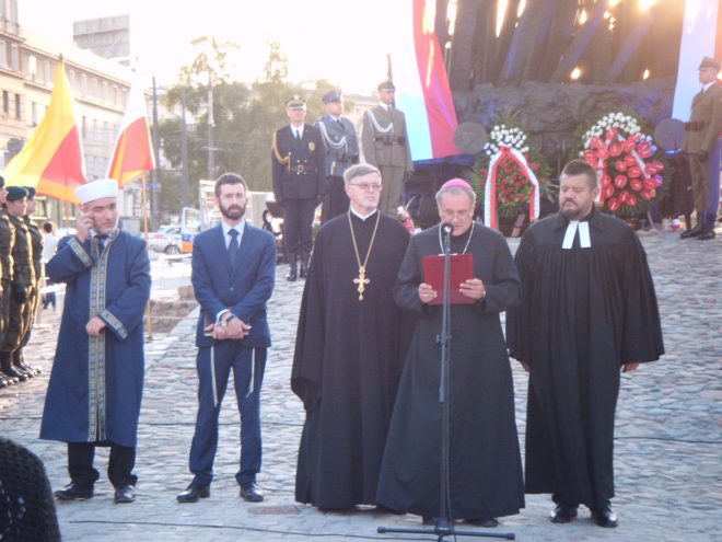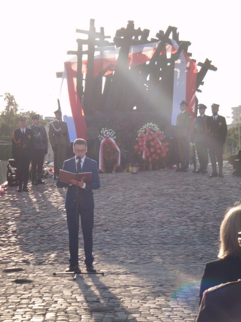 Obchody Dnia Sybiraka w stolicy rozpoczęła msza święta w intencji Sybiraków, transmitowana na antenie Polskiego Radia z kościoła Świętego Krzyża w niedzielę 16 września 2018 r. Mszy przewodniczył kapelan krajowy Związku Sybiraków ks. Zdzisław Banaś. Po południu w kościele św. Zygmunta na Żoliborzu została odsłonięta, a następnie poświęcona tablica upamiętniająca zamordowanych w obozach sowieckich i wywiezionych na Syberię, ufundowana przez Stowarzyszenie Rodzina Katyńska w Warszawie. W dniu 17 września w południe na skwerze Matki Sybiraczki, pod pomnikiem Poległym i Pomordowanym na Wschodzie zebrała się młodzież warszawskich szkół, by oddać hołd Polakom, dla których trudny wojenny los rozpoczął się 17 września 1939 r. Przypomniano okoliczności wybuchu II wojny światowej i podziału państwa polskiego między dwóch totalitarnych okupantów. Przypomniano wypowiedzi m.in. marszałka Józefa Piłsudskiego, a uczennice XIV Liceum Ogólnokształcącego im. S. Staszica zadeklamowały fragment wiersza Mariana Jonkajtysa „Poległym i pomordowanym na Wschodzie”. Ks. kmdr Janusz Bąk odmówił modlitwę. Na podkładach kolejowych z nazwami miejsc zesłań i kaźni, stanowiących fragment pomnika, uczniowie złożyli kwiaty i zapalili znicze. Wieńce złożyli przedstawiciele organizatora uroczystości – Warszawskiej Solidarności Oświatowej oraz Koła Związku Sybiraków Wola-Bemowo. Udział wzięło około 50 pocztów sztandarowych szkół i placówek oświatowych. W godzinach popołudniowych pod pomnikiem Poległym i Pomordowanym na Wschodzie odbyły się oficjalne uroczystości państwowe, rozpoczęte odegraniem hymnu państwowego oraz hejnału Warszawy. Poprzedziło je złożenie kwiatów pod tablicą poświęconą Matkom Sybiraczkom przez wiceprezydent Warszawy oraz reprezentację Związku Sybiraków. W imieniu prezydenta RP list odczytał zastępca szefa Biura Bezpieczeństwa Narodowego Dariusz Gwizdała. Andrzej Duda oddał w nim hołd Sybirakom i Kresowianom, podkreślając, że to oni nauczyli nas, co naprawdę znaczą słowa „Jeszcze Polska nie zginęła”. Premier Mateusz Morawiecki w liście odczytanym przez szefa Gabinetu Politycznego Prezesa Rady Ministrów Marka Suskiego wskazał na rolę pamięci – wymazywanie zbrodni totalitarnych z pamięci społeczeństwa pozostawiło bliznę, dlatego tak ważne jest zapisywanie wiadomości o nich w pamięci kolejnych pokoleń, by stały się tarczą obronną przeciwko złu. Wiceprezydent m.st. Warszawy Renata Kaznowska przypomniała natomiast dramat prześladowań, jakie dotknęły wialonarodowe i wielowyznaniowe społeczeństwo Polski, oraz trwających wiele tygodni wywózek w głąb ZSRR i cierpień zesłańców, których przy życiu podtrzymywała nadzieja powrotu do ojczyzny. Przemawiali przedstawiciele stowarzyszeń skupiających ofiary radzieckiego totalitaryzmu – prezes Fundacji Poległym i Pomordowanym na Wschodzie gen. dyw. Leon Komornicki, prezes Federacji Rodzin Katyńskich Izabella Sariusz-Skąpska, prezes Zarządu Warszawskiego Stowarzyszenia Rodzina Policyjna 1939 r. Anna Wesołowska, prezes Zarządu Stowarzyszenia Łagierników Żołnierzy Armii Krajowej Artur Kondrat. W imieniu Związku Sybiraków wystąpili wiceprezes Zarządu Głównego Mieczysław Pogodziński, który przybliżył zebranym udział Sybiraków w walkach o niepodległość państwa polskiego i zaapelował, by nie dzielić zesłańców walczących w różnych formacjach wojskowych na lepszych i gorszych, bowiem ich przelana za ojczyznę krew była jednakowa, oraz prezes Zarządu Oddziału Warszawskiego Stanisław Sikorski, który przypomniał postać Sybiraków – Józefa Piłsudskiego, twórcy odrodzonego po latach zaborów państwa polskiego, oraz Ryszarda Reiffa – jedynego członka Rady Państwa sprzeciwiającego się wprowadzeniu stanu wojennego, a następnie pierwszego prezesa powojennego Związku Sybiraków, reaktywowanego na pół roku przed obradami okrągłego stołu, które rozpoczęły zmiany ustrojowe w Polsce, podkreślił także ogromną rolę matek w przetrwaniu na zesłaniu. Modlitwę za poległych i pomordowanych na Wschodzie, a także ich oprawców, by Bóg im wybaczył popełnione zbrodnie, odmówili przedstawiciele trzech religii – chrześcijaństwa (wspólnie duchowni katolicki, prawosławny i ewangelicki), judaizmu i islamu. Odczytany został apel pamięci, zakończony salwą honorową. Podczas ceremonii składania kwiatów wspólny wieniec złożyli przedstawiciele stowarzyszeń kombatanckich, a następnie uczestniczący w uroczystości przedstawiciele władz państwowych, samorządowych, partii politycznych i organizacji. Uroczystość zakończyło odśpiewanie Hymnu Sybiraków. Mszę świętą w intencji Sybiraków odprawił kapelan krajowy ks. Zdzisław Banaś Uroczystość pod pomnikiem Poległym i Pomordowanym na Wschodzie z udziałem uczniów Sybiracy złożyli kwiaty pod tablicą poświęconą Matkom Sybiraczkom Sybiracy, kombatanci, zaproszeni goście i warszawiacy podczas oficjalnych obchodów Dnia Sybiraka w Warszawie Zastępca szefa Biura Bezpieczeństwa Narodowego Dariusz Gwizdała odczytał list prezydenta Andrzeja Dudy Przemawia prezes Zarządu Oddziału Warszawskiego Stanisław Sikorski Modlitwa ekumeniczna w intencji poległych i pomordowanych na Wschodzie Uroczystości Dnia Sybiraka obchodzone są rokrocznie przy pomniku Poległym i Pomordowanym na Wschodzie Autor: Beata Żyłkowska, zdjęcia: Aneta Stańczykowska, Beata Żyłkowska Przeczytano 91 Nawigacja wpisu Kalendarium wydarzeń w 2018 r. w Kole w Pile Obchody 79. rocznicy agresji sowieckiej na Polskę w Elblągu