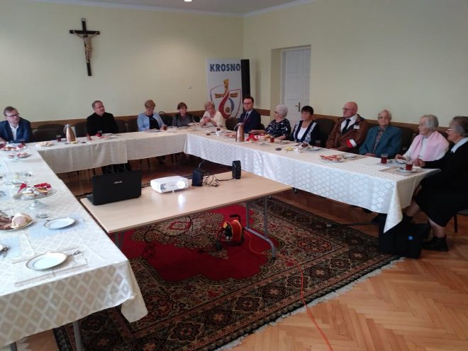 W 79. rocznicę napaści sowieckiej Rosji na Polskę obchodziliśmy Światowy Dzień Sybiraka. Świętowanie rozpoczęliśmy 15 września 2018 r. od spotkania członków Oddziału ZS w Krośnie na plebanii parafii pw. Trójcy Przenajświętszej w Krośnie. Zebranie przygotował kapelan Sybiraków ks. prałat Andrzej Chmura wraz z prezes Zarządu Koła ZS w Krośnie Alicją Serwińską, przewodniczącą Komisji Rewizyjnej Sabiną Kozubal oraz skarbnikiem Sewerynem Myśliwcem. Zebranie rozpoczęliśmy od wysłuchania Hymnu Sybiraków, po zakończeniu którego prezes Zarządu Oddziału Rafał Woźniak przedstawił działania, jakie podejmuje Zarząd Główny ZS w celu uzyskania odszkodowań dla zesłańców syberyjskich. Wiceprezes Zarządu naszego Oddziału Janusz Serwiński przedstawił plany działalności Związku na kolejne miesiące. Uczestnikom została zaprezentowana fotorelacja z XVIII Międzynarodowego Marszu Pamięci Zesłańców Sybiru, który odbył się w Białymstoku. Na spotkaniu najważniejsi jednak byli Sybiracy w osobach m.in. Danuty Chodorowskiej, Kamili Blecharczyk, Teresy Bugajskiej, Rozalii Jaworskiej, Adama Kozłowskiego, którzy swoimi opowieściami poruszyli nasze serca. W zebraniu brała udział wicewojewoda podkarpacka Lucyna Podhalicz, z którą wspólnie wysłuchaliśmy wstrząsających relacji o losach Polaków zesłanych na „nieludzką ziemię”. Główne obchody Dnia Sybiraka odbyły się w Bazylice Kolegiackiej w Krośnie. Uroczystość rozpoczęła się od koncertu Sanockiego Zespołu Wokalnego Soul pod dyrekcją Moniki Brewczak. Zespół wykonał pieśni patriotyczne. Po wspaniałym koncercie została odprawiona uroczysta msza święta w intencji Sybiraków i ojczyzny pod przewodnictwem kapelana Sybiraków ks. prałata Andrzeja Chmury. Po mszy świętej okolicznościowe przemówienie wygłosiła wicewojewoda Lucyna Podhalicz, która wspomniała niezłomność Polaków w walce o niepodległość, podkreślając, że Sybiracy w pierwszej kolejności zasługują na miano bohaterów odzyskania niepodległości. Na koniec głos zabrał prezes Zarządu Oddziału Związku Sybiraków w Krośnie Rafał Woźniak, który podziękował za organizację uroczystości oraz okolicznościowe upominki: ks. prałatowi Andrzejowi Chmurze, prezydentowi miasta Krosna Piotrowi Przytockiemu, posłom na Sejm RP Piotrowi Babinetzowi i Stanisławowi Piotrowiczowi, wicewojewodzie podkarpackiej Lucynie Podhalicz, zespołowi Soul z Sanoka pod dyrekcją Moniki Brewczak, radnemu wojewódzkiemu Jerzemu Borczowi, 19. Drużynie Harcerskiej „Invictus” im. Józefa Piłsudskiego w Jaszczwi na czele z hm. Piotrem Lubasiem, Związkowi Strzeleckiemu „Strzelec” Józefa Piłsudskiego – Jednostce Strzeleckiej 1910 z Krosna pod dowództwem Pawła Nycza oraz wszystkim pocztom sztandarowym, m.in. ze Związku Żołnierzy Armii Krajowej, Zespołu Szkół Ponadgimnazjalnych nr 2 w Krośnie, ZSP nr 5 w Krośnie, ZSP nr 6 w Krośnie, ZSP nr 4 „Naftówka” w Krośnie. Następnie Sybiracy, prezydent Piotr Przytocki wraz z przewodniczącym Rady Miasta Zbigniewem Kubitem, wicewojewoda Lucyna Podhalicz, w imieniu posła na Sejm Piotra Babinetza – Krzysztof Babinetz, Sabina Kozubal reprezentująca posła na Sejm RP Stanisława Piotrowicza, radny wojewódzki Jerzy Borcz, delegacje szkół oraz osoby prywatne złożyli wiązanki pod tablicą Pamięci Ofiar Terroru Komunistycznego. Spotkanie na plebanii parafii pw. Trójcy Przenajświętszej w Krośnie Występ Sanockiego Zespołu Wokalnego Soul Złożenie kwiatów pod tablicą pamiątkową. Na pierwszym planie wicewojewoda Lucyna Podhalicz Tablica Pamięci Ofiar Terroru Komunistycznego w Bazylice Kolegiackiej w Krośnie Prezes Zarządu Oddziału ZS w Krośnie Rafał Woźniak z wicewojewodą Lucyną Podhalicz Autor: Rafał Woźniak, prezes Zarządu Oddziału ZS w Krośnie Przeczytano 66 Nawigacja wpisu Msza święta w intencji ojczyzny we Wrocławiu Dzień Sybiraka w Bydgoszczy