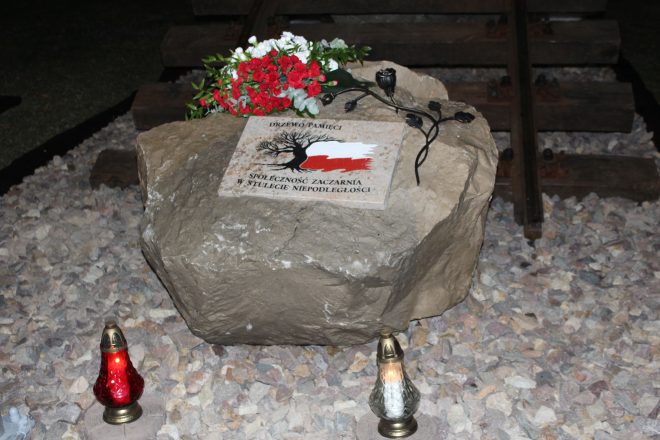 18 października 2018 r. w Zaczarniu przy Szkole Podstawowej im. Marii Konopnickiej z oddziałami gimnazjalnymi odsłonięto znak pamięci, przy którym posadzono Drzewo Pamięci, realizując inicjatywę VIII Ogólnopolskiego Zjazdu Dyrektorów Szkół i Placówek oraz Prezesów Stowarzyszeń noszących imiona upamiętniające Zesłańców Sybiru. Niezwykła uroczystość miała upamiętnić stulecie odzyskania przez Polskę niepodległości. Rozpoczęła się od mszy świętej, koncelebrowanej przez ks. Roberta Filipowicza, o. Piotra Pacurę i ks. Kazimierza Kruczyńskiego w intencji ojczyzny w kościele parafialnym, w której liczny udział wzięli zaproszeni goście, społeczność lokalna i szkolna. Po jej zakończeniu wszyscy przemaszerowali na plac przed budynkiem szkoły, gdzie odbyło się uroczyste odsłonięcie znaku pamięci zaprojektowanego przez Ewę Kutę i Marka Kwapniewskiego, a ufundowanego przez mieszkańców Zaczarnia. Dokonali go Ewa Kuta, Dagmara Pytel-Kańka, Arkadiusz Mikuła, Marek Kwapniewski, Adrianna Szostak i Przemysław Madej. W tej historycznej chwili uczniowie najstarszych klas szkoły podstawowej podnieśli flagę państwową na maszt znajdujący się obok pomnika. Następnie goście, mieszkańcy Zaczarnia oraz społeczność szkolna udali się do sali gimnastycznej. Kolejna część obchodów stulecia niepodległości rozpoczęła się od powitania przez dyrektora Szkoły Podstawowej im. Marii Konopnickiej w Zaczarniu Tadeusza Kozioła przybyłych, którzy po brzegi wypełnili halę. Frekwencja przeszła najśmielsze oczekiwania organizatorów. Następnie dyrektor wręczył po raz ostatni statuetkę „Róża Pamięci”, będącą symbolicznym podziękowaniem dla osoby w szczególny sposób wspierającej szkołę. Otrzymał ją Edward Kędzierski. Część artystyczna rozpoczęła się od historycznego wprowadzenia w tematykę koncertu „Drogi wolności”. Następnie zebrani mogli obejrzeć krótkie przedstawienie „Strajk we Wrześni”, ekspresywnie zagrane przez uczniów klasy VIII i III gimnazjum, przygotowane pod okiem Jolanty Kolak i Katarzyny Maślanki. Było ono manifestem postawy młodych Polaków, którzy bronili swej narodowości, i wstępem do koncertu. Poruszające i piękne pieśni patriotyczne, nawiązujące do wydarzeń z historii Polski od 1918 do 2018 r., wykonali utalentowani soliści: Katarzyna Rąpała, Klaudia Rąpała, Marlena Madej i Jakub Marszałek, którym towarzyszył chór szkolny (składający się z uczniów, rodziców, nauczycieli oraz mieszkańców Zaczarnia) oraz wspaniali muzycy: Paweł Maurycy, Jacek Bielecki, Robert Wałaszek oraz Dominika Cecot, Zofia Guzik, Agnieszka Siedlik, Albert Sumara, Michał Smajdor i Michał Świerczek. Pieśni ilustrowane były prezentacjami multimedialnymi wykonanymi przez: Małgorzatę Stolarz, Joannę Ptak, Joannę Żurek i Iwonę Skicką. Przygotowaniem całości koncertu od strony muzycznej zajął się Dariusz Augustyn. Scenariusz całej uroczystości opracowali: Jolanta Kolak i Tadeusz Kozioł. O oświetlenie sali w czasie koncertu zadbał Piotr Kuta, firma E-events Team. Z owacji na stojąco na koniec uroczystości można wywnioskować, że zrobiła ona duże wrażenie i podobała się zgromadzonej publiczności. Wszyscy podkreślali profesjonalizm całego przedsięwzięcia. Swymi wrażeniami z zebranymi podzielili się: Arkadiusz Mikuła – wójt gminy Lisia Góra, Teresa Szydłowska – wizytator Kuratorium Oświaty, Paweł Stach – wiceprzewodniczący Rady Gminy Lisia Góra, a także Paweł Bukowski – dyrektor Muzeum Marii Konopnickiej w Żarnowcu, którzy wyrazili uznanie dla wszystkich, którzy włączyli się w przygotowanie tego historycznego dla społeczności Zaczarnia wydarzenia. Drzewo Pamięci ufundowane przez mieszkańców Zaczarnia w rocznicę stulecia odzyskania przez Polskę niepodległości Znak pamięci w Zaczarniu Koncert „Drogi wolności” Występ uczniów „Strajk we Wrześni” Autorzy: Jolanta Kolak, Katarzyna Maślanka Przeczytano 138 Nawigacja wpisu „Polskie drogi do wolności” Kalendarium obchodów upamiętniających setną rocznicę odzyskania przez Polskę niepodległości w województwie podlaskim