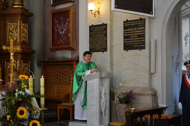 16 września 2018 r., w przeddzień uroczystości Dnia Sybiraka i 79. rocznicy napaści Związku Sowieckiego na Polskę odbyło się spotkanie członków przemyskiego Oddziału Związku Sybiraków. Spotkanie poprzedziła odprawiona w kościele pw. Świętej Trójcy msza święta, której przewodniczył ks. prałat Jan Mazurek, duszpasterz przemyskiego Oddziału. Po mszy świętej zgromadzeni przeszli pod tablicę umieszczoną w arkadii kościoła, upamiętniającą rocznicę pierwszej masowej deportacji Polaków na Sybir 10 lutego 1940 r. Za zmarłych zesłańców odmówiono „Anioł Pański” i zapalono znicze. Na drugą część członkowie Oddziału udali się do przygotowanej sali, gdzie przybyłych powitała w imieniu prezes Zarządu Oddziału Stanisławy Żak – członek Prezydium Zarządu Oddziału Krystyna Zwierkowska. Wprowadzono poczet sztandarowy Oddziału i odegrano Hymn Sybiraków. Podczas spotkania przekazano przybyłym ważne informacje dotyczące spraw sybirackich, w tym o przygotowanej przez Kancelarię Prezydenta RP ustawie substytucyjnej i przygotowywanym wydawnictwie o przemyskich Sybirakach. Uroczyste procesyjne wejście z relikwiami bł. Władysława Bukowińskiego, apostoła Kazachstanu Duszpasterz przemyskiego Oddziału Związku Sybiraków ks. prałat Jan Mazurek Poczet sztandarowy przemyskiego Oddziału (od lewej): Andrzej Stawarz, Mariusz Piwko, Jan Filozof i obok ks. prałat Jan Mazurek podczas modlitwy przy tablicy Członkowie przemyskiego Oddziału Związku Sybiraków Autor: Marian Boczar, sekretarz Zarządu Oddziału ZS w Przemyślu Przeczytano 26 Nawigacja wpisu Dzień Sybiraka w Bydgoszczy Dzień Sybiraka – Dąb Pamięci w Wołominie