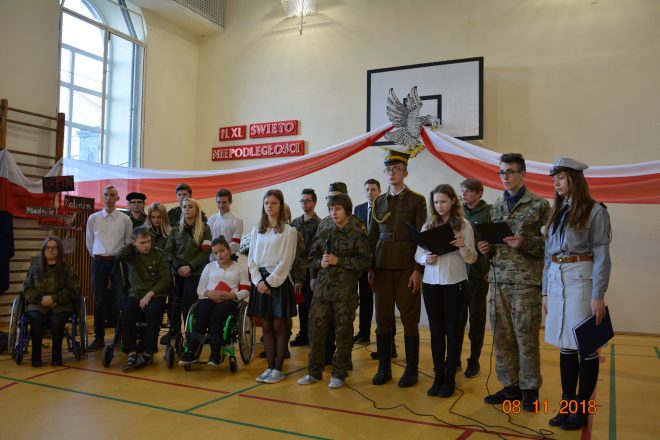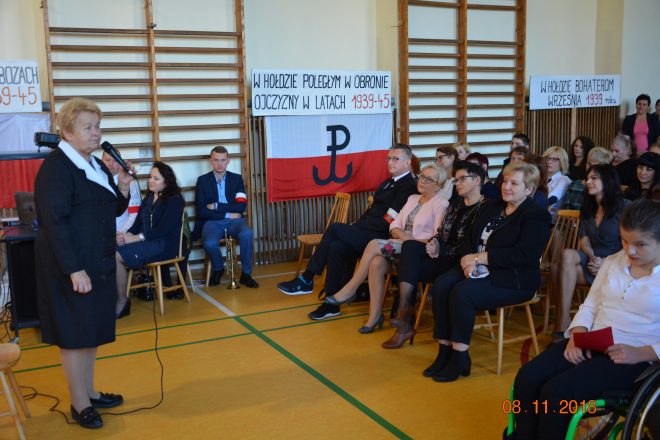 Setna rocznica odzyskania niepodległości przez Polskę to czas radosnego świętowania, ale i możliwość przybliżenia historii deportacji Polaków na Sybir młodemu pokoleniu. W ramach obchodów przedstawiciele przemyskiego Zarządu Oddziału Związku Sybiraków Stanisława Żak – prezes, Joanna Preiss – wiceprezes, Andrzej Stawarz – wiceprezes, Marian Boczar – sekretarz i Maria Wielgosz – członek Zarządu uczestniczyli w uroczystych akademiach w szkołach i przedszkolach. W Gimnazjum nr 1 im. Orląt Przemyskich 26 października 2018 r. braliśmy udział w spotkaniu przygotowanym przez uczniów gimnazjum pt. „Nasze drogi do wolności – w hołdzie bohaterom”. Spotkanie obejmowało dzieje walk o niepodległość od pierwszego rozbioru Polski, poprzez I wojnę światową, walki o Przemyśl w 1918 r., II wojnę światową, Katyń, tragedię rodziny Ulmów (bohaterskiej rodziny z Podkarpacia) oraz losy żołnierzy niezłomnych rotmistrza Witolda Pileckiego i Danuty Siedzikówny, aż po czasy utworzenia „Solidarności” w 1980 r. W dniu 6 listopada 2018 r. w Szkole Podstawowej im. Jana Pawła II w Olszanach koło Przemyśla uczniowie zaprezentowali montaż słowno-muzyczny, wzbogacony występem szkolnego zespołu muzycznego Wiolinki, po którym odbyła się żywa lekcja historii. Uczniowie zapoznali się z tematyką zesłań poprzez film „Na nieludzkiej ziemi”, a potem wysłuchali wspomnień z pobytu na deportacji. Z wielkim zaangażowaniem obchody setnej rocznicy odzyskania niepodległości przygotowali uczniowie Ośrodka Szkolno-Wychowawczego nr 3 im. Kazimierza Wielkiego w Przemyślu. Młodzież niepełnosprawna z szacunkiem pochyliła się nad historią Polski w dążeniu do niepodległości. Po uroczystej akademii uczniowie zapoznali się z tematyką zesłań poprzez film „Losy Zesłańców Sybiru”, a później wysłuchali wspomnień. Z szacunkiem, powagą, ale i z dziecięcym uśmiechem dzieci z Przedszkola nr 14 im. Czytelników Życia Przemyskiego i Przedszkola nr 3 w Przemyślu zaprezentowały programy słowno-muzyczne z okazji setnej rocznicy odzyskania niepodległości przez Polskę. Z poszanowaniem i godnością odśpiewały hymn państwowy. Z dziecięcym zapałem śpiewały piosenki patriotyczne, a potem wysłuchały opowieści o Syberii. Podobnie jak w wielu miastach, w dniu 11 listopada 2018 r. w Przemyślu odbyły się uroczystości z okazji setnej rocznicy odzyskania niepodległości Polski, w których uczestniczyli członkowie przemyskiego Oddziału Związku Sybiraków wraz z pocztem sztandarowym. Występ patriotyczny uczniów Gimnazjum nr 1 im. Orląt Przemyskich Spotkanie młodzieży Szkoły Podstawowej im. Jana Pawła II w Olszanach z Sybirakami Okolicznościowy występ uczniów Ośrodka Szkolno-Wychowawczego nr 3 im. Kazimierza Wielkiego w Przemyślu Swoimi wspomnieniami podzieliła się m.in. prezes Stanisława Żak Dzieci z Przedszkola nr 14 im. Czytelników Życia Przemyskiego z Sybirakami Młodzi artyści Przedszkola nr 3 w Przemyślu Chorąży poczty sztandarowego Krzysztof Góral w uroczystym przemarszu z okazji Święta Niepodległości Przemyscy Sybiracy podczas uroczystości upamiętniającej stulecie odzyskania przez Polskę niepodległości Autor: Marian Boczar, sekretarz Zarządu Oddziału ZS w Przemyślu Przeczytano 34 Nawigacja wpisu Nadanie imienia Sybiraków Szkole Podstawowej w Dolistowie Starym Drzewo Pamięci w Gimnazjum im. Zesłańców Sybiru w Zaczarniu