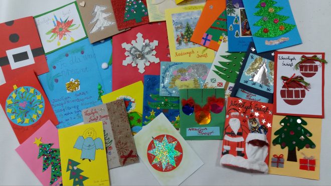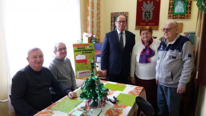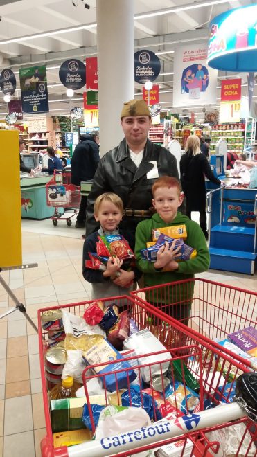 Koło Związku Sybiraków w Dębicy po raz czwarty włączyło się w ogólnokrajową akcję Stowarzyszenia Odra–Niemen „Polacy bohaterom”. Zbiórka produktów żywnościowych wśród członków Koła, osób wspierających, znajomych, a zwłaszcza akcja przeprowadzona przez Sybiraków w handlowej Galerii Dębickiej przyniosły efekt w postaci ponad 1300 kg produktów żywnościowych (konserwy mięsne, makaron, mąki, kasza, cukier, olej), nie licząc wagowo: czekolad, herbaty, kawy ciastek itp. Jest to więcej o ponad 100 kg aniżeli w 2017 r. W trakcie akcji w Galerii Dębickiej wsparli nas jak zawsze członkowie Podkarpackiego Stowarzyszenia Militariów w Rzeszowie. Bez nich nie uczynilibyśmy tego. Zebrane produkty pojadą tak jak w ubiegłym roku w rejon miasta Soleczniki na Litwie. Przygotowywane są transport samochodowy i ekipa do rozwozu na miejscu. Koordynatorem akcji był członek naszego Koła – Jurek Godzisz. Choć lat mamy wiele i zdrowie czasami nie dopisuje, z wykonanej pracy mamy wielką satysfakcję. Burmistrz miasta Dębica Mariusz Szewczyk (w środku) w biurze Koła z Sybirakami (od lewej): Krzysztofem Glijerem, Stanisławem Czyżem, Marią Aktyl (prezes Zarządu Koła), Zygmuntem Batorskim w czasie akcji zbiórki żywności Kartki świąteczne dla Kresowian wykonane przez uczniów klasy 1 c Szkoły Podstawowej nr 3 w Dębicy Dyżur w Galerii Dębickiej: harcerka Asia Więcek, Sybiracy: Zofia Żyrkowska, Jurek Godzisz (koordynator akcji na Podkarpaciu) w otoczeniu członków Podkarpackiego Stowarzyszenia Miłośników Militariów Dębickie maluchy, ale wielkie serducha Autorzy: Dębiccy Sybiracy Przeczytano 23 Nawigacja wpisu Spotkanie opłatkowe Kół ZS Grunwald i Jeżyce w Poznaniu Uroczystość 100-lecia urodzin kpt. Józefa Kasperowicza w Sulechowie