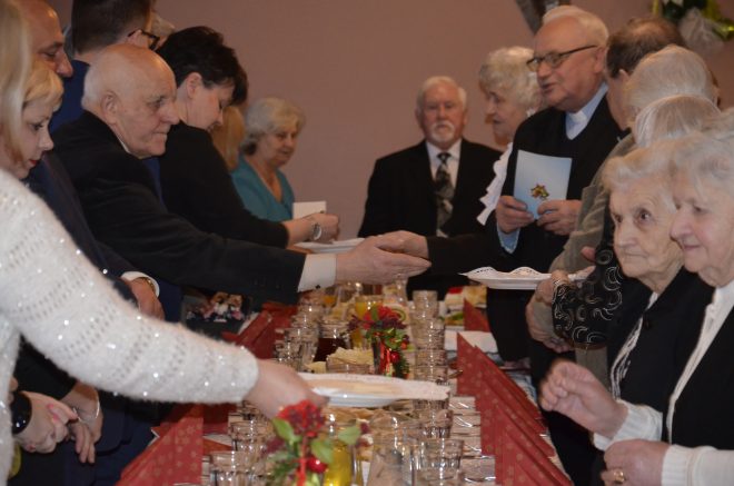 Dnia 5 stycznia 2019 r. zostało zorganizowane tradycyjne spotkanie opłatkowe środowisk kombatanckich – Sybiraków i żołnierzy Armii Krajowej. Organizatorem spotkania byli Zbigniew Kaszlej – prezes augustowskiego Zarządu Koła Światowego Związku Żołnierzy Armii Krajowej, Jerzy Sienkiewicz – prezes Zarządu Oddziału Związku Sybiraków w Augustowie, Danuta Kaszlej – prezes Klubu Historycznego im. Armii Krajowej w Augustowie, Barbara Czartoszewska – wiceprezes Zarządu augustowskiego Oddziału Związku Sybiraków. O godz. 12.00 w Bazylice Najświętszego Serca Jezusowego w Augustowie odbyła się uroczysta msza święta, której przewodniczył infułat ks. Antoni Kochański, zaś homilię wygłosił ks. Marian Szewczyk. W kościele w uroczystość włączyła się młodzież z II Liceum Ogólnokształcącego im. Polonii i Polaków na Świecie: Julia Dąbrowska, Natalia Grabowska, Klaudia Michałowska i Kacper Niedźwiecki. Po mszy świętej wszyscy zebrali się na spotkaniu opłatkowym w restauracji Albatros. Uczniowie klas Gimnazjum nr 2 im. Sybiraków (obecnie Szkoły Podstawowej nr 2 im. Zygmunta Augusta) wraz z uczniami Szkoły Podstawowej nr 6 im. Armii Krajowej, połączeni w jeden zespół wykonali przepiękny i wzruszający koncert kolęd i pastorałek. Razem z uczniami zgromadzeni śpiewali tradycyjne kolędy, jak też słuchali nowych, nieznanych pięknych pastorałek. Uczniowie zostali nagrodzeni wielkimi brawami i słodyczami. Występ zespołu przygotowała i poprowadziła Lena Anna Olechowska. Drugą część spotkania rozpoczęły czytanie fragmentów Pisma Świętego oraz modlitwa za Sybiraków i żołnierzy AK. Wspomniano o tych, których zabrakło przy noworocznym stole. Wśród gości byli m.in.: ks. Antoni Kochański, wicestarosta augustowski Dariusz Szkiłądź, reprezentant burmistrza Michał Kotarski, dyrektorzy i nauczyciele szkół oraz przedstawiciele środowisk współpracujących z kombatantami, m.in.: Barbara Koronkiewicz, Agnieszka Milanowska, Henryka Rzepecka, Katarzyna Bernatowicz, Karol Czarniecki, Anna Jakucewicz, Danuta Gregorowicz – prezes Stowarzyszenia Pamięci Zesłańców Sybiru. Obecny był były burmistrz Augustowa Wojciech Walulik, jednocześnie wnuk Sybiraka. Wszyscy życzyli sobie dobrego roku w zdrowiu i tego, abyśmy mogli spotkać się znowu za rok na tradycyjnym spotkaniu opłatkowym. Mszy świętej w Bazylice Mniejszej w Augustowie przewodniczył ks. infułat Antoni Kochański Zaproszeni goście. Stoją (od lewej) prezes Zarządu Oddziału ZS w Augustowie Jerzy Sienkiewicz i prezes Zarządu Koła Augustów ŚZŻAK Wojciech Kaszlej Występ uczniów uczniów Gimnazjum nr 2 im. Sybiraków i Szkoły Podstawowej nr 6 im. Armii Krajowej Dzielimy się opłatkiem Od lewej: Sybirak Zbigniew Ulikowski, wiceprezes Zarządu Oddziału ZS w Augustowie Barbara Czartoszewska, wicestarosta Dariusz Szkiłądź, Danuta Gregorowicz – prezes augustowskiego Stowarzyszenia Pamięci Zesłańców Sybiru Autor: Henryka Rzepecka, zdjęcia Danuta Gregorowicz i Ewelina Dadura z kl. III b Przeczytano 76 Nawigacja wpisu Spotkanie opłatkowe w Nowym Sączu Spotkanie świąteczno-noworoczne zielonogórskich Sybiraków