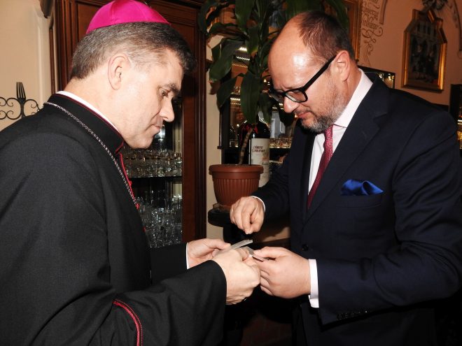 Szanowni, Kochani przy opłatku zebrani! Myśl nasza ucieka do Boga-człowieka, Dzieciątka Bożego w żłóbku złożonego. Prosimy Go z pokorą, skruchą i spokojem, By obdarzał nas dobrem, radością, pokojem. I dziękujemy, że przeżyliśmy zesłanie W lasach na Syberii, w stepach w Kazachstanie. Nasze myśli też biegną w stronę naszych Gości, Mających stanowiska, funkcje i godności, By z okazji Świąt Bożego Narodzenia Złożyć płynące z naszych serc życzenia: Nowo wybranym Władzom Województwa i Miasta Życzymy zgodnej współpracy, by ich i nasz status wzrastał; Byśmy się jednoczyli bez waśni i sporów, Pamiętając o czasach naszych klęsk, zaborów, O niemieckich i sowieckich łagrach i obozach, O niewolniczej pracy w kołchozach, sowchozach. Nasze pokolenie w tym uczestniczyło. Prośmy Boga, by się to nie powtórzyło. Wszystkim naszym Władzom za wsparcie dziękujemy, Bo dzięki temu działamy i funkcjonujemy. Jego Ekscelencji Księdzu Biskupowi, Jak polski zwyczaj i tradycja stanowi, Życzymy wszelkich łask i dóbr od Pana Boga I… do stolicy papieskiej niech prowadzi droga. Naszemu Drogiemu Księdzu Kapelanowi, Który nas wspiera duchowo, Życzymy także łask Bożych, by trzymał się zdrowo, Żeby nas nie opuszczał, dopóki żyjemy. I… żeby został biskupem. Wszyscy tego pragniemy. Kochana Pani Prezes Rodziny Katyńskiej! Życzymy Ci zdrowia, sił i wytrwałości, Na co dzień mniej pośpiechu, a więcej radości. Żeby złamana ręka już Cię nie bolała, Żebyś jak dotąd z nami współdziałała. A w Federacji Katyńskiej w Warszawie, Żebyś współdecydowała w każdej ważnej sprawie. Panu Mecenasowi, który prawnie nas wspiera, A w swoim działaniu zawsze laury zbiera, Życzymy nowej energii do dalszego działania W zakresie praw człowieka, bo są nowe wyzwania. W życiu osobistym dużo szczęścia, miłości. W pracy więcej pogody, mniej stresów, zero złości. Pani Dyrektor CEPR-u Szymbarskiego Regionu Życzymy, żeby jak dotąd nie spuszczała z tonu I wysoką poprzeczkę, jaką wyznaczyła, Z kobiecym wdziękiem sprawnie przekroczyła, Żeby swoje ambitne marzenia spełniała I Zjazdy Sybiraków organizowała. Panu Dyrektorowi Liceum im. Józefa Wybickiego, Które po likwidacji Gimnazjum im. Jana Pawła II Objęło patronat nad naszym Pomnikiem I zdało egzamin z celującym wynikiem, Dziękujemy z nadzieją na dalsze współdziałanie I w sztafecie pokoleń „młodzieży chowanie”. Panu Prezesowi Stowarzyszenia Pamięci Polskiego Sybiru, Chroniącemu historię od zapomnienia, Jako wiedzę z przestrogą dla młodego pokolenia, Życzymy, by w młodzieży zapał nie wygasał, Żeby ich działanie budziło uznanie, Żeby Pan z tego czerpał radość i zadowolenie. I żeby się spełniało każde Pana marzenie. Pani Prezes „Rodziny Ponarskiej”, Która pogłębia wiedzę o zbrodni w Ponarach, Życzymy dobrego zdrowia i zapału W chronieniu pamięci o Ofiarach. Panu Prezesowi Poszkodowanych przez III Rzeszę Życzymy zdrowia i skutecznego działania, Żeby wszyscy poszkodowani dostali odszkodowania. Panu Majorowi, Muzeum II Wojny Światowej, Które się znalazło w sytuacji nowej, Życzymy, by Muzeum ciągle się rozwijało I z wyników Pana badań ciągle korzystało. Panu Pułkownikowi Sztabu Wojskowego I Panu Pułkownikowi Komandorowi Morskiego Oddziału Straży Granicznej, Którzy dbają, by uświetniać nam uroczystości, Życzymy wszystkiego, czego pragną: Dobrej kondycji, awansów i rodzinnej miłości. I wszystkim tu obecnym życzymy serdecznie Byśmy byli szczęśliwi i zdrowi i byśmy zawsze czuli się bezpiecznie! Ks. bp Zbigniew Zieliński i prezydent Gdańska Paweł Adamowicz Andrzej Kowalczys, Tamara von Wiecka-Olszewska oraz płk Andrzej Płocha Autor: Celina Riedl Przeczytano 39 Nawigacja wpisu Spotkanie świąteczno-noworoczne zielonogórskich Sybiraków Spotkanie świąteczno-noworoczne członków Koła ZS nr 8 Poznań-Winogrady