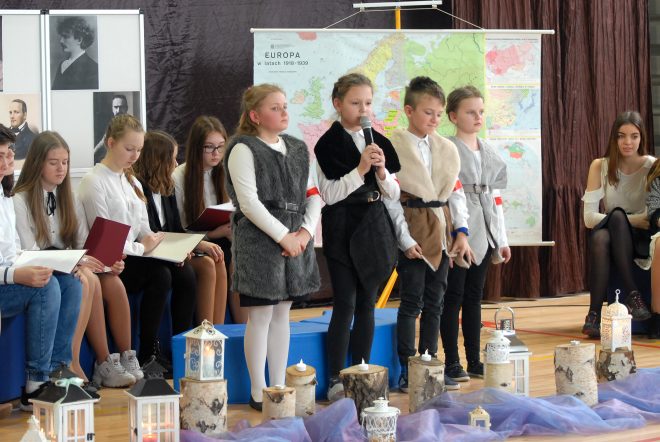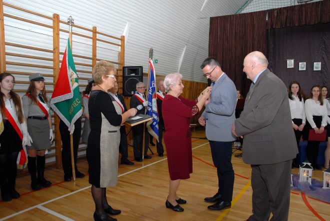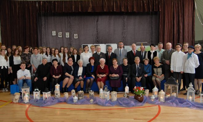 Tradycją Szkoły Podstawowej w Kotli stało się organizowanie uroczystego apelu upamiętniającego wydarzenia z 10 lutego 1940 r., kiedy to władze sowieckie przeprowadziły pierwszą masową akcję deportacyjną z zagarniętych terenów wschodnich II Rzeczypospolitej. Przymusowe przesiedlenia – na teren północnego Kazachstanu oraz Syberii – objęły głównie ludność polską, a przede wszystkim właścicieli ziemskich, urzędników państwowych, nauczycieli, kolejarzy, leśników wraz z rodzinami. Uroczystość dnia 20 lutego 2019 r. rozpoczęła się mszą świętą w kościele parafialnym pw. św. Marcina w Kotli, przewodniczył jej i okolicznościową homilię wygłosił proboszcz ks. Andrzej Skoczylas. W asyście pocztów sztandarowych Koła Związku Sybiraków w Głogowie, Gimnazjum Gminnego w Kotli, Szkoły Podstawowej w Kotli i Chorągwi Hufca ZHP w Głogowie złożono kwiaty i zapalono znicze pod tablicą pamiątkową przy kościele, a następnie odbył się apel pamięci w sali gimnastycznej Zespołu Szkolno-Przedszkolnego w Kotli. Na uroczystość przybyli Sybiracy, ich rodziny i zaproszeni goście, wśród których byli: członek Zarządu Głównego Związku Sybiraków, a zarazem wiceprezes Zarządu Oddziału ZS w Legnicy Wanda Puchała, członek Zarządu Oddziału ZS w Legnicy Antoni Dziemirowicz, prezes Zarządu Koła Związku Sybiraków w Głogowie Stanisław Dwojny z asystą pocztu sztandarowego, wójt gminy Kotla Łukasz Horbatowski, komendant Hufca ZHP w Głogowie Krzysztof Stachów, sekretarz gminy, radni i kierownicy jednostek organizacyjnych gminy, by wspólnie z uczniami Zespołu Szkolno-Przedszkolnego w Kotli i nauczycielami uczcić pamięć minionych wydarzeń. W czasie uroczystości młodzież i dzieci zaprezentowały program artystyczny, na który składały się wspomnienia byłych zesłańców, utwory poetyckie i piosenki. Utwory te wywarły ogromne wrażenie, nie tylko na gościach, ale i młodych wykonawcach, skłoniły do wspomnień i refleksji, były żywą lekcją historii. Podczas uroczystości wójt gminy Kotla Łukasz Horbatowski został odznaczony Odznaką Honorową Sybiraka za kontynuację wsparcia finansowego gminy Kotla w corocznej organizacji rocznicowych uroczystości. Odznakę wręczyła Wanda Puchała, członek Zarządu Głównego ZS. Wójt złożył podziękowania dla Koła Związku Sybiraków w Kotli. Podziękował dzieciom, młodzieży, nauczycielom i wszystkim osobom zaangażowanym w organizację wydarzenia. Następnie prezes Zarządu Koła ZS w Kotli Halina Fendorf i skarbnik Stanisław Sapużak podziękowali, wręczając kwiaty Halinie Ignacik, dyrektor Szkoły Podstawowej w Kotli i Dorocie Danielewicz, dyrektor Gimnazjum Gminnego w Kotli, za podejmowany od 2005 r. coroczny trud związany z organizacją uroczystości sybirackich. Z okazji tej 15. rocznicy Koło Związku Sybiraków w Kotli wyróżniło nagrodami książkowymi dwie polonistki z tych szkół Danutę Nowalińską i Alinę Szermer za niewątpliwie największy wkład, jakim było przygotowywanie programów artystycznych. W miłej atmosferze zakończono uroczystość wspólnym, zbiorowym zdjęciem i poczęstunkiem w świetlicy szkolnej. Msza święta w kościele parafialnym pw. św. Marcina w Kotli Złożenie kwiatów pod tablicą pamiątkową Wręczenie wójtowi Łukaszowi Horbatowskiemu Odznaki Honorowej Sybiraka Program artystyczny w wykonaniu uczniów Zespołu Szkolno-Przedszkolnego w Kotli Zaproszeni goście (od lewej): dyrektor Halina Ignacik, wójt Łukasz Horbatowski, prezes Zarządu Koła ZS w Kotli Halina Fendorf, wiceprezes Zarządu Oddziału ZS w Legnicy Wanda Puchała, proboszcz ks. Andrzej Skoczylas Podziękowania dla nauczycieli Prezes Halina Fendorf i skarbnik Stanisław Sapużak złożyli podziękowania dyrektor Halinie Ignacik Podziękowania otrzymały nauczycielki Danuta Nowalińska (z lewej) i Alina Szermer Wspólne zdjęcie pamiątkowe Autor: Halina Fendorf, prezes Zarządu Koła ZS w Kotli Przeczytano 61 Nawigacja wpisu Uroczystości patriotyczne w Legnicy Dni Patrona w Gimnazjum im. Zesłańców Sybiru w Piławie Górnej