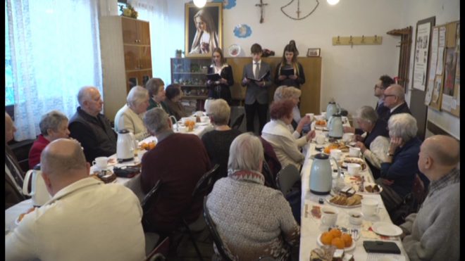 Na początku stycznia członkowie Koła Związku Sybiraków nr 8 z Winograd spotykają się, aby wspólnie śpiewać kolędy i podzielić się opłatkiem. W 2019 r. spotkanie odbyło się 9 stycznia. Spotkanie tradycyjnie rozpoczęliśmy mszą świętą w intencji żyjących oraz zmarłych już Sybiraków, a także wszystkich Polaków, którzy nigdy nie powrócili do ojczyzny. Podczas mszy modliliśmy się także o zdrowie i wszelką pomyślność dla Janiny Janowicz, długoletniej prezes Zarządu naszego Koła, z okazji 90. rocznicy urodzin. Po mszy świętej, w salce parafialnej rozpoczęło się spotkanie świąteczno-noworoczne. Obecna prezes Danuta Marszał powitała koleżanki i kolegów Sybiraków oraz przybyłych gości. Spotkanie było szczególnie uroczyste z kilku powodów. Członkowie Koła złożyli jubilatce – Janinie Janowicz urodzinowe życzenia, a także podziękowania za wieloletni trud prowadzenia naszego Koła Związku Sybiraków, zaangażowanie, okazywaną pomoc i zainteresowanie sprawami wszystkich członków. Podziękowanie za współpracę oraz pomoc w organizowaniu sybirackich spotkań złożyliśmy także na ręce proboszcza ks. Jana Szczepaniaka. Wręczony księdzu proboszczowi pamiątkowy medal wybity z okazji 90. rocznicy powstania Związku Sybiraków będzie z pewnością wspaniałą pamiątką. Po wspólnym odśpiewaniu Hymnu Sybiraków oraz modlitwie, obecni na spotkaniu przełamali się opłatkiem, życząc sobie wzajemnie zdrowia i wszelkiej pomyślności. Wielka szkoda, że z roku na rok coraz mniej osób uczestniczy w naszych spotkaniach. Tradycją opłatkowych spotkań jest przygotowanie oraz prezentowanie programu artystycznego przez młodzież XX Liceum Ogólnokształcącego z Wichrowego Wzgórza. W tym roku gościliśmy dyrektora Lechosława Rybkę i uczniów klasy teatralnej I A, którzy zaprezentowali program o historii Kresów Wschodnich, opracowany przez historyka prof. Andrzeja Kucharskiego. Jak zwykle występ młodzieży dostarczył zebranym wielu wzruszeń, przywołał dawne wspomnienia i został przyjęty głośnymi brawami. Dziękujemy młodzieży z XX LO za ciekawy program i wspaniałe, wzruszające chwile. Dziękujemy, że pamięta o Sybirakach i chętnie z nami współpracuje. Podczas rozmów przy ciastku i kawie poruszano wiele tematów. Bardzo istotna dla nas, Sybiraków, jest wspólna troska o znajdujący się na naszym osiedlu pomnik – kamień Golgota Wschodu. To miejsce upamiętnia Polaków, którzy zostali na „nieludzkiej ziemi”, byli prześladowani i ginęli za to tylko, że byli Polakami. Pamiętajmy wszyscy o tych bohaterskich ludziach, zapalajmy dla nich znicze pamięci! Świąteczno-noworoczne spotkanie Sybiraków upłynęło w miłej i uroczystej atmosferze. Bardzo dziękujemy uczestnikom oraz wszystkim osobom, które wspierają nas i pomagają nam w organizowaniu tych spotkań. Do zobaczenia w przyszłym roku! Członkowie Koła ZS Poznań-Winogrady podczas spotkania świąteczno-noworocznego Składanie życzeń. Od lewej: prezes Zarządu Koła Danuta Marszał, poprzednia prezes Janina Janowicz, proboszcz ks. Jan Szczepaniak Podziękowania. Od lewej: prezes Zarządu Koła Danuta Marszał, poprzednia prezes Janina Janowicz, proboszcz ks. Jan Szczepaniak, sekretarz Halina Walkowiak Pomnik – kamień Golgota Wschodu znajdujący się na naszym osiedlu Autor: Krystyna Żuk-Bąkowska Przeczytano 69 Nawigacja wpisu Opłatek w Gdańsku Spotkanie opłatkowe Wspólnoty Wnuków Sybiraków w Białymstoku
