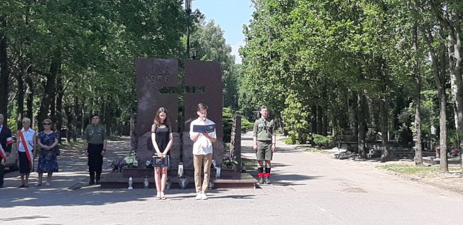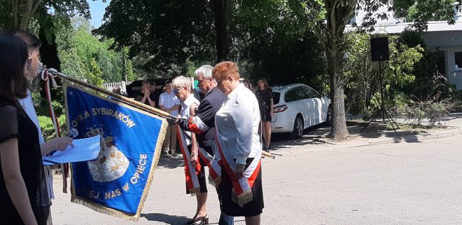 W dniu 14 czerwca 2019 r. na cmentarzu przy ul. Żwirowej w Gorzowie Wielkopolskim uczniowie Szkoły Podstawowej nr 2 z Oddziałami Sportowymi im. Szarych Szeregów upamiętnili kolejną rocznicę trzeciej i czwartej deportacji Polaków na Syberię, które miały miejsce w czerwcu 1940 i 1941 r., deportacji dokonanych przez komunistyczną Rosję Sowiecką. W uroczystości wzięli udział: Ewa Rawa – lubuski kurator oświaty, jednocześnie wiceprezes Zarządu Koła Związku Sybiraków w Gorzowie Wielkopolskim, Maria Dratwińska – prezes Zarządu Oddziału i Koła Związku Sybiraków w Gorzowie Wielkopolskim, diecezjalny duszpasterz Związku Sybiraków ks. kanonik Henryk Jacuński, a także gorzowscy Sybiracy. Na uroczystość przybyły poczty sztandarowe wielu gorzowskich szkół, którym bliskie są losy zesłańców Sybiru, oraz poczet sztandarowy Koła Związku Sybiraków. Uczniowie przypomnieli przejmującą historię ludzi, którzy zostali zmuszeni do deportacji, przywołując słowa Marcina Markiewicza: „Scenariusz deportacji był zawsze podobny: łomotanie kolbą karabinu w drzwi, wyrywanie ludzi ze snu w środku nocy, straszenie, popędzanie w trakcie pakowania, bicie, płacz kobiet i dzieci, ujadanie psów. Ten obraz najczęściej pojawia się we wspomnieniach tysięcy deportowanych. W przypadku pierwszej zsyłki grozę sytuacji potęgował mróz, dochodzący w lutym 1940 r. do –40 stopni Celsjusza, podczas wywózki w czerwcu 1940 r. – potworne upały. W ciągu kilkunastu minut ludzie pozbawiani byli dorobku całego życia”. Nie sposób pozostać obojętnym, patrząc na gorzowskich Sybiraków, którzy po dziesiątkach lat wciąż pamiętają nieludzki byt na wygnaniu. Dla młodych ludzi to naprawdę żywa lekcja historii, która powinna trwać nieprzerwanie. Obchody rocznicy trzeciej i czwartej deportacji Polaków na Syberię przy pomniku Ofiar Stalinizmu w Gorzowie Wielkopolskim Na uroczystość przybyły poczty sztandarowe gorzowskich szkół Poczet sztandarowy Koła ZS w Gorzowie Wielkopolskim Zdjęcie pamiątkowe przy pomniku Ofiar Stalinizmu Autor: Agnieszka Wroniak, Szkoła Podstawowa nr 2 w Gorzowie Wielkopolskim Przeczytano 43 Nawigacja wpisu „Przez Sybir do Niepodległej” 30-lecie Oddziału Związku Sybiraków w Toruniu i 10-lecie nadania imienia Zesłańców Sybiru VI Liceum Ogólnokształcącemu w Toruniu