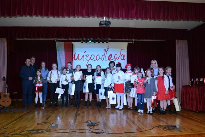 W dniu 6 listopada 2019 r. w Młodzieżowym Domu Kultury odbył się Konkurs Piosenki Patriotycznej „Z pieśnią do Niepodległości”, którego współorganizatorem był przemyski Oddział Związku Sybiraków. Konkurs został zrealizowany w ramach Programu Dotacyjnego „Niepodległa”, z projektu „Przez Sybir do Niepodległej”. Łącznie w konkursie wzięło udział 28 uczestników ze szkół Przemyśla, jak i z powiatu przemyskiego. Dla Młodzieżowego Domu Kultury była to już czwarta edycja tego konkursu. Wyniki konkursu są następujące: – kategoria klasy 1–3 szkół podstawowych: I miejsce – Tymon Baran z Zespołu Szkół w Żurawicy, II miejsce – Zofia Fugowska ze Szkoły Podstawowej nr 15 w Przemyślu, III miejsce – Julia Szychulska z Zespołu Szkół w Żurawicy; – kategoria klasy 4–6 szkół podstawowych: I miejsce – Maja Radochońska ze Szkoły Podstawowej w Buszkowicach, II miejsce – Faustyna Szydłowska ze Szkoły Podstawowej Stowarzyszenia Absolwentów I LO w Przemyślu, III miejsce – Karol Fugowski ze Szkoły Podstawowej nr 15 w Przemyślu; – kategoria klasy 7–8 szkół podstawowych i szkoły ponadpodstawowe: I miejsce – Aleksandra Kostkiewicz z Zespołu Szkół Hotelarskich i Gastronomicznych w Przemyślu, II miejsce – Aleksandra Kościak ze Szkoły Podstawowej w Niziach, III miejsce – Ksawery Szydłowski ze Szkoły Podstawowej Stowarzyszenia Absolwentów I LO w Przemyślu. Dziękujemy nauczycielom za przygotowanie uczniów oraz wszystkim za udział. Gratulujemy zwycięzcom. Konkurs Piosenki Patriotycznej „Z pieśnią do Niepodległości” Uczestnicy i laureaci konkursu Wręczenie nagród (od lewej): Tomasz Tereszak, prezes Zarządu Oddziału ZS w Przemyślu Stanisława Żak, dyrektor MDK Stanisław Karszyń, Agnieszka Kłos Uczestnicy konkursu w kategorii klasy 7–8 szkół podstawowych i szkoły ponadpodstawowe Autor: Marian Boczar, sekretarz Zarządu Oddziału ZS w Przemyślu Przeczytano 86 Nawigacja wpisu Konkurs plastyczny „Przez Sybir do Niepodległej” Uroczyste obchody Święta Niepodległości w Szkole Podstawowej nr 16 w Legnicy