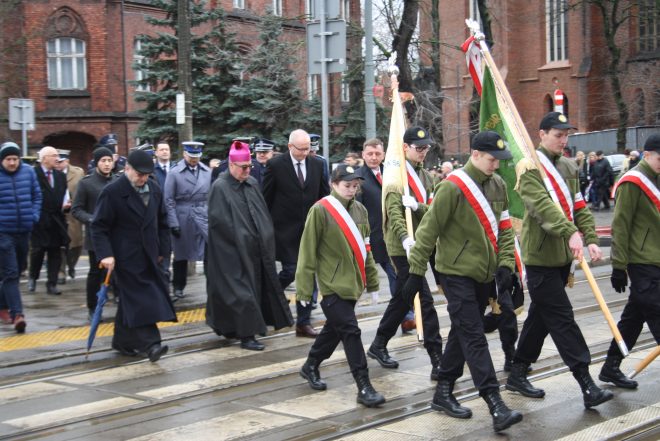 Dla upamiętnienia tej rocznicy w Poznaniu postanowiliśmy nadać jej bardzo uroczysty charakter. Przy ogromnej pomocy w przygotowaniach wojewody wielkopolskiego Łukasza Mikołajczyka zaprosiliśmy do wzięcia udziału dostojników Kościoła katolickiego oraz prawosławnego, jak i przedstawicieli Związku Gmin Wyznaniowych Żydowskich, a także Muzułmańskiego Centrum Kulturalno-Oświatowego. Do zaproszonych gości należeli reprezentanci marszałka województwa wielkopolskiego, prezydenta miasta Poznania, starosty powiatu poznańskiego, Rady Miasta Poznania, organizacji kombatanckich, różnych formacji Wojska Polskiego oraz Wydziału Oświaty i Kuratorium. Uroczystości w dniu 10 lutego 2020 r. rozpoczęły się mszą świętą w kościele Najświętszego Zbawiciela, którą poprowadził ks. bp Szymon Stułkowski w asyście kapelana wielkopolskich Sybiraków ks. Marka Balcera oraz chyba najstarszego czynnego księdza Sybiraka (ukończył 90 lat) Romana Pioterka. Ucieszył nas fakt, że wszyscy zaproszeni goście wzięli udział w uroczystości, a szczególnie cieszyła obecność dużej liczby (około 50 osób) młodzieży z poznańskich szkół ze sztandarami. Wydawało się, że pogoda (okropna) pokrzyżuje plany, ale nikt nas nie zawiódł. Chcąc zminimalizować pobyt uczestników na zewnątrz ze względu na deszcz i silny wiatr, przemówienia zostały wygłoszone w kościele po zakończeniu mszy świętej. Wojewoda wielkopolski Łukasz Mikołajczyk odczytał list minister rodziny, pracy i polityki społecznej Marleny Maląg. Prezes Zarządu Oddziału Związku Sybiraków w Poznaniu Marek Macutkiewicz przypomniał o warunkach panujących w dniu 10 lutego 1940 r. i tragicznej, usianej krzyżami, drodze na Sybir. Żyją jeszcze Sybiracy z tamtego okresu, ale ze względu na wiek coraz częściej mówimy, że niedługo wymrzemy jak dinozaury. Z tych względów bardzo ważna była obecność młodzieży, w pamięci której pozostanie pamięć o Sybirakach. „Dziś młodzi Polacy nie muszą narażać swego życia i umierać. Dziś muszą żyć, uczyć się i pracować z nadzieją na lepsze jutro. Z nadzieją, gdyż ten kto ją traci, usycha niczym skoszona trawa. Chciałbym – podkreślił Marek Macutkiewicz – by dzisiejsza uroczystość pozostała w waszej, młodzi, świadomości o przeszłości naszego narodu. Im bardziej będziecie tego świadomi, tym bardziej nie pozwolicie wyzuć się z polskiej tożsamości”. Dalszy ciąg uroczystości odbył się przy pomniku Ofiar Katynia i Sybiru. Przedstawiciele czterech religii odmówili modlitwy za zmarłych na „nieludzkiej ziemi”. Następnie został odegrany Hymn Sybiraków. Przy mikrofonach śpiewali, wtórując odtwarzanemu przez głośniki hymnowi, dwie licealistki oraz prezes Zarządu Oddziału Związku Sybiraków. Na zakończenie przystąpiono do składania kwiatów przez liczne delegacje. Na prośbę prezesa Marka Macutkiewicza, który mocno zaakcentował cierpienia cichych bohaterek – matek Sybiraków i zamordowanych w Katyniu oficerów, znicze zostały postawione przed tablicą poświęconą właśnie tym matkom. Poczty sztandarowe biorące udział w uroczystości 80. rocznicy pierwszej masowej zsyłki Polaków na Sybir Sztandar poznańskiego Oddziału Związku Sybiraków przy ołtarzu w kościele Przedstawiciele formacji wojskowych Przemawia prezes Marek Macutkiewicz Przemawia wojewoda wielkopolski Łukasz Mikołajczyk Wojewoda (pośrodku), jego zastępca (z lewej), prezes Marek Macutkiewicz Od lewej: ks. prałat Leonard Poloch (gospodarz kościoła), Sybirak ks. Pioterek, bp Szymon Stułkowski, kapelan Sybiraków ks. Marek Balcer, wikary towarzyszący Sybiraczka Liczny udział wzięła młodzież Szykujemy się do przemarszu pod pomnik Ofiar Katynia i Sybiru Ruszamy pod pomnik Biskup w towarzystwie wojewody i kapelana Sybiraków Uroczystości przy pomniku Modlitwa przedstawicieli czterech religii Towarzyszymy przy śpiewaniu Hymnu Sybiraków Kwiaty składa również przedstawiciele Towarzystwa Miłośników Wilna Kończmy bo jest zimno, ale nie dla Sybiraków Autor: Marek Macutkiewicz, prezes Zarządu Oddziału ZS w Poznaniu Przeczytano 201 Nawigacja wpisu Centralna uroczystość 80. rocznicy pierwszej masowej deportacji obywateli polskich w głąb ZSRR Lekcja historii w Związku Emerytów, Rencistów i Inwalidów w Przemyślu