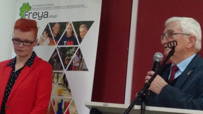 W dniu 5 lutego 2020 r. w Liceum Ogólnokształcącym nr XV we Wrocławiu odbyła się konferencja „W 80. rocznicę pierwszych zesłań Polaków na Syberię”, zorganizowana przez Fundację Freya i LO nr XV. Z Sybiraków udział wzięli: Ryszard Janosz, Roman Janik, Włodzimierz Kowalczyk, Edward Drużyłowski i Antoni Tunkiewicz. Po powitaniu przez dyrektor LO Bogumiłę Mandat i prezes Fundacji Freya Małgorzatę Czaicką-Moryń, dolnośląski kurator oświaty Roman Kowalczyk wygłosił wstęp do tematu konferencji. Historię zesłań przedstawił przedstawiciel IPN dr Andrzej Olejniczak. Głos zabrał także wiceprezes Zarządu Oddziału Związku Sybiraków we Wrocławiu Ryszard Janosz. Zaprezentowany został film o zesłaniu wiceprezesa Zarządu Oddziału ZS Włodzimierza Kowalczyka, który opowiadał o swoim zesłaniu. Następnie w czterech klasach odbyło się spotkanie z uczniami. Mnie wypadło spotkane z klasą ósmą. Na bazie naszej historii przekazałem osobiste wspomnienia z okresu 25 marca 1949–12 grudnia 1955 r. Po podziękowaniu i wręczeniu kwiatów zakończyliśmy spotkanie. Było to miłe i pouczające spotkanie. Takie spotkania są potrzebne. Młodzież „pragnie” historii naszej ojczyzny, bez względu na to, jaką przyjmiemy formę przekazu (my – mówimy, oni – słuchają czy też oni zadają pytania, my – odpowiadamy). Uczestnikami konferencji byli uczniowie wrocławskich szkół ponadpodstawowych Sybiracy Edward Drużyłowski (w pierwszym rzędzie), Ryszard Janosz (drugi z lewej w drugim rzędzie) i Roman Janik (czwarty z lewej) Dyrektor Bogumiła Mandat (z prawej) i prezes Fundacji Freya Małgorzata Czaicka-Moryń Przedstawiciel IPN dr Andrzej Olejniczak Prezes Małgorzata Czaicka-Moryń przedstawiła działalność Fundacji Freya w Ałtajskim Kraju (m.in. poszukiwanie cmentarzy i budowę kościoła) Głos zabrał wiceprezes Zarządu Oddziału Związku Sybiraków we Wrocławiu Ryszard Janosz Autor: Antoni Tunkiewicz Przeczytano 37 Nawigacja wpisu Podpisanie porozumienia pomiędzy Szkołą Podstawową im. Orląt Lwowskich w Gorzowie Wielkopolskim a Oddziałem Związku Sybiraków w Gorzowie Wielkopolskim Obchody 80. rocznicy wywózki Polaków na Syberię w Wałbrzychu