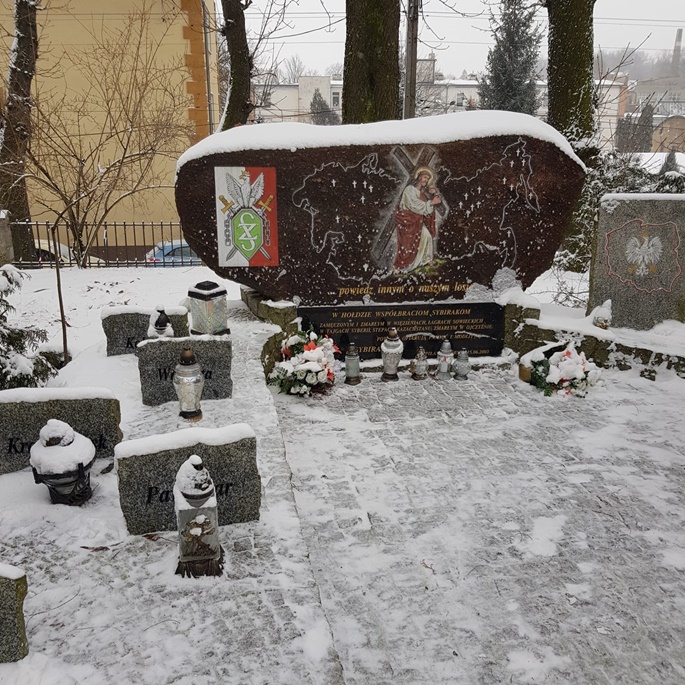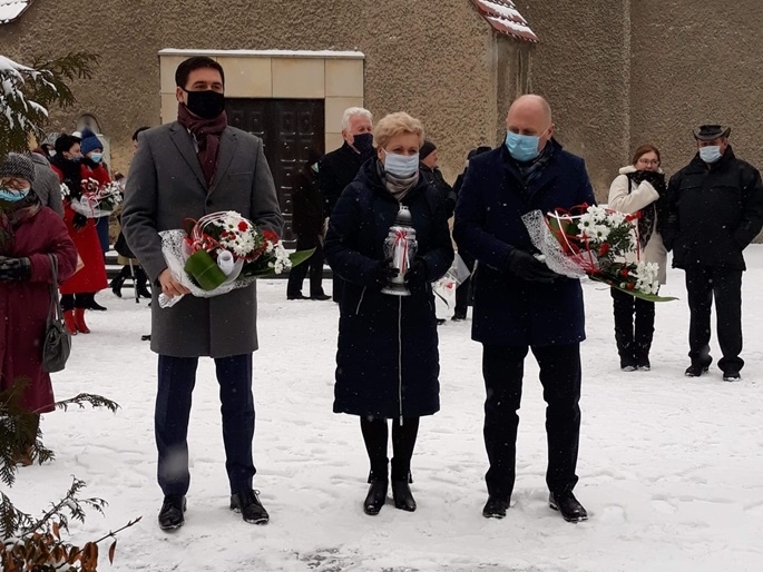 W nieco okrojonej formule, lecz z zaangażowaniem mieszkańców, Piława Górna w dniu 9 lutego 2021 r. obchodziła 81. rocznicę pierwszej deportacji Polaków na Sybir. Uroczystości rozpoczęły się sumą w miejscowym kościele. Podczas homilii proboszcz parafii pw. św. Marcina przypomniał losy Polaków zesłanych na Syberię. Podczas pierwszej deportacji 10 lutego 1940 roku NKWD wywiozło blisko 140 tys. mieszkańców wschodnich rubieży kraju – głównie rodziny wojskowych, urzędników, pracowników służby leśnej i kolei. Wielu transportowanych w bydlęcych wagonach umarło już w drodze. Tysiące nigdy nie wróciły do Polski. Ksiądz Krzysztof Cora zaapelował o pamięć dla wszystkich, którzy ginęli z zimna i wycieńczenia katorżniczą pracą na nieludzkiej ziemi. O sybirakach żyjących wśród nas opowiadał jako o świadectwie okrucieństw totalitarnego systemu. Punktem kulminacyjnym obchodów, zainaugurowanych w kościele, było zapalenie zniczy i złożenie kwiatów pod pomnikiem* naprzeciwko wejścia do świątyni. Oprócz przedstawicieli miejskiego samorządu, duchowieństwa i lokalnych placówek kulturalno-oświatowych w uroczystości wziął też udział Eugeniusz Kuszka Sekretarz Generalny Związku Sybiraków i Prezes Oddziału we Wrocławiu. Pomnik Sybiraków. Ustawiony 15 czerwca 2003 roku. Składa się z 3 elementów. W centralnej części znajduje się płyta główna umieszczona na podstawie, na której widnieje godło Związku Sybiraków, wizerunek Chrystusa niosącego krzyż na tle zarysu mapy ZSRR z napisem „Powiedz innym o naszym losie”. Na podstawie znajduje się napis: „W HOŁDZIE WSPÓŁBRACIOM SYBIRAKOM – ZAMĘCZONYM W WIĘZIENIACH, ŁAGRACH SOWIECKICH, W TAJGACH SYBERII, STEPACH KAŁKAZU, ZMARŁYM W OJCZYŹNIE – POTOMNI OFIARUJĄ PAMIĘĆ I MODLITWĘ”. Po prawej stronie obelisku została umieszczona kamienna płyta z zarysem mapy Polski i wizerunek orła w koronie. Po lewej zostały wypisane na kamiennych płytach nazwy miejscowości – miejsca zesłań i śmierci Polaków. Od prawej: Burmistrz Piławy Górnej Krzysztof Chudyk, Zastępca Burmistrza Marta Sochacka-Pelczar, Przewodniczący Rady Miejskiej Dariusz Madejski Sekretarz Generalny Związku Sybiraków Eugeniusz Kuszka pod pomnikiem Pomnik Sybiraków w Piławie Górnej Przeczytano 80 Nawigacja wpisu Sybiracy u Żołnierzy 1 Batalionu Czołgów w Żurawicy Wałbrzych pamięta. 81. rocznica pierwszej deportacji.