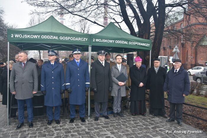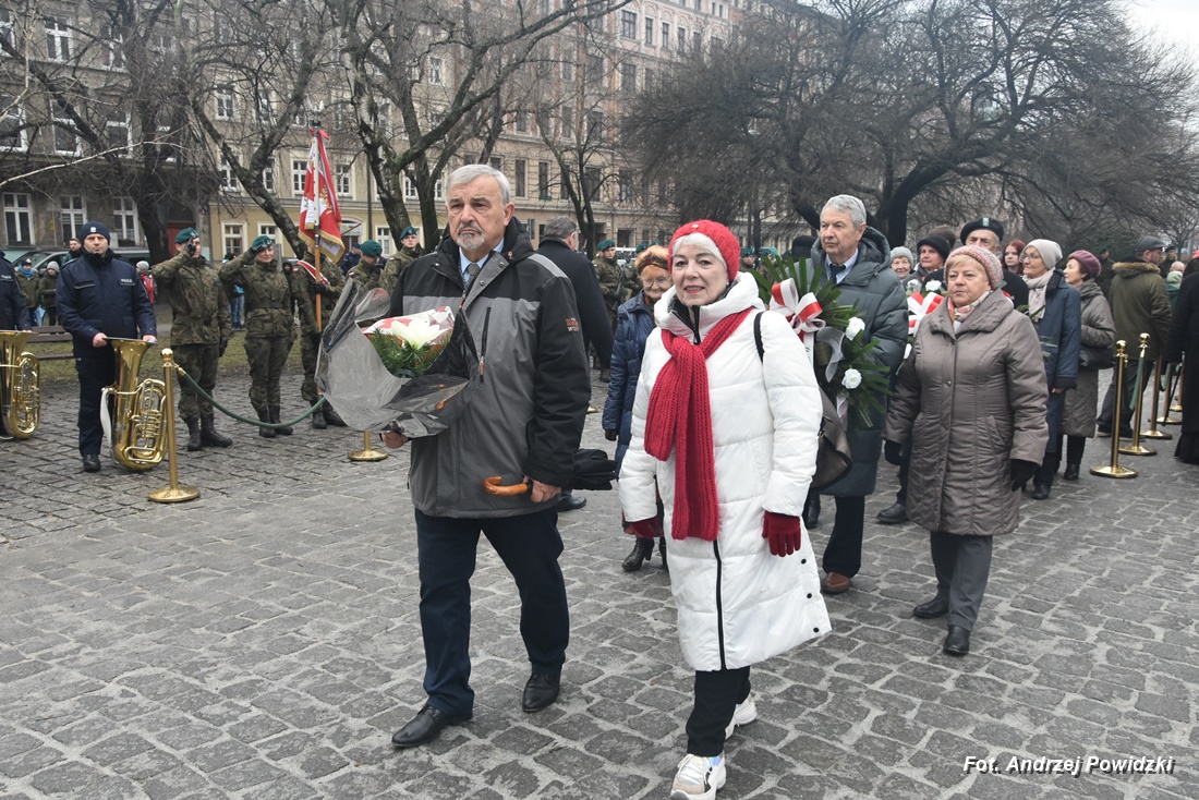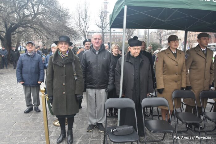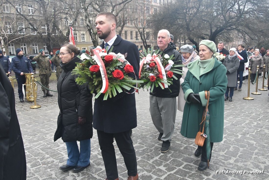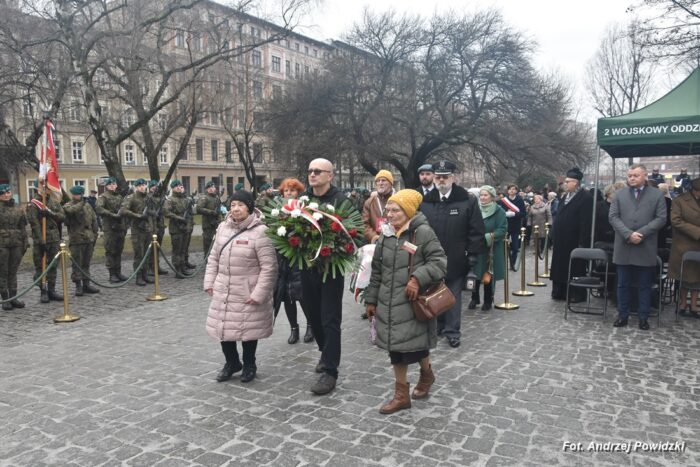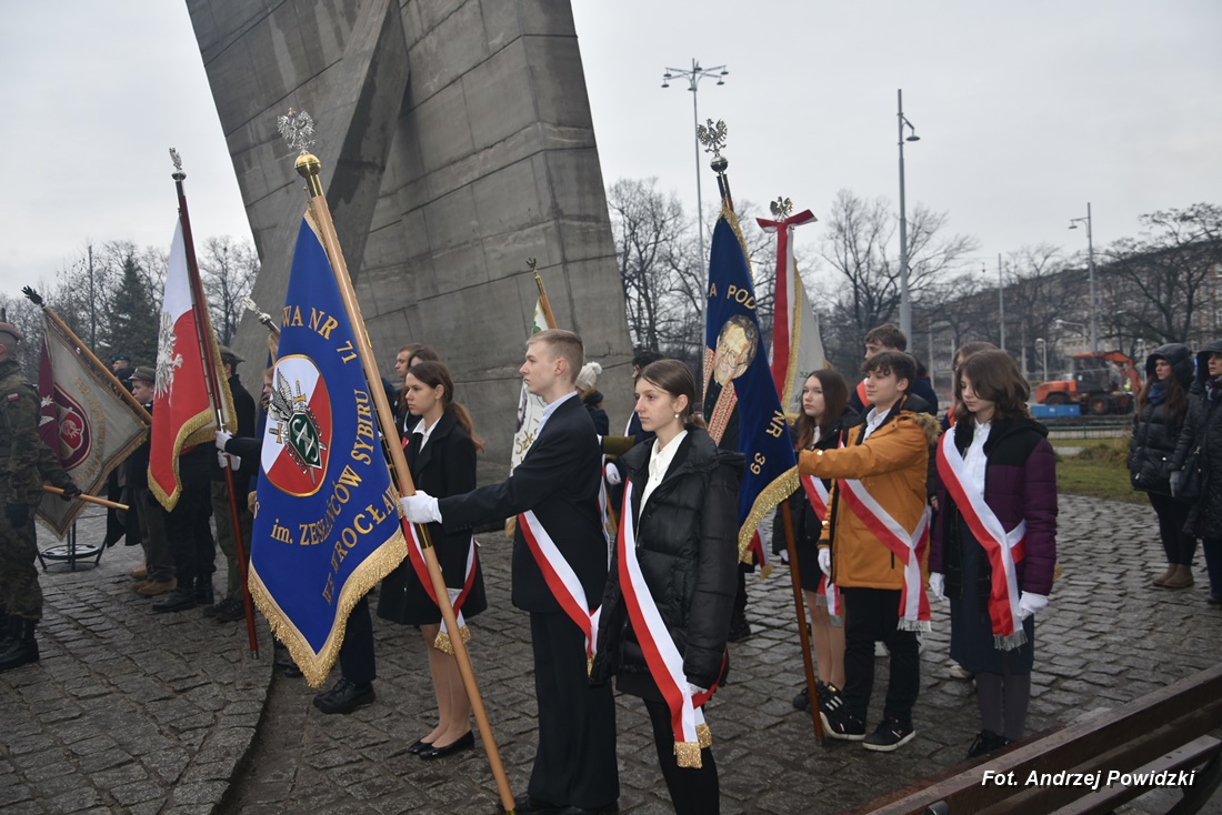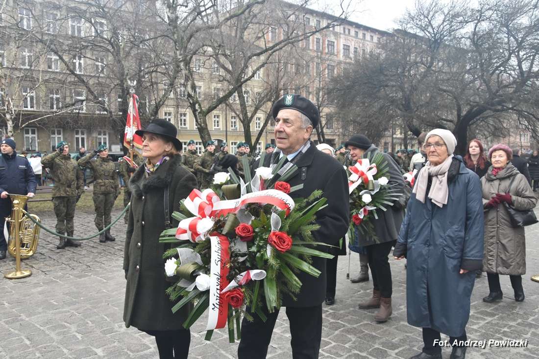 W piątek, 09 lutego 2024 roku we Wrocławiu odbyła się oficjalna uroczystość upamiętniająca 84. rocznicę pierwszej masowej wywózki Polaków na Sybir. Wydarzenie miało miejsce w kościele parafialnym pod wezwaniem św. Bonifacego znajdującym się przy placu ks. Stanisława Staszica na osiedlu Nadodrze i rozpoczęło się Mszą św. w intencji Sybiraków. Po mszy, przed pomnikiem Zesłańcom Sybiru oddano hołd wszystkim zesłańcom i ofiarom wywózki na Sybir podczas II wojny światowej. Uroczystość patriotyczno-religijną uświetnili żołnierze Akademii Wojsk Lądowych z Wrocławia, którzy stanowili wojskową asystę honorową. Oprawę muzyczną zapewniła Orkiestra Komendy Wojewódzkiej Policji we Wrocławiu. W uroczystości oprócz wojskowego pocztu sztandarowego uczestniczyło osiem pocztów sztandarowych m.in.: Związku Sybiraków z asystą harcerzy z Dolnośląskiej Chorągwi Harcerzy ZHR; Światowego Związku Żołnierzy Armii Krajowej – Okręg Wrocławski z asystą żołnierzy 16. Dolnośląskiej Brygady Obrony Terytorialnej i inne. Uroczystość patriotyczno-religijna odbyła się z inicjatywy Zarządu Oddziału Wrocławskiego Związku Sybiraków przy współpracy z proboszczem parafii pw. św. Bonifacego ks. dr Jerzym Żytowieckim oraz opiekunami duchowymi wrocławskich Sybiraków ks. prof. dr hab. Franciszkiem Głód i ks. Wojciechem Tokarzewskim. Uroczystość zgromadziła nie tylko pokolenia określane dziś mianem Zesłańców Sybiru i wiernych parafii, ale także przedstawicieli władz rządowych i samorządowych księży, żołnierzy WP garnizonu wrocławskiego, nauczycieli, uczniów i harcerzy. Do kościoła przybyła liczna grupa pokolenia Zesłańców Sybiru, mieszkańcy Wrocławia oraz zaproszeni Goście m.in: metropolita wrocławski arcybiskup Józef Kupny; wicewojewoda dolnośląski Piotr Sebastian Kozdrowicki; przedstawiciel Urzędu Marszałkowskiego Województwa Dolnośląskiego Paweł Aszkiełowicz; przedstawicielka Prezydenta Miasta Wrocław Dorota Ciastek; dyrektor Oddziału Instytutu Pamięci Narodowej we Wrocławiu Kamil Dworczak; Dolnośląski Kurator Oświaty Ewa Skrzywanek; dyrektor Ośrodka „Pamięć i Przyszłość” Andrzej Jerie, przedstawiciele władz samorządowych i delegacje powiatu wrocławskiego.Grupa oficerów WP, w tym m.in.: dowódca Garnizonu Wrocław, dowódca 16. Dolnośląskiej Brygady Obrony Terytorialnej, prezes ZG Związku Weteranów i Rezerwistów WP RP we Wrocławiu oraz przedstawiciel komendanta Akademii Wojsk Lądowych we Wrocławiu i Wojskowego Centrum Rekrutacji, a także komendant Wojewódzki Policji i komendant Miejski Policji we Wrocławiu. Przedstawiciele: Związku Sybiraków na czele z prezesem Ryszardem Janosz; Stowarzyszenia Pamięci Ofiar Sybiru z prezesem Antoniną Kużaj; Stowarzyszenia Dolnośląskich Rodzin Katyńskich; przedstawiciele Szkoły Podstawowej Nr 71 im. Zesłańców Sybiru i Szkoły Podstawowej Nr 73 im. Generała Władysława Andersa; Zespołu Szkół Zawodowych im. Zesłańców Sybiru i Zespołu Szkół Ekonomiczno-Administracyjnych we Wrocławiu. Zgromadzonych z życzliwością powitał proboszcz parafii pw. św. Bonifacego ks. dr Jerzy Żytowiecki. Modlitwę poprowadził arcybiskup Józef Kupny, metropolita wrocławski. Po mszy, wojskowa asysta honorowa, poczty sztandarowe i uczestnicy wydarzenia przemaszerowali na znajdujący się w pobliżu Skwer Sybiraków przy pl. Strzeleckim, gdzie przed pomnikiem Zesłańcom Sybiru oddano hołd Sybirakom. Odegrano i zaśpiewano hymn państwowy Rzeczypospolitej Polskiej, po nim były wystąpienia okolicznościowe: prezesa Koła Związku Sybiraków Fabryczna pana Antoniego Tunkiewicza, który również odczytał list od szefa Urzędu do Spraw Kombatantów i osób Represjonowanych pana Jana Józefa Kasprzyka skierowany do prezesa Zarządu Oddziału Wrocław Związku Sybiraków pana Ryszarda Janosza; wicewojewody Województwa Dolnośląskiego pana Piotra Sebastiana Kozdrowickiego; Dolnośląskiego Kuratora Oświaty pani Ewy Skrzywanek; dyrektora Oddziału Instytutu Pamięci Narodowej pana Kamila Dworczaka oraz dyrektora Ośrodka „Pamięć i Przyszłość” pana Andrzeja Jerie. Po wystąpieniach, wicewojewoda pan Piotr Sebastian Kozdrowicki dokonał aktu dekoracji odznaczeniami przyznanymi za wybitne zasługi w działalności społeczno-kombatanckiej oraz za popularyzowanie wiedzy o martyrologii Polaków na Wschodzie. Odznaczeni zostali: Srebrnym Krzyżem Zasługi pani Antonina Kużaj, a Medalem Pamiątkowym „95-lecia Powstania Związku Sybiraków”: arcybiskup Józef Kupny, płk Marek Brzezicha, gen. Piotr Płonka, pani Ewa Nadzieja, pan Tytus Czartoryski i pan Paweł Aszkiełowicz. Kapelan wrocławskich Sybiraków ks. prof. dr hab. Franciszek Głód poprowadził modlitwę ekumeniczną, a po modlitwie podpułkownik Tomasz Słotwiński poprowadził Apel Pamięci, zakończony salwą honorową dla uczczenia 84. rocznicy pierwszej masowej wywózki Polaków na Sybir. Po salwie i sygnale „Hasło Wojska Polskiego”, werblista grał „Tremolo”, a przy pomniku Zesłańcom Sybiru, delegacje składały wiązanki kwiatów i zapalano znicze pamięci. Uroczystość zakończyły, zagrany przez trębacza sygnał „Cisza” i utwór okolicznościowy „Pieśń Reprezentacyjna Wojska Polskiego” zagrany przez orkiestrę oraz Hymn Sybiraków odtworzony audio i śpiewany przez uczestników wydarzenia. Opracował: Andrzej Powidzki Przeczytano 77 Nawigacja wpisu 30-ta rocznica nadania imienia Sybiraków Szkole Podstawowej w Netcie Obchody 84. rocznicy pierwszych deportacji Polaków na Sybir w Toruniu