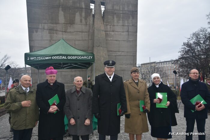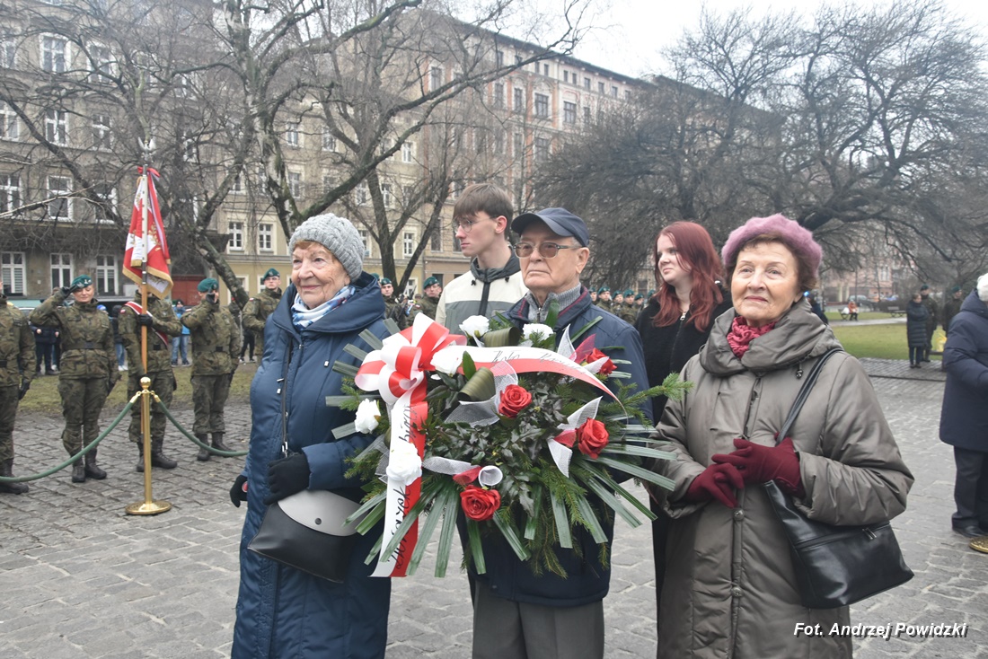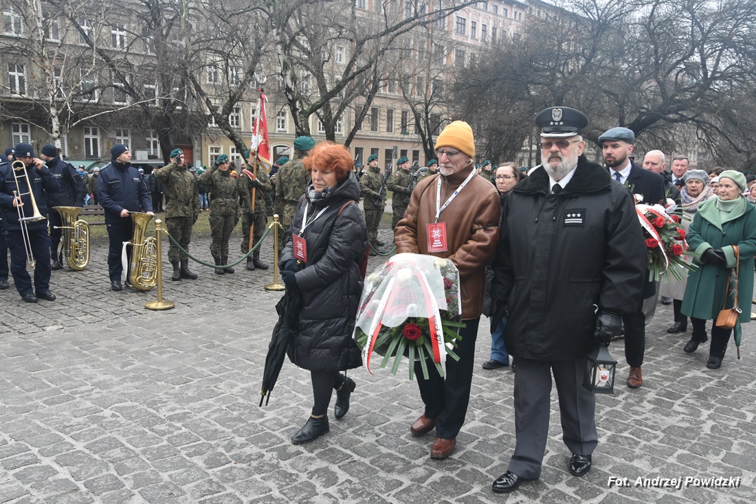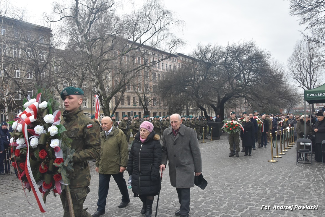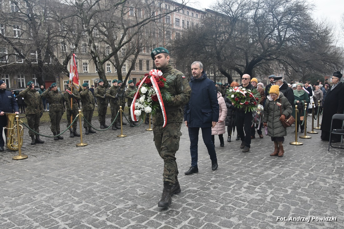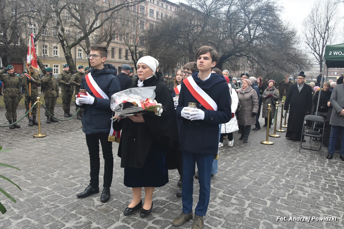 W piątek, 09 lutego 2024 roku we Wrocławiu odbyła się oficjalna uroczystość upamiętniająca 84. rocznicę pierwszej masowej wywózki Polaków na Sybir. Wydarzenie miało miejsce w kościele parafialnym pod wezwaniem św. Bonifacego znajdującym się przy placu ks. Stanisława Staszica na osiedlu Nadodrze i rozpoczęło się Mszą św. w intencji Sybiraków. Po mszy, przed pomnikiem Zesłańcom Sybiru oddano hołd wszystkim zesłańcom i ofiarom wywózki na Sybir podczas II wojny światowej. Uroczystość patriotyczno-religijną uświetnili żołnierze Akademii Wojsk Lądowych z Wrocławia, którzy stanowili wojskową asystę honorową. Oprawę muzyczną zapewniła Orkiestra Komendy Wojewódzkiej Policji we Wrocławiu. W uroczystości oprócz wojskowego pocztu sztandarowego uczestniczyło osiem pocztów sztandarowych m.in.: Związku Sybiraków z asystą harcerzy z Dolnośląskiej Chorągwi Harcerzy ZHR; Światowego Związku Żołnierzy Armii Krajowej – Okręg Wrocławski z asystą żołnierzy 16. Dolnośląskiej Brygady Obrony Terytorialnej i inne. Uroczystość patriotyczno-religijna odbyła się z inicjatywy Zarządu Oddziału Wrocławskiego Związku Sybiraków przy współpracy z proboszczem parafii pw. św. Bonifacego ks. dr Jerzym Żytowieckim oraz opiekunami duchowymi wrocławskich Sybiraków ks. prof. dr hab. Franciszkiem Głód i ks. Wojciechem Tokarzewskim. Uroczystość zgromadziła nie tylko pokolenia określane dziś mianem Zesłańców Sybiru i wiernych parafii, ale także przedstawicieli władz rządowych i samorządowych księży, żołnierzy WP garnizonu wrocławskiego, nauczycieli, uczniów i harcerzy. Do kościoła przybyła liczna grupa pokolenia Zesłańców Sybiru, mieszkańcy Wrocławia oraz zaproszeni Goście m.in: metropolita wrocławski arcybiskup Józef Kupny; wicewojewoda dolnośląski Piotr Sebastian Kozdrowicki; przedstawiciel Urzędu Marszałkowskiego Województwa Dolnośląskiego Paweł Aszkiełowicz; przedstawicielka Prezydenta Miasta Wrocław Dorota Ciastek; dyrektor Oddziału Instytutu Pamięci Narodowej we Wrocławiu Kamil Dworczak; Dolnośląski Kurator Oświaty Ewa Skrzywanek; dyrektor Ośrodka „Pamięć i Przyszłość” Andrzej Jerie, przedstawiciele władz samorządowych i delegacje powiatu wrocławskiego.Grupa oficerów WP, w tym m.in.: dowódca Garnizonu Wrocław, dowódca 16. Dolnośląskiej Brygady Obrony Terytorialnej, prezes ZG Związku Weteranów i Rezerwistów WP RP we Wrocławiu oraz przedstawiciel komendanta Akademii Wojsk Lądowych we Wrocławiu i Wojskowego Centrum Rekrutacji, a także komendant Wojewódzki Policji i komendant Miejski Policji we Wrocławiu. Przedstawiciele: Związku Sybiraków na czele z prezesem Ryszardem Janosz; Stowarzyszenia Pamięci Ofiar Sybiru z prezesem Antoniną Kużaj; Stowarzyszenia Dolnośląskich Rodzin Katyńskich; przedstawiciele Szkoły Podstawowej Nr 71 im. Zesłańców Sybiru i Szkoły Podstawowej Nr 73 im. Generała Władysława Andersa; Zespołu Szkół Zawodowych im. Zesłańców Sybiru i Zespołu Szkół Ekonomiczno-Administracyjnych we Wrocławiu. Zgromadzonych z życzliwością powitał proboszcz parafii pw. św. Bonifacego ks. dr Jerzy Żytowiecki. Modlitwę poprowadził arcybiskup Józef Kupny, metropolita wrocławski. Po mszy, wojskowa asysta honorowa, poczty sztandarowe i uczestnicy wydarzenia przemaszerowali na znajdujący się w pobliżu Skwer Sybiraków przy pl. Strzeleckim, gdzie przed pomnikiem Zesłańcom Sybiru oddano hołd Sybirakom. Odegrano i zaśpiewano hymn państwowy Rzeczypospolitej Polskiej, po nim były wystąpienia okolicznościowe: prezesa Koła Związku Sybiraków Fabryczna pana Antoniego Tunkiewicza, który również odczytał list od szefa Urzędu do Spraw Kombatantów i osób Represjonowanych pana Jana Józefa Kasprzyka skierowany do prezesa Zarządu Oddziału Wrocław Związku Sybiraków pana Ryszarda Janosza; wicewojewody Województwa Dolnośląskiego pana Piotra Sebastiana Kozdrowickiego; Dolnośląskiego Kuratora Oświaty pani Ewy Skrzywanek; dyrektora Oddziału Instytutu Pamięci Narodowej pana Kamila Dworczaka oraz dyrektora Ośrodka „Pamięć i Przyszłość” pana Andrzeja Jerie. Po wystąpieniach, wicewojewoda pan Piotr Sebastian Kozdrowicki dokonał aktu dekoracji odznaczeniami przyznanymi za wybitne zasługi w działalności społeczno-kombatanckiej oraz za popularyzowanie wiedzy o martyrologii Polaków na Wschodzie. Odznaczeni zostali: Srebrnym Krzyżem Zasługi pani Antonina Kużaj, a Medalem Pamiątkowym „95-lecia Powstania Związku Sybiraków”: arcybiskup Józef Kupny, płk Marek Brzezicha, gen. Piotr Płonka, pani Ewa Nadzieja, pan Tytus Czartoryski i pan Paweł Aszkiełowicz. Kapelan wrocławskich Sybiraków ks. prof. dr hab. Franciszek Głód poprowadził modlitwę ekumeniczną, a po modlitwie podpułkownik Tomasz Słotwiński poprowadził Apel Pamięci, zakończony salwą honorową dla uczczenia 84. rocznicy pierwszej masowej wywózki Polaków na Sybir. Po salwie i sygnale „Hasło Wojska Polskiego”, werblista grał „Tremolo”, a przy pomniku Zesłańcom Sybiru, delegacje składały wiązanki kwiatów i zapalano znicze pamięci. Uroczystość zakończyły, zagrany przez trębacza sygnał „Cisza” i utwór okolicznościowy „Pieśń Reprezentacyjna Wojska Polskiego” zagrany przez orkiestrę oraz Hymn Sybiraków odtworzony audio i śpiewany przez uczestników wydarzenia. Opracował: Andrzej Powidzki Przeczytano 77 Nawigacja wpisu 30-ta rocznica nadania imienia Sybiraków Szkole Podstawowej w Netcie Obchody 84. rocznicy pierwszych deportacji Polaków na Sybir w Toruniu