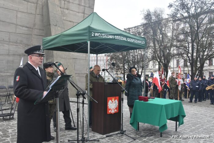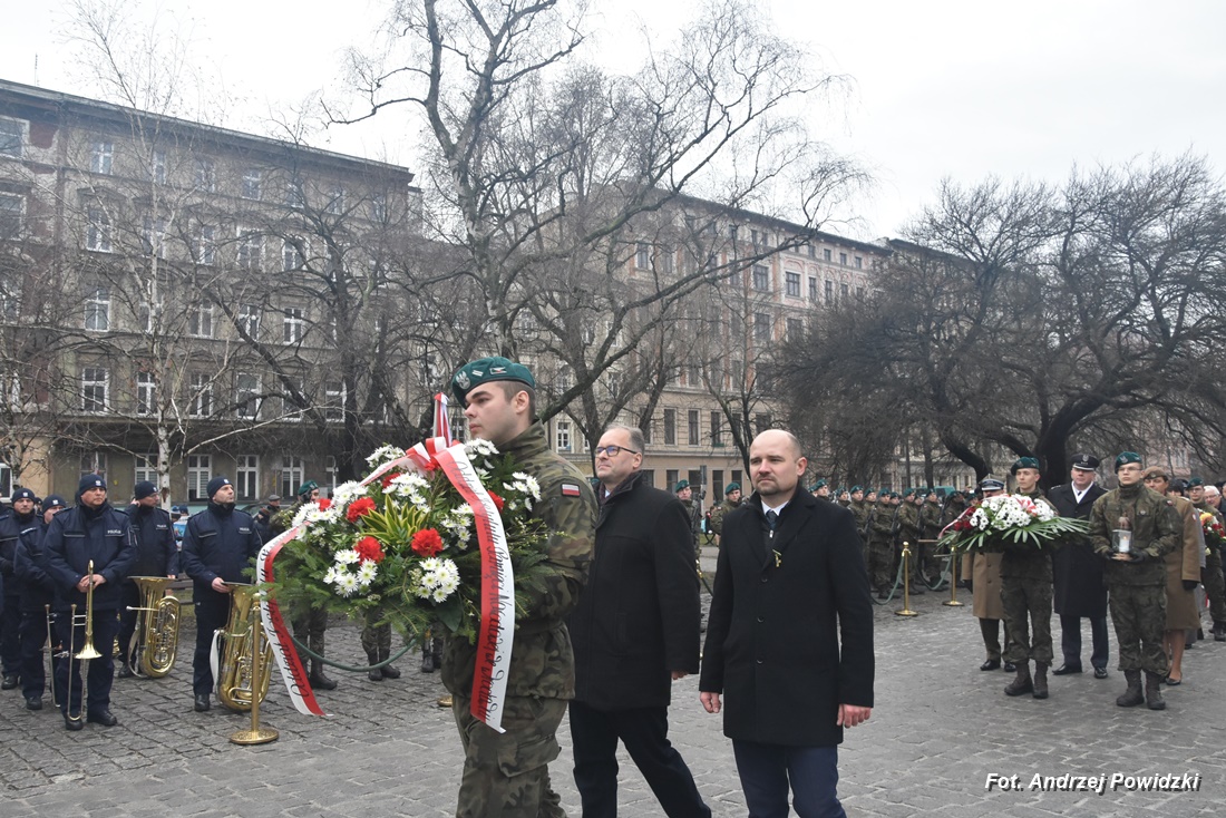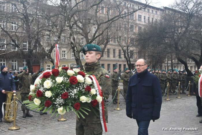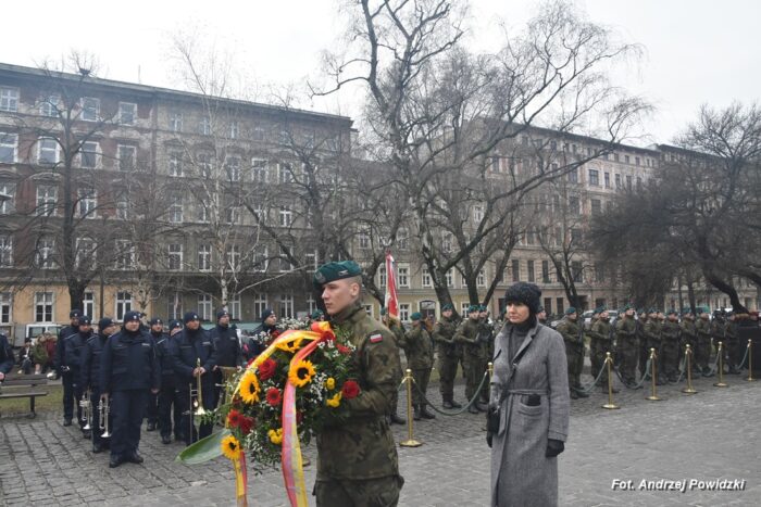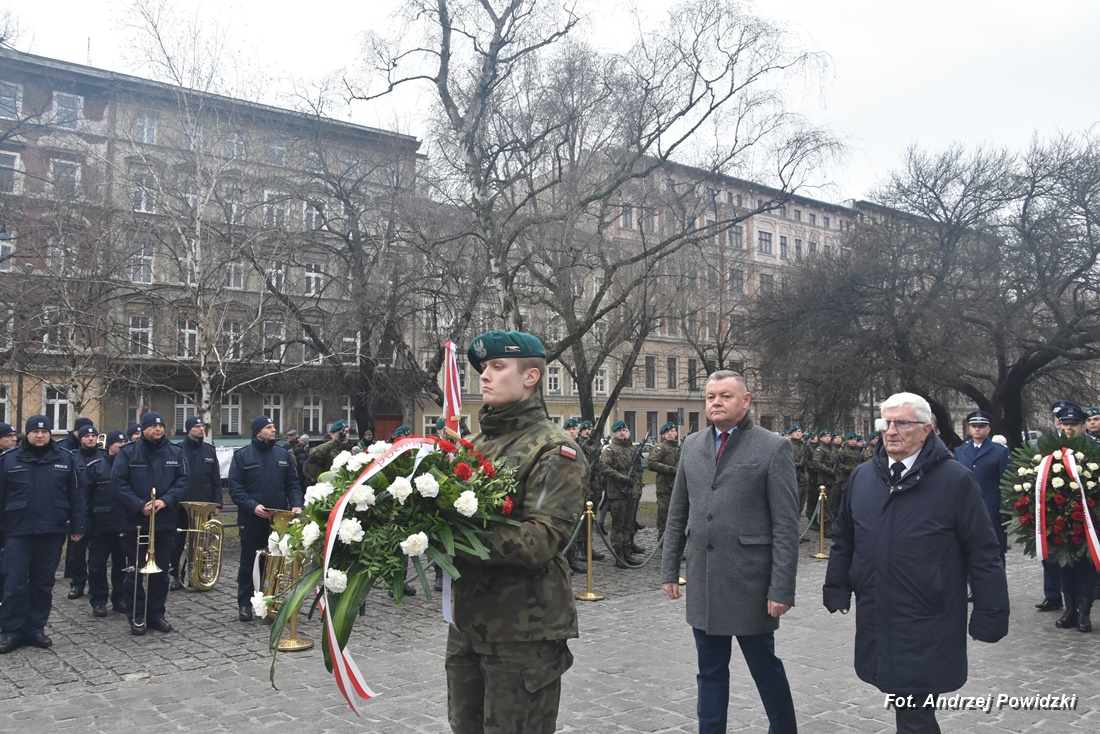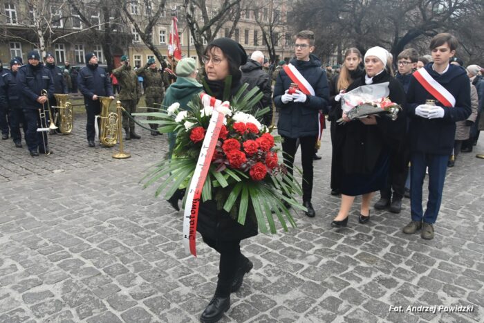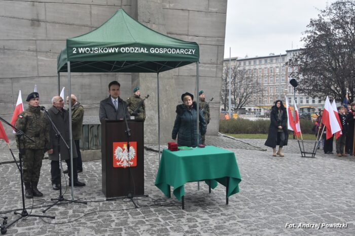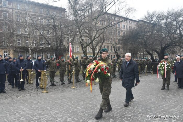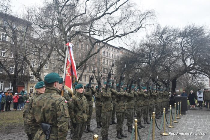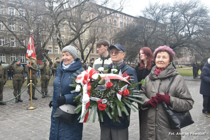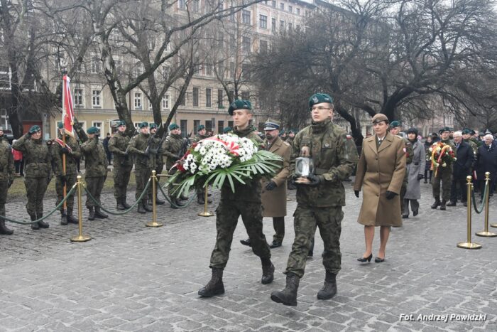 W piątek, 09 lutego 2024 roku we Wrocławiu odbyła się oficjalna uroczystość upamiętniająca 84. rocznicę pierwszej masowej wywózki Polaków na Sybir. Wydarzenie miało miejsce w kościele parafialnym pod wezwaniem św. Bonifacego znajdującym się przy placu ks. Stanisława Staszica na osiedlu Nadodrze i rozpoczęło się Mszą św. w intencji Sybiraków. Po mszy, przed pomnikiem Zesłańcom Sybiru oddano hołd wszystkim zesłańcom i ofiarom wywózki na Sybir podczas II wojny światowej. Uroczystość patriotyczno-religijną uświetnili żołnierze Akademii Wojsk Lądowych z Wrocławia, którzy stanowili wojskową asystę honorową. Oprawę muzyczną zapewniła Orkiestra Komendy Wojewódzkiej Policji we Wrocławiu. W uroczystości oprócz wojskowego pocztu sztandarowego uczestniczyło osiem pocztów sztandarowych m.in.: Związku Sybiraków z asystą harcerzy z Dolnośląskiej Chorągwi Harcerzy ZHR; Światowego Związku Żołnierzy Armii Krajowej – Okręg Wrocławski z asystą żołnierzy 16. Dolnośląskiej Brygady Obrony Terytorialnej i inne. Uroczystość patriotyczno-religijna odbyła się z inicjatywy Zarządu Oddziału Wrocławskiego Związku Sybiraków przy współpracy z proboszczem parafii pw. św. Bonifacego ks. dr Jerzym Żytowieckim oraz opiekunami duchowymi wrocławskich Sybiraków ks. prof. dr hab. Franciszkiem Głód i ks. Wojciechem Tokarzewskim. Uroczystość zgromadziła nie tylko pokolenia określane dziś mianem Zesłańców Sybiru i wiernych parafii, ale także przedstawicieli władz rządowych i samorządowych księży, żołnierzy WP garnizonu wrocławskiego, nauczycieli, uczniów i harcerzy. Do kościoła przybyła liczna grupa pokolenia Zesłańców Sybiru, mieszkańcy Wrocławia oraz zaproszeni Goście m.in: metropolita wrocławski arcybiskup Józef Kupny; wicewojewoda dolnośląski Piotr Sebastian Kozdrowicki; przedstawiciel Urzędu Marszałkowskiego Województwa Dolnośląskiego Paweł Aszkiełowicz; przedstawicielka Prezydenta Miasta Wrocław Dorota Ciastek; dyrektor Oddziału Instytutu Pamięci Narodowej we Wrocławiu Kamil Dworczak; Dolnośląski Kurator Oświaty Ewa Skrzywanek; dyrektor Ośrodka „Pamięć i Przyszłość” Andrzej Jerie, przedstawiciele władz samorządowych i delegacje powiatu wrocławskiego.Grupa oficerów WP, w tym m.in.: dowódca Garnizonu Wrocław, dowódca 16. Dolnośląskiej Brygady Obrony Terytorialnej, prezes ZG Związku Weteranów i Rezerwistów WP RP we Wrocławiu oraz przedstawiciel komendanta Akademii Wojsk Lądowych we Wrocławiu i Wojskowego Centrum Rekrutacji, a także komendant Wojewódzki Policji i komendant Miejski Policji we Wrocławiu. Przedstawiciele: Związku Sybiraków na czele z prezesem Ryszardem Janosz; Stowarzyszenia Pamięci Ofiar Sybiru z prezesem Antoniną Kużaj; Stowarzyszenia Dolnośląskich Rodzin Katyńskich; przedstawiciele Szkoły Podstawowej Nr 71 im. Zesłańców Sybiru i Szkoły Podstawowej Nr 73 im. Generała Władysława Andersa; Zespołu Szkół Zawodowych im. Zesłańców Sybiru i Zespołu Szkół Ekonomiczno-Administracyjnych we Wrocławiu. Zgromadzonych z życzliwością powitał proboszcz parafii pw. św. Bonifacego ks. dr Jerzy Żytowiecki. Modlitwę poprowadził arcybiskup Józef Kupny, metropolita wrocławski. Po mszy, wojskowa asysta honorowa, poczty sztandarowe i uczestnicy wydarzenia przemaszerowali na znajdujący się w pobliżu Skwer Sybiraków przy pl. Strzeleckim, gdzie przed pomnikiem Zesłańcom Sybiru oddano hołd Sybirakom. Odegrano i zaśpiewano hymn państwowy Rzeczypospolitej Polskiej, po nim były wystąpienia okolicznościowe: prezesa Koła Związku Sybiraków Fabryczna pana Antoniego Tunkiewicza, który również odczytał list od szefa Urzędu do Spraw Kombatantów i osób Represjonowanych pana Jana Józefa Kasprzyka skierowany do prezesa Zarządu Oddziału Wrocław Związku Sybiraków pana Ryszarda Janosza; wicewojewody Województwa Dolnośląskiego pana Piotra Sebastiana Kozdrowickiego; Dolnośląskiego Kuratora Oświaty pani Ewy Skrzywanek; dyrektora Oddziału Instytutu Pamięci Narodowej pana Kamila Dworczaka oraz dyrektora Ośrodka „Pamięć i Przyszłość” pana Andrzeja Jerie. Po wystąpieniach, wicewojewoda pan Piotr Sebastian Kozdrowicki dokonał aktu dekoracji odznaczeniami przyznanymi za wybitne zasługi w działalności społeczno-kombatanckiej oraz za popularyzowanie wiedzy o martyrologii Polaków na Wschodzie. Odznaczeni zostali: Srebrnym Krzyżem Zasługi pani Antonina Kużaj, a Medalem Pamiątkowym „95-lecia Powstania Związku Sybiraków”: arcybiskup Józef Kupny, płk Marek Brzezicha, gen. Piotr Płonka, pani Ewa Nadzieja, pan Tytus Czartoryski i pan Paweł Aszkiełowicz. Kapelan wrocławskich Sybiraków ks. prof. dr hab. Franciszek Głód poprowadził modlitwę ekumeniczną, a po modlitwie podpułkownik Tomasz Słotwiński poprowadził Apel Pamięci, zakończony salwą honorową dla uczczenia 84. rocznicy pierwszej masowej wywózki Polaków na Sybir. Po salwie i sygnale „Hasło Wojska Polskiego”, werblista grał „Tremolo”, a przy pomniku Zesłańcom Sybiru, delegacje składały wiązanki kwiatów i zapalano znicze pamięci. Uroczystość zakończyły, zagrany przez trębacza sygnał „Cisza” i utwór okolicznościowy „Pieśń Reprezentacyjna Wojska Polskiego” zagrany przez orkiestrę oraz Hymn Sybiraków odtworzony audio i śpiewany przez uczestników wydarzenia. Opracował: Andrzej Powidzki Przeczytano 77 Nawigacja wpisu 30-ta rocznica nadania imienia Sybiraków Szkole Podstawowej w Netcie Obchody 84. rocznicy pierwszych deportacji Polaków na Sybir w Toruniu