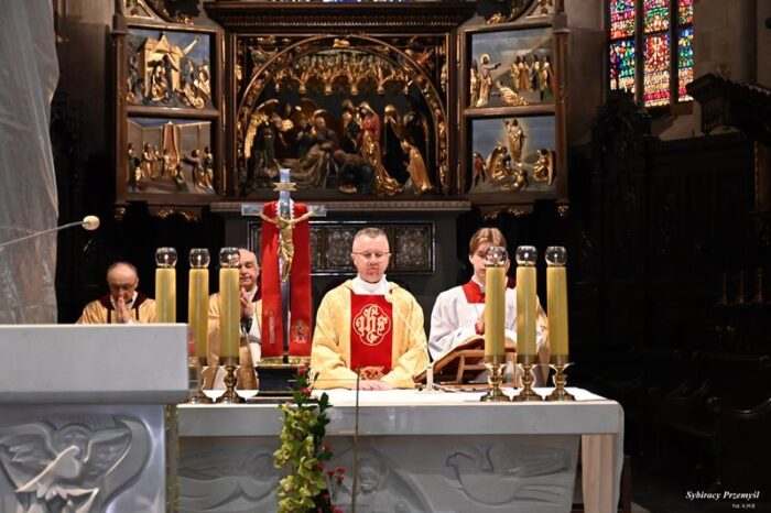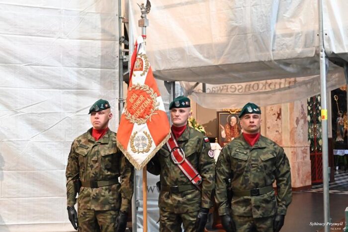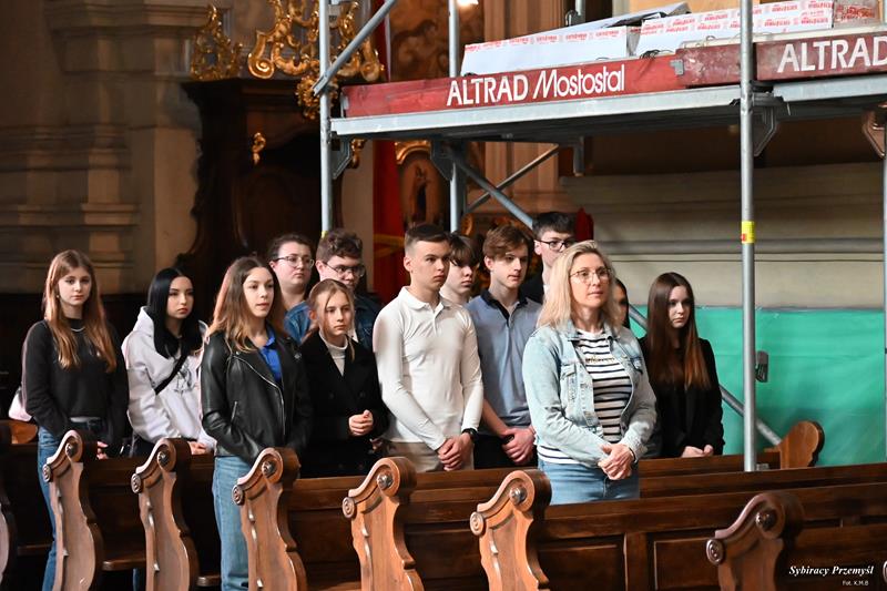 13 kwietnia 1943 r. o zbrodni dokonanej przez Sowietów usłyszał cały świat. Tego dnia Niemcy ogłosili informację o odkryciu w lesie pod Katyniem grobów polskich oficerów. Trzy lata wcześniej, wiosną 1940 r., na mocy decyzji najwyższych władz Związku Sowieckiego zamordowano blisko 22 tys. jeńców wojennych zatrzymanych po wkroczeniu Armii Czerwonej do Polski we wrześniu 1939 r. Byli wśród nich żołnierze Wojska Polskiego, profesorowie, lekarze, prawnicy, inżynierowie. W 2007 r. Sejm RP ustanowił 13 kwietnia Dniem Pamięci Ofiar Zbrodni Katyńskiej. W sobotę, 13 kwietnia br. w Przemyślu odbyły się uroczystości związane z 84. rocznicą Zbrodni Katyńskiej i rocznicą drugiej deportacji Polaków na Sybir i do Kazachstanu. Uroczystość rozpoczęła się od złożenia kwiatów na Cmentarzu Wojskowym w Przemyślu przy Grobie Katyńskim. Następnie w Archikatedrze przemyskiej została odprawiona Msza Św. w intencji Ofiar Zbrodni Katyńskiej, której przewodniczył ks. mjr Włodzimierz Skoczeń a homilię wygłosił ks. płk Władysław Kozicki W homilii kaznodzieja apelował o modlitwę, pamięć historyczną i pielęgnowanie tożsamiści narodowej – Niech nasza modlitwa trwa. Niech nasza Patronka, Królowa Polski i Hetmanka Żołnierza Polskiego, broni nas od złego. A wspominanych dziś pomordowanych niech przygarnie i otoczy płaszczem swojego miłosierdzia. Trzeba mieć otwarte oczy na to co się wokół nas dzieje. Nie będzie wolnego, suwerennego państwa budowanego na nienawiści. Niech Maryja, Ta z Częstochowy, z Ostrej Bramy, katedry Lwowskiej i Ta z katedry przemyskiej, wybłaga nam pokój, zwłaszcza tym, którzy go najbardziej potrzebują – zakończył homilię kaznodzieja. Część patriotyczna odbyła się przy pomniku Zesłańców Sybiru i Ofiar Katynia. Uroczystość rozpoczęła się od odegrania Hymnu Państwowego i modlitwy ekumenicznej odmówionej przez ks. mjr. Władysława Skocznia i ks. ppłk Jerzego Mokrauza – kapelana prawosławnego. Podczas uroczystości głos zabrała Pani Irena Kawka wnuczka zamordowanego w Katyniu Oficera. Następnie przez 5. batalion strzelców podhalańskich został odczytany Apel Poległych i oddana salwa honorowa. Biało-czerwone wiązanki oraz zapalone znicze złożyli uczestnicy uroczystości. Na zakończenie została odegrana pieśń reprezentacyjna Wojska Polskiego. Opracował: Marian Boczar Na zdjęciu: Jadwiga Maszczak, Teresa Staś, Marian Boczar, Stanisława Żak, Krystyna Hańczuk, Andrzej Stawarz Przeczytano 54 Nawigacja wpisu Obchody 84. rocznicy Zbrodni Katyńskiej w Warszawie Lekcje historii w szkołach powiatu przemyskiego