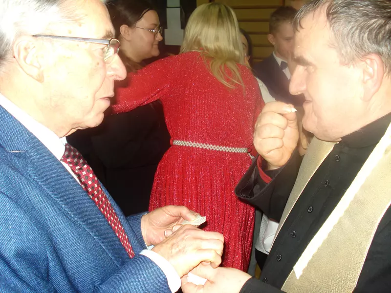 Oddział Warszawski Związku Sybiraków od wielu lat utrzymuje przyjacielskie kontakty ze Szkołą Podstawową im. Zesłańców Sybirackich w Kalinowie (aktualnie – Niepubliczna Szkoła Podstawowa). Szkoła ta aktywnie uczestniczy w upamiętnianiu etosu sybirackiego… Delegacje uczniowskie szkoły brały udział w Marszach pamięci w Białymstoku, w pielgrzymkach sybirackich na Jasną Górę i wielu innych uroczystościach. Od ponad 6-ciu lat organizowane są marsze Ziemi Ostrowskiej … Trzeba przyznać, że szkoła jak i miejscowa społeczność z proboszczem kościoła pw. Św. Rocha w Jasienicy Ks. Piotra KAPELAŃSKIEGO na czele aktywnie wspierają szkołę. Kiedy władze samorządowe w sposób zaskakujący postanowiły zlikwidować szkołę, stanęli w jej obronie i szkoła dalej działa tylko już jako Niepubliczna … Dlatego w odpowiedzi na zaproszenie delegacja Warszawskich Sybiraków w osobach Prezesa OW Stanisława Sikorskiego i Leona Zujko wzięła udział w uroczystej szkolnej Wigilii. W dniu 20 grudnia udaliśmy się do Kalinowa, gdzie zostaliśmy bardzo życzliwie przyjęci. Uroczystość była bardzo starannie przygotowana i mimo skromnych warunków wspaniale przygotowana i przeprowadzona. Udział w występie wzięły wszystkie dzieci od najmłodszych przedszkolaków po najstarsze roczniki. Widać było zaangażowanie i ogrom włożonej pracy zarówno kadry pedagogicznej jak i dzieci w przygotowanie i realizację tej uroczystości. Na zakończenie uroczystości odbyło się podsumowanie działalności szkoły, wręczono uroczyście nagrody wyróżniającym się uczniom i nauczycielom … Po właściwym występie zaproszeni goście, uczniowie szkoły jak i kadra wzięli udział w poczęstunku wigilijnym, dzielenie się opłatkiem i szczególną życzliwością. Opracował: Leona Zujko Dyr. Szkoły Barbara Wyszkowska i Edyta Dębek otwierają szkolną uroczystość wigilijną Występ uczniów Zdjęcie grupowe zaproszonych gości z dyrekcją i pracownikami szkoły Przeczytano 70 Nawigacja wpisu Wigilia Sybiraków w Białymstoku „Sierociniec”