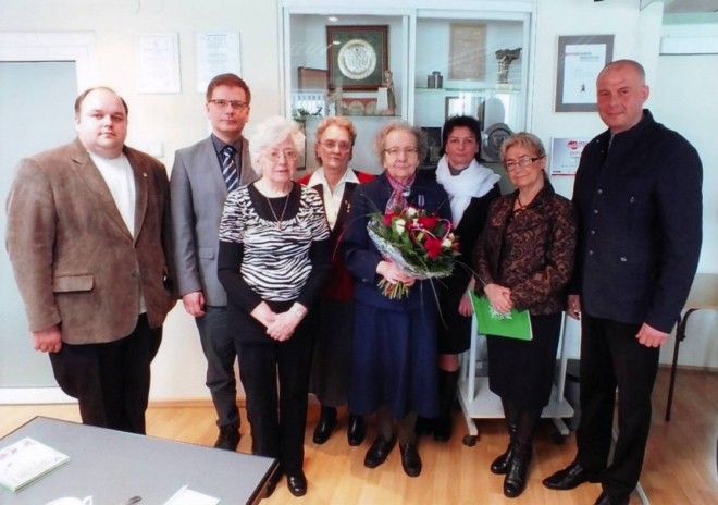 W dniu 5 kwietnia 2013 r. w tyskim magistracie odbyła się uroczystość wręczenia medalu Pro Memoria Kołu Związku Sybiraków w Tychach oraz Honorowej Prezes Koła inż. Miłosławie Zawałkiewicz-Maciąg. Medal Pro Memoria, zwany inaczej Odznaczeniem dla Stróżów Pamięci, przyznawany jest przez Kierownika Urzędu ds. Kombatantów i Osób Represjonowanych za wybitne zasługi w utrwalaniu pamięci o ludziach i czynach w walce o niepodległość Polski podczas II wojny światowej i po jej zakończeniu. Medale wręczył ppłk Leszek Klag, komendant WKU w Tychach, w obecności prezydenta Tychów Andrzeja Dziuby i burmistrza Pszczyny Dariusza Skrobola. Pani Miłosława Zawałkiewicz-Maciąg odebrała też życzenia z okazji 85. rocznicy urodzin. O pracy Koła i odznaczonej Miłosławie mówiła prezes Zarządu Oddziału w Katowicach i członek Zarządu Głównego ZS Danuta Sedlak. Pani Miłosława Zawałkiewicz-Maciąg jest skarbnicą wiedzy o członkach Koła, mózgiem wielu inicjatyw, m.in. sadzenia Dębów Pamięci o Katyniu, Kamienia pamięci o zamordowanych na Wschodzie krewnych tyskich Sybiraków, oraz redaktorem biuletynu Koła, wydawanego 2 razy do roku. Z Jej inicjatywy uporządkowano dokumenty tych Sybiraków, którzy takie dokumenty chcieli zostawić w osobowych teczkach. Związana jest z Kołem w Tychach od dnia powstania Koła po reaktywacji Związku Sybiraków, w 1989 r. Pani Miłosława Zawałkiewicz-Maciąg uchwałą Zebrania Koła w Tychach otrzymała tytuł Honorowego Prezesa Koła. Jest osobą skromną, mówi: „Ja tylko realizowałam postanowienia statutowe Związku, a one polecają opiekę nad Sybirakami, którzy tyle wycierpieli od wschodnich sąsiadów, i upamiętnianie zdarzeń, które są historią naszego narodu”. Po utworzeniu Koła przez późniejszą długoletnią prezes Irenę Donajgrodzką rejon działalności Koła obejmował Tychy, Mikołów, Łaziska, Pszczynę, Bieruń, Czechowice-Dziedzice i pomniejsze miejscowości. Pracami Koła kieruje wybierany zgodnie ze Statutem Zarząd Koła, który udziela rad i pomaga członkom w załatwianiu różnych spraw, prowadzi bibliotekę w siedzibie Zarządu, współpracuje z innymi organizacjami, uczestniczy w uroczystościach organizowanych przez władze miasta. Za swoją pracę dla Koła członkowie Zarządu otrzymali m.in. Srebrne Krzyże Zasługi – Izabela Rzechonek i Ewa Gorczyca oraz Złotą Odznakę Honorową za Zasługi dla Związku Sybiraków – Stefan Kniaziuk. W Kole działa tzw. rozszerzony Zarząd, składający się z ok. 30 działaczy. Obecnie stan członków Koła uległ zmniejszeniu prawie o połowę: ogółem liczy 154 osoby, w tym 117 zesłańców, a posiadających status osoby represjonowanej – 72. W Pszczynie utworzono tzw. sekcję pszczyńską, na czele której stoi Stanisława Pistelok. Praca Koła jest widoczna w Tychach i Pszczynie: do tej pory urządzono 11 wystaw – „Sybiracy – świadkowie historii” oraz wystawy w szkołach. Rozwija się współpraca ze szkołami na terenie Tychów, Pszczyny i ZHP. Pozostawiamy: rondo Zesłańców Sybiru w Tychach, ulicę Sybiraków w Pszczynie, tablicę w kościele św. Krzysztofa w Tychach, tzw. Kamień Katyński z Dębami Pamięci przy kościele bł. Karoliny w Tychach, Dęby Pamięci w Pszczynie, tablicę upamiętniającą deportację na Sybir na budynku Zespołu Szkół nr 2 w Pszczynie, pomnik Zesłańców Sybiru „Sybirakom Tyszanie”. Znaki pamięci, o które tak bardzo starają się Koło w Tychach i sekcja w Pszczynie, pozostaną na zawsze w tych miastach. Praca dla Związku Sybiraków i Koła w Tychach, zarówno Zarządu, jak i działaczy Koła, zasługuje na najwyższy szacunek i pochwałę, zwłaszcza takich osób jak: Krystyna Jamrozik, Maria Kałuża, Teresa Hetmańska, Józefa Lisińska, Krystyna Bąk, Maria Łapińska, Marianna Kolago, Jadwiga Poks, Irena Strzelec, Lilia Tymińska, Barbara Antonowicz, Jan Wolnik i wielu, wielu innych, na których można liczyć w pracy z ludźmi tak bardzo skrzywdzonymi przez los. Honorowa Prezes ZS Koła w Tychach Miłosława Zawałkiewicz-Maciąg z medalem Pro Memoria Wręczenie medalu Pro Memoria Kołu ZS w Tychach i pani Miłosławie Zawałkiewicz-Maciąg. Od lewej: Miłosława Zawałkiewicz-Maciąg, Stanisława Pistelok – działaczka z Pszczyny, Izabela Rzechonek – wiceprezes Koła w Tychach, Danuta Grabiec – prezes Koła w Tychach (odbiera medal), Ewa Gorczyca – sekretarz Koła w Tychach, ppłk Leszek Klag – komendant WKU w Tychach Od lewej: Michał Pudełko – nauczyciel historii w Zespole Szkół nr 2 w Pszczynie, Piotr Cygan – dyrektor Zespołu Szkół nr 2 w Pszczynie, Danuta Grabiec, Stanisława Pistelok, Miłosława Zawałkiewicz-Maciąg, Renata Dyrda – dyrektor I Liceum Ogólnokształcącego w Pszczynie, Danuta Sedlak – prezes Oddziału ZS w Katowicach, Szymon Sekta – sekretarz Starostwa w Pszczynie Oprac.: Danuta Grabiec Przeczytano 195 Nawigacja wpisu Kontakty Sybiraków w Lesznie z młodzieżą szkolną Wrocław uroczystości 11–12 kwietnia 2013 r. „Kwiecień – miesiąc pamięci Golgoty Wschodu”