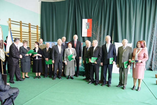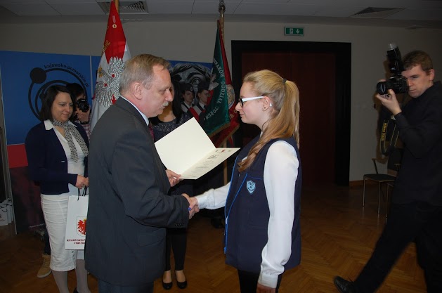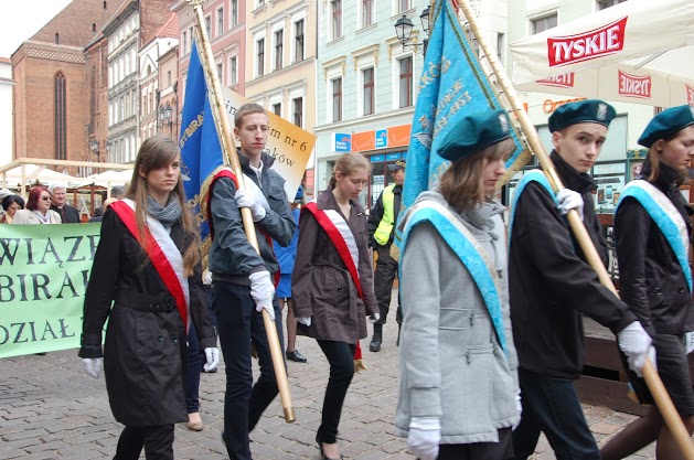 19 kwietnia 2013 r. w Toruniu odbyły się uroczyste obchody 73. rocznicy drugiej deportacji Polaków na Syberię. Dla VI Liceum Ogólnokształcącego i Gimnazjum nr 6 noszących imię Zesłańców Sybiru były to uroczystości szczególne, ponieważ bardzo ważny ich punkt stanowiło przejęcie opieki nad sztandarem toruńskiego Oddziału Związku Sybiraków. Uroczystości rozpoczęły się w Urzędzie Marszałkowskim w Toruniu. Przybyłych gości serdecznie powitał Prezes toruńskiego Oddziału Związku Sybiraków pan Jan Myrcha. Następnie pan Zbigniew Matuszewicz, dyrektor Zespołu Szkół nr 1, podsumował wyniki V edycji międzyszkolnego konkursu „Syberyjska Golgota” – Losy Sybiraków na Wschodzie w latach 1795–1956. Organizatorem tego konkursu, przy współudziale Związku Sybiraków, jest nasza szkoła, patronat honorowy sprawuje Marszałek Województwa Kujawsko-Pomorskiego pan Piotr Całbecki. Konkurs odbył się już po raz piąty i stanowi niezwykle ważny element współpracy szkoły i Związku Sybiraków w Toruniu. Jego celem jest propagowanie wśród młodzieży wiedzy o losach zesłańców, rozwijanie pasji badawczej i talentu twórczego, a także dbanie o prawdę historyczną. Na tegoroczny etap finałowy nadesłano 29 prac ze szkół: Bydgoszczy, Grudziądza, Skępego, Torunia, Włocławka. Po zapoznaniu się i dokonaniu oceny wszystkich nadesłanych prezentacji, komisja konkursowa postanowiła przyznać nagrody następującym uczniom: w kategorii szkół gimnazjalnych: I miejsce – Karolina Pietras z Gimnazjum nr 24 im. Szarych Szeregów w Toruniu, II miejsce – Eliza Letkiewicz z Gimnazjum nr 6 im. Sybiraków w Grudziądzu, III miejsce – Natalia Łazarska z Gimnazjum nr 3 w Grudziądzu; w kategorii szkół ponadgimnazjalnych: I miejsce – Adam Czyżewski z Zespołu Szkół Elektrycznych we Włocławku, II miejsce – Dominika Rutkowska z VI Liceum Ogólnokształcącego im. Zesłańców Sybiru w Toruniu, III miejsce – Jakub Paduch z VI Liceum Ogólnokształcącego im. Zesłańców Sybiru w Toruniu, wyróżnienie – Krystian Radke z Zespołu Szkół im. Waleriana Łukasińskiego w Skępem. Gratulacje otrzymali także nauczyciele, którzy pomagali swoim uczniom w przygotowywaniu konkursowych prezentacji multimedialnych. Nagrody i wyróżnienia wręczali obecni na uroczystości Wicewojewoda Kujawsko-Pomorski pan Zbigniew Ostrowski oraz Sekretarz Województwa pan Marek Smoczyk. W trakcie tej części obchodów wręczono także odznaczenia nadane przez Komitet Ochrony Pamięci Walk i Męczeństwa. Złoty Medal Opiekuna Miejsc Pamięci Narodowej otrzymały panie: Wanda Borowy i Jadwiga Krokowska. Srebrny Medal Opiekuna Miejsc Pamięci Narodowej wręczono panom Edmundowi Głuchowskiemu, Ludwikowi Kluszczyńskiemu, Michałowi Niziołowi, Janowi Myrsze i Adamowi Zaniewskiemu. Odznakę Honorową Opiekuna Miejsc Pamięci Narodowej wręczono pani Marcie Jatczak. Uroczystego odznaczenia dokonał Sekretarz Województwa Kujawsko-Pomorskiego pan Marek Smoczyk. To odznaczenie otrzymały także VI Liceum Ogólnokształcące i Gimnazjum nr 6 im. Zesłańców Sybiru w Toruniu. Ostatnim punktem tej części uroczystości była prezentacja nagrodzonych filmów. Z Urzędu Marszałkowskiego wszyscy goście przeszli pod tablicę Sybiraków, która znajduje się w krużganku kościoła pw. Wniebowzięcia Najświętszej Marii Panny. Prezes toruńskiego Oddziału Związku Sybiraków, pan Jan Myrcha, powitał zgromadzonych. Tę część uroczystości swą obecnością uświetnili: Wicewojewoda Kujawsko-Pomorski pan Zbigniew Ostrowski, Zastępca Prezydenta Torunia pan Ludwik Szuba, Przewodniczący Rady Miasta Torunia pan Marian Frąckiewicz, Pełnomocnik Zarządu Województwa Kujawsko-Pomorskiego ds. Kombatantów i Osób Represjonowanych pan Marcin Swaczyna, ks. Józef Nowakowski, opiekun duchowy Sybiraków, proboszcz parafii Wniebowzięcia Najświętszej Marii Panny, Burmistrz Chełmży pan Jerzy Czerwiński, Sybiracy, przedstawiciele fundacji oraz dyrektor pan Zbigniew Matuszewicz wraz z nauczycielami i liczną grupą uczniów z VI Liceum Ogólnokształcącego i Gimnazjum nr 6 im. Zesłańców Sybiru. Po wspólnym odśpiewaniu Hymnu Sybiraków, Prezes Jan Myrcha w krótkim przemówieniu zwrócił uwagę na rolę takich obchodów w budowaniu etosu Sybiraków – kiedyś zastraszanych, gnębionych, teraz wreszcie traktowanych z należytym szacunkiem. Dlatego tak ważna jest obecność młodzieży, która nie tylko poznaje losy zesłańców, ale może przede wszystkim staje się gwarantem zachowania ich dziejów w pamięci. Następnie obecni na uroczystości goście złożyli kwiaty pod tablicą Sybiraków. Wszystkim delegacjom przy składaniu wiązanek asystowali uczniowie klas mundurowych z VI Liceum Ogólnokształcącego im. Zesłańców Sybiru w Toruniu. Kolejnym punktem obchodów 73. rocznicy drugiej deportacji Polaków na Sybir był uroczysty przemarsz ulicami Torunia pocztów sztandarowych Kół Sybiraków z Brodnicy, Grudziądza i Torunia wraz pocztami szkół noszących imię Sybiraków do Zespołu Szkół nr 1 na ulicę Wojska Polskiego 47a. „Jeśli zapomnę o nich, Ty, Boże na niebie, zapomnij o mnie” – tak ostatnią część spotkania poświęconego Sybirakom rozpoczął dyrektor Zespołu Szkół nr 1 pan Zbigniew Matuszewicz. Te słowa, zaczerpnięte z twórczości Adama Mickiewicza, stały się pretekstem do rozważań na temat misji, jaką mamy do wykonania. Zwracając się do licznie przybyłych Sybiraków, pan dyrektor Matuszewicz stwierdził, że wspomnienia, którymi dzielą się z młodzieżą, są istotnym elementem kształtowania właściwych postaw i pomagają w budowaniu prawidłowego systemu wartości. Zadaniem młodych jest natomiast zachowanie w pamięci wiedzy o tych, którzy doświadczyli gehenny zesłania. Następnie pan dyrektor serdecznie powitał przybyłych na uroczystość do szkoły gości: Prezydenta Torunia pana Michała Zaleskiego, Przewo