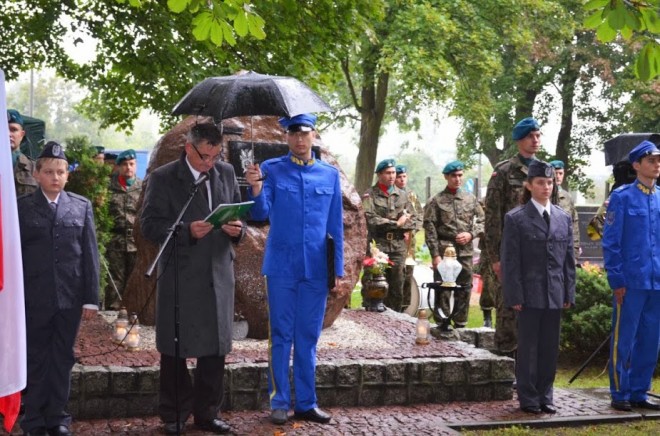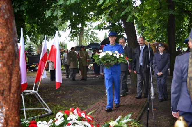 Tam na tej nieludzkiej ziemi, (…) Pracowałem i cierpiałem. Zwyciężyłem i przetrwałem. (fragment „Rozmowy wnuka z dziadkiem”) 6 września 2013 r. już po raz trzynasty odbył się w Białymstoku Międzynarodowy Marsz Żywej Pamięci Polskiego Sybiru. W uroczystościach wzięli udział: przedstawiciele Toruńskiego Oddziału Związku Sybiraków z prezesem Janem Myrchą, prałat parafii NMP ks. Józef Nowakowski – opiekun duchowy Sybiraków, pełnomocnik zarządu województwa kujawsko-pomorskiego ds. kombatantów i osób represjonowanych Marcin Swaczyna oraz uczniowie z VI Liceum Ogólnokształcącego im. Zesłańców Sybiru w Toruniu. Tegoroczny marsz upamiętniał 4 niezwykle ważne daty: 150. rocznicę powstania styczniowego, 70. rocznicę bitwy pod Lenino, 85. rocznicę powstania Związku Sybiraków oraz 25-lecie jego reaktywowania. Uczestnicy marszu spotkali się przy Pomniku Katyńskim, stamtąd ulicami Białegostoku przeszli do kościoła pw. Ducha Świętego na mszę celebrowaną przez metropolitę białostockiego abp. prof. dr. hab. Edwarda Ozorowskiego. Po mszy wszyscy uczestnicy zgromadzili się przy Pomniku – Grobie Nieznanego Sybiraka, gdzie odbył się apel poległych i odmówiono modlitwę za zmarłych. Potem nastąpiło złożenie kwiatów i zapalenie zniczy. Sybiracy i młodzież z VI LO im. Zesłańców Sybiru spędzili w Białymstoku niezwykle wzruszające chwile. Wspólny wyjazd był dla uczniów okazją do wysłuchania wspomnień, poznania historii tych, którzy doświadczyli zesłania. Obejrzeli także ekspozycję poświęconą agresji sowieckiej na Polskę 17 września 1939 r. oraz wystawę o Sybirakach prezentowaną w kościele pw. Ducha Świętego. Dzień Sybiraka niezwykle uroczyście obchodzono także w Toruniu. Inauguracja tego święta miała miejsce 13 września w parafii pw. Miłosierdzia Bożego i św. Siostry Faustyny. Mszę świętą celebrował ks. prałat płk Marek Karczewski. Uroczystość uświetnił chór, który na początku przepięknie zaśpiewał „Hymn” Jana Kochanowskiego. Liturgia została odprawiona w intencji ofiar i ich oprawców, a w jej trakcie przytoczono słowa, jakie do Sybiraków wygłosił Jan Paweł II: „Jesteście świadkami śmierci, która nie powinna zostać zapomniana”. Po zakończonej mszy wszyscy uczestnicy wzięli udział w III Toruńskim Marszu Żywej Pamięci Polskiego Sybiru, który już na stałe wpisał się w tradycję obchodów Dnia Sybiraka. Zgromadzeni goście, Sybiracy, poczty sztandarowe kół Związku Sybiraków i szkół przeszli na Cmentarz Komunalny nr 2 im. Ofiar II Wojny Światowej. Uroczystość przy Obelisku Sybiraków, gdzie wartę honorową pełnili żołnierze oraz uczniowie z VI Liceum Ogólnokształcącego im. Zesłańców Sybiru i Gimnazjum nr 6 im. Zesłańców Sybiru w Toruniu, rozpoczęła się odśpiewaniem hymnu państwowego. Następnie głos zabrał prezes Zarządu Oddziału Związku Sybiraków Jan Myrcha, który powitał przybyłych gości. Obchody swą obecnością uświetnili: Marek Smoczyk, reprezentujący marszałka województwa kujawsko-pomorskiego, Zbigniew Fiderewicz – zastępca prezydenta miasta Torunia wraz z przedstawicielami Urzędu Miasta, Kazimierz Sobiesiak – z ramienia wojewody kujawsko-pomorskiego, Marian Frąckiewicz – przewodniczący Rady Miasta Torunia, ks. płk Marek Karczewski – dziekan wojsk lądowych, ks. płk Mikołaj Hajduczenia – dziekan Inspektoratu Wsparcia Sił Zbrojnych, Janusz Kalinowski – przewodniczący Rady Miasta Chełmża, Mirosław Myśliński – prezes Oddziału Związku Sybiraków w Bydgoszczy, kombatanci, przedstawiciele związków zawodowych, harcerze, mieszkańcy Torunia. Szczególnie serdecznie Jan Myrcha zwrócił się do Sybiraków i dyrektorów szkół noszących imię Zesłańców Sybiru na czele ze Zbigniewem Matuszewiczem – dyrektorem Zespołu Szkół nr 1 w Toruniu, który uczestniczył w uroczystości wraz z grupą młodzieży i nauczycieli. Prezes Jan Myrcha zwrócił się do zebranych Sybiraków: „Drodzy Sybiracy! Uczcie młode pokolenie umiłowania Ojczyzny i patriotyzmu na własnym przykładzie, tak jak w ekstremalnych warunkach czynili wasi rodzice na zesłaniu. Tylko wychowanie młodych w duchu patriotyzmu i bezgranicznego umiłowania Ojczyzny będzie gwarantem niepodległości i suwerenności Polski jako dobra najwyższego Polaków”. W końcowej części przemówienia Jan Myrcha zwrócił się z apelem do posłanek i posłów, by uwzględnili prośby Sybiraków i 17 września ustanowili Dniem Sybiraka, ponieważ: „od 23 lat Sybiracy właśnie ten dzień obchodzą jako Dzień Sybiraka”, i aby w dniu posiedzenia Sejmu przekonywali wszystkich do tego projektu i zagłosowali dla Sybiraków. Następnie odbył się apel poległych, prowadzony przez mjr. Mariusza Wysockiego, reprezentującego CSAiU w Toruniu, po czym oddano salwę honorową. W dalszej części obchodów głos zabrał sekretarz województwa kujawsko-pomorskiego Marek Smoczyk. Swoje przemówienie skierował przede wszystkim do Sybiraków. Serdecznie podziękował im za trud i działania, jakie podejmują. Dzięki temu pamięć i prawda o tragicznej i bolesnej przeszłości będą trwały. Na zakończenie złożono kwiaty przy Obelisku Sybiraków i zapalono znicze. Delegacjom asystowali uczniowie z klas mundurowych VI Liceum Ogólnokształcącego im. Zesłańców Sybiru w Toruniu. Wspólne odśpiewanie Hymnu Sybiraków zakończyło obchody Dnia Sybiraka. Poczet sztandarowy VI LO i Gimnazjum nr 6 im. Zesłańców Sybiru (z lewej) podczas III Toruńskiego Marszu Żywej Pamięci Polskiego Sybiru Przemawia prezes Oddziału Związku Sybiraków w Toruniu Jan Myrcha Warta honorowa z udziałem uczniów z VI LO i Gimnazjum nr 6 im. Zesłańców Sybiru w Toruniu przy Obelisku Sybiraków Dyrektorzy VI LO i Gimnazjum nr 6 im. Zesłańców Sybiru – Zbigniew Matuszewicz i Mariusz Ślebioda w asyście uczniów Gimnazjum nr 6 składają kwiaty pod O