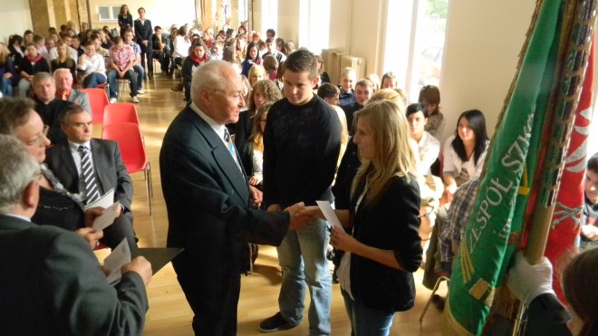 Dnia 24 września 2013 r. obchodziliśmy w naszej szkole Dzień Patrona. Jak co roku obchody tego święta zostały przesunięte o kilka dni, gdyż 17 września 2013 r. uczniowie naszej szkoły wraz z pocztem sztandarowym uczestniczyli w wojewódzkich obchodach Dnia Sybiraka w Gorzowie Wielkopolskim. Uroczystość rozpoczęła się mszą świętą w kościele parafialnym w Bobowicku, w której udział wzięli zaproszeni goście, nauczyciele i uczniowie. Po mszy świętej wszyscy udali się do internatu szkoły, gdzie odbyła się dalsza część uroczystości. Po wprowadzeniu sztandarów i odśpiewaniu hymnów: Mazurka Dąbrowskiego i Hymnu Sybiraków, dyrektor Roman Nowak bardzo serdecznie powitał przybyłych gości: prezes Zarządu Oddziału Związku Sybiraków w Gorzowie Wielkopolskim Jadwigę Ostrowską, honorowego prezesa Koła Związku Sybiraków w Międzyrzeczu Jana Antonowicza, prezesa Koła Związku Sybiraków w Międzyrzeczu Henryka Korbę, członków Koła: Ryszarda Szydłowskiego, Helenę Bury i Marię Kulas, przewodniczącego Szkolnej Rady Rodziców Roberta Czernianina. Następnie wysłuchaliśmy przemówień zaproszonych gości. Prezes Zarządu Oddziału Związku Sybiraków w Gorzowie Wielkopolskim Jadwiga Ostrowska podziękowała za pamięć o Sybirakach i przekazywanie jej młodym pokoleniom, co w dużej mierze jest zasługą naszej szkoły. W trakcie uroczystości odbyło się ślubowanie uczniów klas pierwszych, którzy od tej pory stali się pełnoprawnymi członkami społeczności szkoły. Honorowy prezes Koła Związku Sybiraków w Międzyrzeczu Jan Antonowicz odznaczył wybranych członków Koła Związku Sybiraków w Międzyrzeczu Odznaką Honorową Sybiraka za ich wkład i wieloletnią pracę. Bardzo miłym akcentem uroczystości Dnia Patrona w naszej szkole było wręczenie stypendiów ufundowanych przez Związek Sybiraków dla naszych uczniów oraz podręczników, które prezes Koła ZS Henryk Korba przekazał na ręce dyrektora szkoły jako podarunek dla naszych uczniów. Część artystyczna pokazująca tragedię zesłanych na Sybir została przygotowana i zaprezentowana przez uczniów klas pierwszych. Po zakończeniu uroczystości dyrektor Roman Nowak wraz z delegacją Związku Sybiraków złożyli kwiaty pod pomnikiem Zesłańców Sybiru w Międzyrzeczu. Oprac.: Anna Turos, nauczyciel Zespołu Szkół Rolniczych im. Zesłańców Sybiru w Bobowicku Przeczytano 86 Nawigacja wpisu Odsłonięcie tablicy pamiątkowej w Węgorzewie Dobra wiadomość