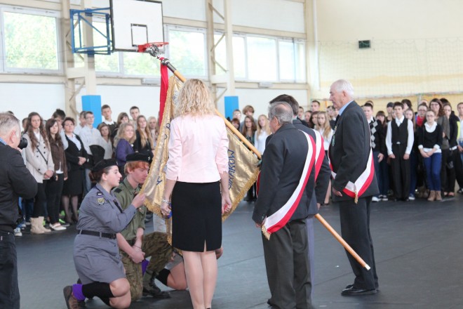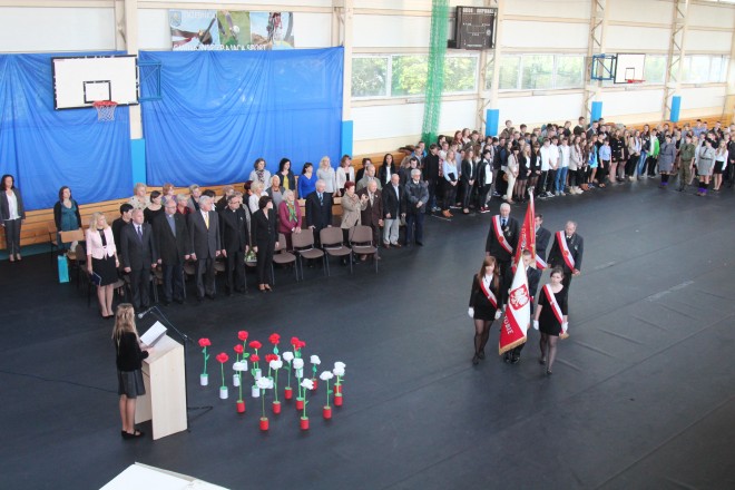 27 września to data, która na stałe zapisała się w sercach uczniów i pracowników trzebnickiej Jedynki. W tym dniu w 1945 r. do życia powołana została Publiczna Szkoła Podstawowa w Trzebnicy. W 1999 r., po reformie edukacyjnej, w placówce utworzono gimnazjum, które funkcjonuje do dnia dzisiejszego. Nasza szkoła, jako pierwsza powojenna placówka edukacyjna na ziemi trzebnickiej oraz jedna z pierwszych na Dolnym Śląsku, podjęła współpracę z Kołem Związku Sybiraków w Trzebnicy. Historia powstania Koła Związku Sybiraków w Trzebnicy Koło zostało powołane 25 listopada 1991 r. z inicjatywy Adama Bronieckiego i Władysława Dzięcioła i liczyło 21 osób, na dzień 1 stycznia 2013 r. – 52 członków, w tym sześciu podopiecznych (wdowy i wdowcy po Sybirakach). Obecnie funkcję prezesa Zarządu Koła sprawuje Lucjan Tać. Członkowie koła aktywnie uczestniczą w obchodach świąt państwowych i uroczystościach lokalnych. Ponadto, z inicjatywy Adama Bronieckiego, 10 lutego – w kolejne rocznice wywózek na Sybir – w Trzebnickim Ośrodku Kultury i Sportu organizują uroczyste spotkania z udziałem Sybiraków, ich rodzin, a także zaproszonych gości. Do najważniejszych znaków pamięci Koła Związku Sybiraków w Trzebnicy należą: granitowa tablica usytuowana po prawej stronie w kruchcie bazyliki św. Jadwigi, która została poświęcona 9 lutego 2001 r., pomnik postawiony na placu naprzeciw wejścia do bazyliki św. Jadwigi, jego intencję wyraża fragment napisu: „…Nigdy więcej Sybiru”; poświęcony 11 września 2004 r., sztandar koła, ufundowany ze składek Sybiraków i sympatyków, który Sybiracy zdecydowali się przekazać pod opiekę Gimnazjum nr 1 w Trzebnicy. Uroczystość przekazania sztandaru 27 września 2013 r. to wyjątkowy dzień, ważny dla całej społeczności szkolnej Gimnazjum nr 1 im. Księcia Henryka Brodatego w Trzebnicy oraz Koła Związku Sybiraków w Trzebnicy. Podczas wzruszającej uroczystości Święta Szkoły Sybiracy przekazali pod opiekę gimnazjalistom swój sztandar. Święto Szkoły, jak co roku, rozpoczęła msza święta w Międzynarodowym Sanktuarium św. Jadwigi Śląskiej w Trzebnicy. Następnie zaproszeni goście, nauczyciele i uczniowie przeszli do hali sportowej przy Gimnazjum nr 1 w Trzebnicy, gdzie odbył się uroczysty apel, prowadzony przez przewodniczącą Samorządu Uczniowskiego Karolinę Oksińską. Po wprowadzeniu sztandarów – szkoły i Koła Związku Sybiraków w Trzebnicy – głos zabrała dyrektor szkoły Elżbieta Nowak, która podziękowała wszystkim za przyjęcie zaproszenia, a szczególnie ciepłe słowa powitania skierowała do burmistrza gminy Trzebnica Marka Długozimy, prezesa Zarządu Oddziału Związku Sybiraków we Wrocławiu Eugeniusza Kuszki, prezesa Koła Związku Sybiraków w Trzebnicy Lucjana Tacia, członków koła Stefana Czyżyńskiego, Adama Bronieckiego, Jerzego Szatkowskiego, Bronisławy Surówki, a także przedstawicieli Związku Inwalidów Wojennych RP, Pionierów Ziemi Trzebnickiej, pierwszych absolwentów szkoły, dyrektorów instytucji powiatowych, gminnych, szkół, przedszkoli, emerytowanych nauczycieli, przyjaciół szkoły, rodziców. Dyrektor podziękowała Sybirakom za zaufanie i wyróżnienie, jakim jest przekazanie szkole sztandaru. „Spotkał nas ogromy zaszczyt – podkreśliła Elżbieta Nowak. – Zarząd Koła Związku Sybiraków postanowił przekazać gimnazjum najważniejszy dla siebie symbol – sztandar. Wybór szkoły nie dziwi. Tu zawsze jesteście najmilszymi, oczekiwanymi gośćmi, tu przez lata współpracy, spotkań z uczniami, nauczycielami, zapisaliście także swoją historię. Czas zatarł ślady tamtej tragedii, nie ma już ziemianek, baraków, w których żyliście Wy i Wasi bliscy, nie ma mogił tych, którzy pozostali tam na zawsze. Ale pozostała pamięć. Bo to tylko pamięć, hołd, szacunek możemy Wam ofiarować za tułaczkę, stracone zdrowie, życie Waszych bliskich, walkę o wolność dla naszego kraju, w końcu za lata milczenia. W tej szkole zawsze będziemy pamiętać i przekazywać prawdę o Was następnym pokoleniom, co obiecuję jako dyrektor szkoły w imieniu całej społeczności gimnazjum. A moją obietnicę niech podkreślą słowa Adama Mickiewicza: »Bo jeśli ja zapomnę o Nich, niech Bóg zapomni o mnie«. Dla nas Sybir to nie tylko nazwa geograficzna, to tragedia narodu polskiego. Dzisiejsze spotkanie pokoleń pozwala jednak mieć nadzieję, że nigdy więcej nie powtórzą się »stacje Polskiej Golgoty Wschodu«! »Białe krematoria«!”. Następnie zebrani, w wielkim skupieniu, obejrzeli fragmenty filmu „Losy Zesłańców Sybiru”. Ta krótka lekcja historii w poruszający sposób zespoliła młodzież z osobami, które tę historię tworzyły. Było to wprowadzenie do najbardziej podniosłej chwili uroczystości: przekazania sztandaru. Rozpoczęło ją odczytanie aktu przekazania sztandaru przez prezesa Koła Związku Sybiraków w Trzebnicy Lucjana Tacia: „W dniu dzisiejszym, tj. 27 września 2013 r., podczas uroczystości Święta Szkoły, niniejszym aktem przekazujemy sztandar Koła Związku Sybiraków w Trzebnicy pod opiekę Gimnazjum nr 1 im. Księcia Henryka Brodatego w Trzebnicy z nadzieją otoczenia go należną czcią i reprezentowania z naszym uczestnictwem w uroczystościach państwowych. My, Sybiracy, powierzamy nasz sztandar szkole, która zawsze szanowała symbole pamięci narodowej, i mamy nadzieję, że tym symbolicznym aktem przekażemy młodemu pokoleniu nasz głęboki patriotyzm i wieczną pamięć o martyrologii narodu polskiego”. Po podpisaniu jednobrzmiących aktów przekazania przez Lucjana Tacia oraz dyrektor Elżbietę Nowak nastąpiło uroczyste przekazanie sztandaru. Sztandar przekazywali: chorąży Jerzy Szatkowski oraz asysta sztandaru Lucjan Tać i Stefan Czyżyński, a przejęli go przedstawiciele 1 Trzebnickiej Drużyny Harcerskiej „Awaria” Związku Harcerstwa Pol
