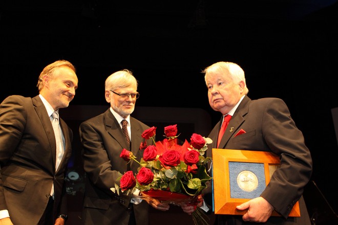 Człowiek jest wielki, nie przez to, co ma, kim jest, lecz przez to, czym dzieli się z innymi. Jan Paweł II Sybirakom data 10 lutego 1940 r. jest dobrze znana. Łączy się ona z pierwszą masową wywózką Polaków na Sybir. W tym dniu, tradycyjnie po mszy świętej w kościele NMP w Gdyni maszerujemy pod nasz pomnik „W Hołdzie Zesłańcom Sybiru”. Po zapaleniu zniczy modlimy się za zmarłych, którzy pozostali „na nieludzkiej ziemi”. Tak się składa, że Gdynia – miasto, które Sybiracy wybrali jako „drugą małą ojczyznę” – 10 lutego obchodzi swoją rocznicę – nadania praw miejskich. Z tej okazji rokrocznie odbywa się uroczysta sesja Rady Miasta Gdyni, na której wręczane są medale i wyróżnienia wybitnym postaciom miasta. W tym roku z okazji 88. rocznicy nadania Gdyni praw miejskich uroczystość odbyła się w Teatrze im. Witolda Gombrowicza w Gdyni. Muszę nieskromnie przyznać, że Rada Miasta Gdyni Uchwałą nr XXXVIII z dnia 15 stycznia 2014 r. nadała mi Medal im. Eugeniusza Kwiatkowskiego „Za Wybitne Zasługi dla Gdyni”. Medale te są nadawane raz w roku, tylko trzem osobom. Moją laudację odczytała Małgorzata Balsewicz, radna Miasta Gdyni. Zrobiła to w tak wzruszający sposób, wspominając moją syberyjską drogę oraz tragiczne przeżycia przy śmierci mojej kochanej mamy, że wiele osób ocierało łzy. Przy fanfarach poproszono mnie na scenę. Nagrodę odebrałem z rąk Stanisława Szwabskiego, przewodniczącego Rady Miasta oraz Wojciecha Szczurka, prezydenta Miasta Gdyni. Na tę okazję miałem przygotowane wystąpienie, ale ze wzruszenia zdołałem jedynie podziękować wszystkim, a szczególnie dyrektorom gdyńskich szkół, którzy wnioskowali i popierali moją kandydaturę. Moje wzruszenie i zażenowanie publiczność właściwie odebrała, schodząc z sceny otrzymałem gromkie, długie brawa. Po dekoracji otrzymałem mnóstwo kwiatów oraz pisemnych gratulacji od gdyńskich szkół, osób prywatnych i rodziny, która mnie wspierała. Pozwolę sobie zacytować krótki fragment jednego z listów od mgr Aliny Mroczkowskiej, dyrektor IX LO im. Marszałka Józefa Piłsudskiego: „W swojej pracy w Związku preferował Pan zawsze prawość, sprawiedliwość i uczciwość, uznając jednak potrzebę przebaczenia doznanych krzywd i bardzo złych życiowych doświadczeń. Świadomość własnej bardzo trudnej przeszłości pomogła Panu włączyć młodzież naszego Liceum w długi szereg pokoleń przekazujących następnym wspólne dobro – Ojczyznę. Medal im. Eugeniusza Kwiatkowskiego stanowi ukoronowanie życiowej działalności, wspaniały dowód na to, że to wszystko, co Pan przeżył, zdziałał i osiągnął, »dało plon stokrotny«”. Jestem dumny z tego, że mieszkam w mieście, w którym żyli i działali tacy wspaniali ludzie jak wspomniany Eugeniusz Kwiatkowski, inż. Tadeusz Wenda i wielu innych budowniczych Gdyni. Otrzymany medal dedykuję moim koleżankom i kolegom – Sybirakom, bez których nie byłyby możliwe moja działalność, osiągnięcia oraz uznanie wśród społeczności Gdyni. Na uroczystość zostali zaproszeni przedstawiciele Zarządu Oddziału Wojewódzkiego Związku Sybiraków w Gdańsku w osobach Zofia Kłoczko i Irena Witort oraz Kordian Borejko. Pragnę zapewnić mieszkańców Gdyni, „Moich Sybiraków”, że dopóki starczy mi sił, zrobię wszystko, by być godnym nadanego odznaczenia imienia sławnego budowniczego Gdyni. Najszlachetniejszy w całym ludzkim tłumie jest ten, kto prócz swoich łez, łzy innych rozumie. My Sybiracy, jak nikt inny, te łzy rozumiemy. Wylewaliśmy je, chowając naszych bliskich w dalekich stepach Kazachstanu i tajgach Syberii oraz płacząc po zamordowanych w Katyniu naszych ojcach. Od lewej: prezydent Gdyni Wojciech Szczurek, przewodniczący Rady Miasta Stanisław Szwabski, Aleksander Ryziński Oprac.: Aleksander Ryziński Przeczytano 37 Nawigacja wpisu 10 lutego we Wrocławiu Obchody 74. rocznicy pierwszej masowej wywózki na Sybir w Kole ZS w Dębnie