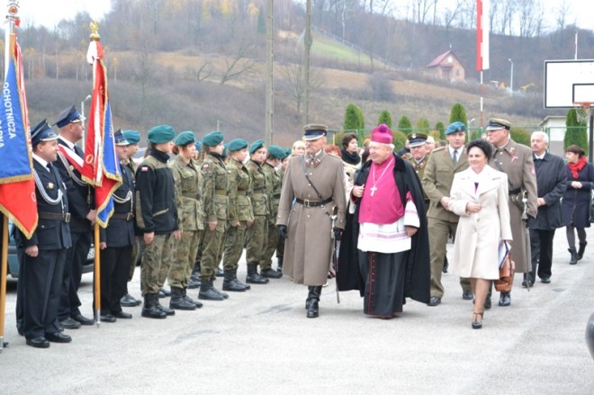 Wolność nie jest ulgą, lecz trudem wielkości. Leopold Staff Minął rok od nadania Szkole Podstawowej w Nawsiu imienia Sybiraków. Wiele się od tego czasu wydarzyło. Jedno jest niezmienne – nasze przekonanie, że wybór, jakiego dokonaliśmy, jest słuszny. Staramy się wytyczać sobie cele i realizować zadania edukacyjno-wychowawcze w taki sposób, aby sprostać wymaganiom, jakie stawia przed nami postać naszego patrona. „Pamięć o przeszłości oznacza zaangażowanie w przyszłość” – słowa bł. Jana Pawła II – stanowią motto pierwszej rocznicy nadania Szkole Podstawowej w Nawsiu imienia Sybiraków. Uroczystość odbyła się 13 listopada 2013 r. i była połączona z gminnymi obchodami 95. rocznicy odzyskania przez Polskę niepodległości. O godzinie 8.45 uroczyście, na czele ze strażacką orkiestrą dętą z Brzezin oraz pocztami sztandarowymi szkół i OSP z gminy Wielopole Skrzyńskie, Związkiem Strzeleckim „Strzelec” z Publicznego Gimnazjum im. Ks. Jerzego Popiełuszki w Wielopolu Skrzyńskim, społeczność szkolna z Nawsia wraz z zaproszonymi gośćmi przemaszerowała do kościoła pw. św. Andrzeja Boboli, gdzie odbyła się msza święta. Przewodniczył jej JE ks. bp Kazimierz Górny, towarzyszyli mu ks. infułat Józef Sondej, ks. dziekan Józef Kłosowski, ks. prałat Krzysztof Gac – kapelan Jednostki Strzeleckiej 2051, ks. dr Wiesław Matyskiewicz – wykładowca Uniwersytetu Rzeszowskiego i Wyższego Seminarium Duchownego w Rzeszowie, ks. Józef Opaliński – proboszcz parafii Polany, ks. Marcin Nabożny – przyjaciel naszej szkoły i ks. Marek Marchut – proboszcz parafii Nawsie, kapelan strażaków z gminy Wielopole Skrzyńskie. Oprawę liturgiczną przygotowali nauczyciele i uczniowie Szkoły Podstawowej im. Sybiraków w Nawsiu oraz chór „Seniores” z Nawsia. Uroczyste kazanie wygłosił ks. infułat Józef Sondej. Po nabożeństwie uczestnicy uroczystości zatrzymali się przy tablicy pamiątkowej znajdującej się na ścianie kościoła, upamiętniającej nazwiska mieszkańców Nawsia wywiezionych na Sybir. Poszczególne delegacje zaproszonych gości złożyły kwiaty. Następnie wszyscy zgromadzeni przeszli do Domu Kultury w Nawsiu na dalszą część uroczystości. Po wprowadzeniu pocztów sztandarowych szkół i OSP z terenu gminy Wielopole Skrzyńskie, odśpiewaniu hymnu narodowego oraz hymnu szkoły, jako pierwsza wystąpiła dyrektor szkoły Krystyna Paryś, która bardzo gorąco i serdecznie powitała wszystkich zebranych. Wśród wielu znakomitych gości obecni byli m.in. czcigodni księża uczestniczący we mszy świętej, na czele z JE ks. bp. Kazimierzem Górnym, inspektor Marek Matuła – komendant główny Związku Strzeleckiego „Strzelec”, inspektor Marek Strączek – dowódca Płd.-Wsch. Okręgu Związku Strzeleckiego „Strzelec”, Stanisław Ziemiński – starosta powiatu ropczycko-sędziszowskiego, Jerzy Łyszczak – członek zarządu powiatu, Stanisław Paryś – członek zarządu powiatu, przewodniczący Komisji Oświaty, Kultury, Sportu i Turystyki, a zarazem dyrektor Publicznego Gimnazjum im. Ks. Jerzego Popiełuszki w Wielopolu Skrzyńskim, Marcin Świerad – radny powiatu, dyrektor Gminnego Ośrodka Kultury i Wypoczynku w Wielopolu Skrzyńskim, kpt. Władysław Kmieć z małżonką Emilią – świadek żywej historii Sybiru, członek Związku Sybiraków i członek Światowego Związku Żołnierzy Armii Krajowej, Józef Ambrozowicz – bratanek Sybiraka Antoniego Ambrozowicza, Czesław Leja – wójt gminy Wielopole Skrzyńskie, Robert Pieczonka – przewodniczący Rady Gminy Wielopole Skrzyńskie, Jan Świstak – wiceprzewodniczący Rady Gminy Wielopole Skrzyńskie, prezes Zarządu Gminnego PSL, Julian Zegar – prezes Towarzystwa Przyjaciół Ziemi Wielopolskiej im. T.M. Kantora w Wielopolu Skrzyńskim, Antoni Balicki – dyrektor Zespołu Obsługi Szkół i Przedszkola w Wielopolu Skrzyńskim, Piotr Kryza – komendant posterunku policji w Wielopolu Skrzyńskim, Maria Żywot – sołtys wsi Nawsie, radni gminni, dyrektorzy szkół i przedszkola oraz innych zaprzyjaźnionych firm i instytucji działających na terenie gminy Wielopole Skrzyńskie, komendanci OSP, emerytowani nauczyciele, pracownicy szkoły, uczniowie, rodzice i mieszkańcy wsi. Obecni byli również przedstawiciele mediów – ekipa Katolickiego Radia VIA z Rzeszowa oraz redaktorzy gazety powiatowej „Ziemia Ropczycka”. W dalszej części dyrektor Krystyna Paryś wygłosiła okolicznościowe przemówienie. Motto przewodnie stanowiły słowa Leopolda Staffa: „Wolność nie jest ulgą, lecz trudem wielkości”. Wspominając 95. rocznicę odzyskania niepodległości, mamy świadomość, że dziś nikt nie oczekuje od Polaków wysiłku zbrojnego lecz przeciwnie, dziś budujemy naszą przyszłość solidną pracą i nauką. Powinniśmy dbać o dobre imię szkoły, miejsca zamieszkania i Ojczyzny. W swoim wystąpieniu dyrektor podkreśliła, że przypominamy również wydarzenia sprzed roku, to właśnie 13 listopada 2012 r. Szkole Podstawowej w Nawsiu nadano imię Sybiraków. Jesteśmy dumni, że właśnie nasza szkoła godnie reprezentuje ideały i wartości patriotyczne, takie jak odwaga, honor, poszanowanie godności, uczciwość, pracowitość i tolerancja wobec drugiego człowieka. Hasło „umieć żyć z innymi i dla innych” w naszej szkole jest mottem codziennej pracy dydaktyczno-wychowawczej. Z historią dotyczącą Sybiraków, a w szczególności tych, którzy wywodzili się z Nawsia, zapoznał wszystkich zebranych przewodniczący Rady Gminy, a zarazem nauczyciel Szkoły Podstawowej im. Sybiraków w Nawsiu Robert Pieczonka. Przypomniał, iż wybór patrona, data i miejsce nadania nie są dziełem przypadku. Właśnie 11 listopada 1944 r. to dzień aresztowania i zesłania 12 mieszkańców Nawsia na Sybir za przynależność do Armii Krajowej. Wtedy to podstępnie zostali zabrani z domów: Antoni Ambrozowicz (zm. 