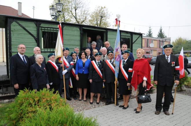 Dnia 17 września 2014 r. w Sanktuarium Miłosierdzia Bożego w Łomży odbyła się doniosła uroczystość z okazji Dnia Sybiraka. Organizatorami byli prezydent miasta Łomża, kustosz Sanktuarium Miłosierdzia Bożego i dyrekcja Szkoły Podstawowej nr 5 w Łomży. Uroczystość swą obecnością zaszczycili m.in. zastępca prezydenta Łomży Beniamin Dobosz, starosta łomżyński Lech Szabłowski, dyrektor Podlaskiego Oddziału Regionalnego ARiMR Stefan Krajewski, przedstawiciele służb mundurowych, burmistrzowie, wójtowie, przedstawiciele Kuratorium Oświaty, dyrektorzy szkół, przedstawiciele organizacji kombatanckich, w tym Oddziału Związku Piłsudczyków RP w Szczuczynie, Sybiracy, młodzież i licznie przybyli mieszkańcy Łomży i okolic. Poczty sztandarowe wystawiły: Oddział ZS w Łomży, Koła zrzeszone w Oddziale, łomżyńskie szkoły, Urząd Miasta, organizacje pozarządowe. Obchody rozpoczęły się uroczystą mszą świętą, którą celebrował JE ks. bp Tadeusz Bronakowski. W homilii m.in. powiedział, że współczesnym, którzy nie pamiętają tamtych strasznych czasów, aż trudno uwierzyć, że to, czego doświadczyli przed 75 laty mieszkańcy tej ziemi podczas wywózek, było możliwe. Bardzo dużo deportowanych nie powróciło do swoich domów. Zostali na zawsze w bezimiennych mogiłach na tej nieludzkiej, okrutnej ziemi. Prezes Zarządu Oddziału ZS w Łomży Danuta Pieńkowska-Wolfart w swoim wzruszającym wystąpieniu przytoczyła słowa pewnego filozofa, który powiedział: „Golgota Wschodu – kto tam nie był, nie uwierzy, a kto był, nigdy nie zapomni”. Przypomniała o przypadającej w tym roku 70. rocznicy bitwy pod Monte Cassino. Gen. Władysław Anders powiedział, że są bitwy, na które nie pada pył zapomnienia. Bierze je na skrzydła legenda i zanosi do narodowych pamiątek kościoła. Do nich należy właśnie bitwa o Monte Cassino. Dla żołnierzy 2. Korpusu Polskiego gen. Andersa ta bitwa była drogą od upodlenia w sowieckich łagrach do chwały jednego z najpiękniejszych zwycięstw w polskiej historii. Prezes wyraziła również radość, że w ostatnich latach zgłaszają się do Oddziału ludzie młodzi, którzy chcą być członkami wspierającymi Związku Sybiraków i kontynuować jego zadania. Jest to tym ważniejsze, że Sybirakom przybywa lat, a ubywa sił i koniecznej energii do dalszej aktywnej działalności. Montaż słowno-muzyczny na tle wspaniałej dekoracji (ogromny orzeł na postumencie z mnóstwem czerwonych maków u podnóża) przedstawiła młodzież ze Szkoły Podstawowej nr 5 w Łomży. Następnie prezes Danuta Pieńkowska-Wolfart w asyście sekretarz Niny Żyłko wręczyła Złotą Odznakę Honorową za Zasługi dla Związku Sybiraków Marii Tyszce, opiekunce Klubu Wnuka Sybiraka przy Szkole nr 5 w Łomży. Srebrne Odznaki Honorowe za Zasługi dla Związku Sybiraków wręczono 11 osobom, a Odznakę Honorową Sybiraka 12 osobom. Trzy osoby otrzymały legitymację członka wspierającego Związku Sybiraków. Po mszy świętej wszyscy udali się pod pomnik Sybiraka, gdzie poszczególne delegacje złożyły kwiaty i zapaliły znicze. Zasadzona została również sosna syberyjska, przywieziona z archangielskiej tajgi przez Jana Dariusza Cychola, syna Sybiraka. Symbolizuje ona oddanie zmarłym czci i hołdu, żywych wzywa do pojednania. Po uroczystości Sybiracy i zaproszeni goście spotkali się przy wspólnej herbacie. 21 września w Czyżewie odbyło się uroczyste otwarcie Muzeum Ziemi Czyżewskiej i odsłonięcie pomnika – wagonu poświęconego pamięci zesłańców Sybiru. Zrekonstruowany wagon przypomina o morderczej podróży wielu rodaków wywożonych w głąb Rosji. Znajdują się w nim przedmioty podróżne Sybiraków oraz ściana z wyrytą listą zesłańców. Przekraczając próg wagonu, słyszymy odgłos pędzącego pociągu. Drugą część ekspozycji stanowi wnętrze chaty zamieszkiwanej przez zesłańców na Syberii, które ukazuje elementy wyposażenia i przedmioty codziennego użytku. Przed wagonem znajduje się kamienna tablica z napisem „W hołdzie Zesłańcom Sybiru deportowanym ze stacji kolejowej w Czyżewie przez okupantów sowieckich w latach 1940–1941. Mieszkańcy Gminy Czyżew”. Ten znak pamięci powstał dzięki Sybirakom i mieszkańcom Czyżewa oraz ogromnemu zaangażowaniu burmistrz Czyżewa Anny Boguckiej. W swym wystąpieniu sekretarz Zarządu Oddziału ZS w Łomży Nina Żyłko podziękowała w imieniu prezes i członków Zarządu Oddziału za zaproszenie na tę uroczystość. „Jeżeli będzie malutka garsteczka ludzi, ale o tak wielkim i szlachetnym sercu jak u pani burmistrz, to dzisiejsza uroczystość dowodzi, że pamięć o Sybirakach nigdy nie zaginie” – powiedziała. Poseł na Sejm RP Jacek Bogucki w asyście przedstawicieli Zarządu Oddziału ZS w Łomży na ręce pani burmistrz przekazał medal Pro Patria przyznany przez szefa Urzędu ds. Kombatantów i Osób Represjonowanych, którym udekorowano czyżewski sztandar. Medal został przyznany Urzędowi Miejskiemu w Czyżewie jako wyraz uznania dla dużego wkładu pracy i troski o zachowanie pamięci o osobach represjonowanych. Uroczystości towarzyszyła patriotyczna pieśń Rota w wykonaniu Młodzieżowej Orkiestry Dętej z Czyżewa. Dla nas Sybiraków było to bardzo ważne i patriotyczne wydarzenie. Trzeba nadmienić, że w większych Kołach Oddziału także odbyły się uroczystości z okazji Dnia Sybiraka, organizowane wspólnie ze szkołami z Niedźwiadnej, Szczuczyna, Jedwabnego i Ciechanowca. Przy znakach pamięci złożono kwiaty i zapalono znicze. Oprac.: Nina Żyłko Prezes Danuta Pieńkowska-Wolfart w asyście sekretarz Niny Żyłko wręcza Złotą Odznakę Honorową za Zasługi dla Związku Sybiraków Marii Tyszce, opiekunce Klubu Wnuka Sybiraka przy Szkole Podstawowej nr 5 w Łomży Ceremonia zasadzenia sosny syberyjskiej. Na pierwszym planie Jan Dariusz Cychol, który przywiózł sadzonkę Prawnuc