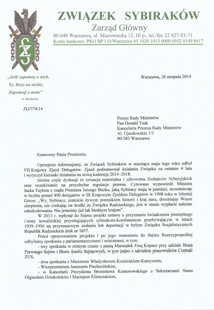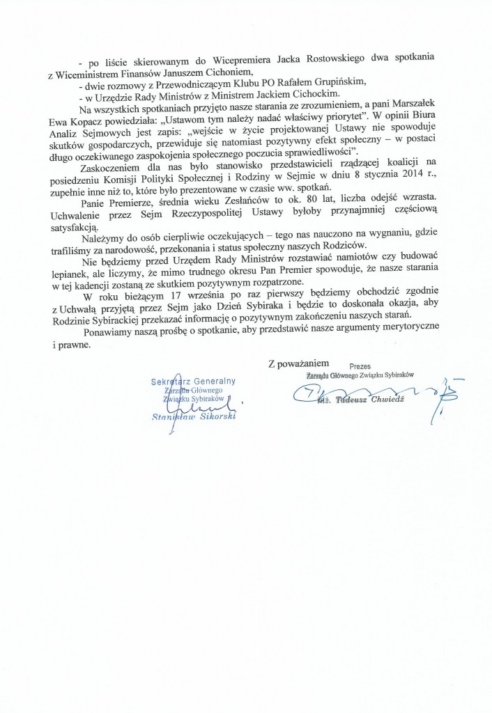 Przeczytano 64 Nawigacja wpisu Pismo do marszałek RP Ewy Kopacz z 19 sierpnia 2014 r. Pismo do premier Ewy Kopacz z 3 października 2014 r.