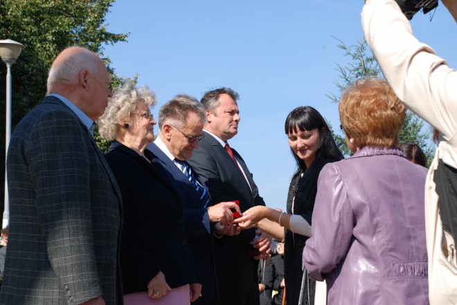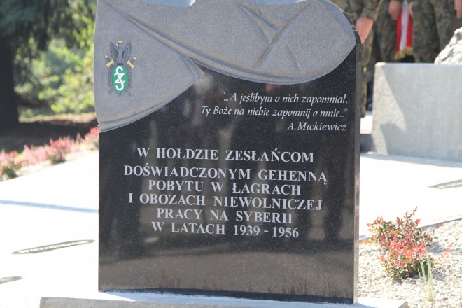 Dzień Sybiraka był obchodzony w Rzeszowie szczególnie uroczyście, łączył się bowiem z wyjątkowym wydarzeniem dla członków naszego Oddziału oraz mieszkańców miasta. W tym dniu (17 września 2014 r.) został odsłonięty i poświęcony pomnik ku czci Zesłańców Sybiru. Wykonany z brązu odlew o wysokości 3 m stanął w Parku Sybiraków na odkrytym od frontu wzniesieniu, na tle pięknie rozlokowanej zieleni drzew i krzewów. Twórcą wizerunku postaci Sybiraka wyłonionego w konkursie graficznym był pracownik Zespołu Szkół Plastycznych im. Piotra Michałowskiego w Rzeszowie, artysta plastyk Jakub Ataman. Rzeźbę wykonał artysta rzeźbiarz Michał Batkiewicz. Odlew powstał w Pracowni Brązowniczej Art-Studio w Szczyglicach koło Krakowa. Uroczystość miała wspaniałą oprawę. Msza święta została odprawiona w kościele parafialnym pw. Podwyższenia Krzyża Świętego, którego proboszczem jest ks. prałat Franciszek Kołodziej. Celebrował ją wikariusz generalny ks. bp dr Edward Białogłowski przy udziale licznej asysty duchowieństwa z pięciu parafii oraz kapelana rzeszowskich Sybiraków ks. infułata Stanisława Maca, który wygłosił wzruszające kazanie. Uroczystości religijnej towarzyszyły liczne poczty sztandarowe związków i stowarzyszeń kombatanckich, różnych formacji Wojska Polskiego, harcerzy, policji, straży pożarnej, młodzieży szkolnej, która przybyła wraz z nauczycielami, oraz orkiestra wojskowa. Po mszy wszyscy uczestnicy przeszli pod pomnik. Przybyli m.in. wojewoda podkarpacki Małgorzata Chomycz-Śmigielska, wiceprezydent Rzeszowa Marek Ustrobiński, dyrektor rzeszowskiego oddziału IPN Ewa Leniart, dyrektor Wydziału Polityki Społecznej Podkarpackiego Urzędu Wojewódzkiego Dariusz Tracz, rektor Uniwersytetu Rzeszowskiego prof. dr hab. Aleksander Bobko, wiele znaczących osobistości miasta Rzeszowa oraz powiatów, dowódcy różnych formacji Wojska Polskiego z pocztami sztandarowymi. Bardzo licznie zaznaczyli swoją obecność przedstawiciele placówek oświatowych, kulturalnych i społecznych, łącznie z Kuratorium Oświaty. W uroczystości uczestniczyło bardzo wielu członków Oddziału Związku Sybiraków w Rzeszowie, a także przedstawiciele prasy, radia i telewizji oraz mieszkańcy miasta. Po odegraniu hymnu państwowego oraz powitaniu gości przez prezes Zarządu Oddziału ZS w Rzeszowie Danutę Zbyszyńską odtworzony został Hymn Sybiraków. Odsłonięcia pomnika dokonali wiceprezes Zarządu Oddziału Adam Boratyn i prezes Zarządu Oddziału Danuta Zbyszyńska w asyście osób zasłużonych dla Związku Sybiraków. Ks. bp dr Edward Białogłowski wraz z dostojnym duchowieństwem poświęcił pomnik. Wojewoda Małgorzata Chomycz-Śmigielska wręczyła Złote Odznaki Honorowe za Zasługi dla Związku Sybiraków. Otrzymali je: zwycięzca konkursu na pomnik Jakub Ataman, były dyrektor ds. artystycznych w Zespole Szkół Plastycznych w Rzeszowie Jacek Kawałek, długoletni działacz Związku i prezes Zarządu Koła w Łańcucie Henryk Orłowski, wieloletnia działaczka Oddziału ZS w Rzeszowie i sekretarz Podkarpackiej Rady Wojewódzkiej Maria Zawora oraz prezes Zarządu Koła w Stalowej Woli, niedościgniony w pracy edukacyjnej na temat losów Sybiraków Zbigniew Paszkiewicz. Przemówienie okolicznościowe wygłosiła prezes Zarządu Oddziału ZS w Rzeszowie Danuta Zbyszyńska. Apel pamięci zakończyła salwa honorowa Wojska Polskiego. Następnie złożono wieńce i wiązanki kwiatów. Na zakończenie została wykonana pieśń reprezentacyjna Wojska Polskiego. Po części oficjalnej w przyległej części Parku Sybiraków wszyscy uczestnicy zostali zaproszeni na poczęstunek wspaniałą wojskową grochówką. Pomnik Zesłańców Sybiru w Parku Sybiraków w Rzeszowie Na uroczystość przybyli przedstawiciele władz (pierwsza z prawej wojewoda podkarpacki Małgorzata Chomycz-Śmigielska), organizacji kombatanckich, duchowieństwa i służb mundurowych Pomnik odsłonili prezes Danuta Zbyszyńska (pośrodku), wiceprezes Adam Boratyn (z szarfą w ręku) wraz z zasłużonymi działaczami Oddziału ZS w Rzeszowie Poświęcenia dokonał ks. bp dr Edward Białogłowski Wojewoda Małgorzata Chomycz-Śmigielska wręczyła Złote Odznaki Honorowe za Zasługi dla Związku Sybiraków (od prawej): Jakubowi Atamanowi, Zbigniewowi Paszkiewiczowi, Marii Zaworze i Henrykowi Orłowskiemu Przemówienie wygłosiła wojewoda podkarpacki Małgorzata Chomycz-Śmigielska Złożenie kwiatów przez przedstawicieli Oddziału ZS w Rzeszowie Oprac.: Danuta Zbyszyńska, prezes Zarządu Oddziału ZS w Rzeszowie bowiem Przeczytano 137 Nawigacja wpisu 17 września 2014 r. w Świebodzicach Obchody Dnia Sybiraka w Kwilczu i Międzychodzie