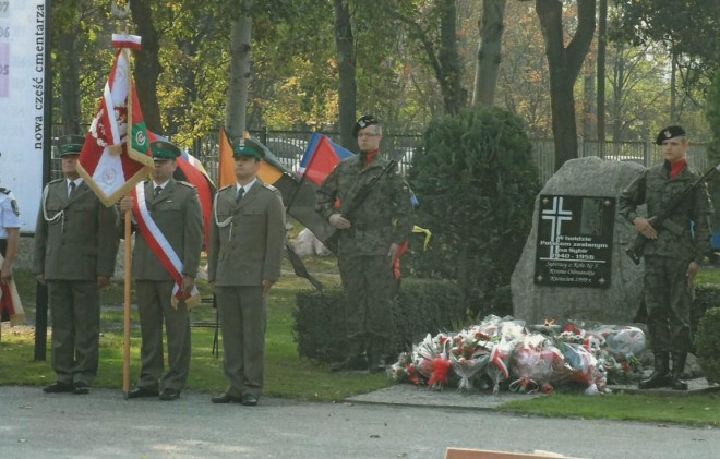 I w tajgach, w pustkowiu, wśród mrozu ciosali swoje przetrwanie, By pamięć ponieść o sobie i o tych, co nie przetrwali. ks. Łukasz Krzanowski „Syberyjskie anioły” Sybiracy Koła nr 5 w Krośnie Odrzańskim (Oddział w Zielonej Górze) spotkali się 14 września 2014 r. w kościele św. Andrzeja na mszy świętej odprawionej w intencji wszystkich Sybiraków z okazji 25-lecia reaktywowania Koła Związku Sybiraków w Krośnie Odrzańskim. W dniu 17 września 2014 r., w 75. rocznicę agresji ZSRR na Polskę przy obelisku „W hołdzie Polakom zesłanym na Sybir 1940–1956”, ufundowanym przez Koło nr 5 na Cmentarzu Komunalnym, odbyła się uroczystość patriotyczna ku czci wszystkich poległych Polaków. Prezes Zarządu Koła Daniela Otlewska powiedziała do zebranych: „Spotkaliśmy się tu, aby zachować w świadomości wydarzenia z tamtych lat, gdyż »naród pozbawiony korzeni usechłby niczym drzewo«. Nie zapominajmy o tym, uczmy młode pokolenia naszej historii”. Większość uczestników uroczystości stanowiła właśnie młodzież – uczniowie krośnieńskich szkół podstawowych i gimnazjów, a także Zespołu Szkół Ponadgimnazjalnych im. W. Broniewskiego. Licznie przybyły poczty sztandarowe oraz wojsko wraz z kompanią honorową. Obecni byli przedstawiciele samorządu, Urzędu Miasta i powiatu krośnieńskiego, straży granicznej, Komendy Powiatowej Policji, dyrekcja wszystkich szkół, reprezentanci Związku Kombatantów RP i Byłych Więźniów Politycznych oraz Sybiracy. Modlitwę odmówił kapelan parafii św. Marcina ks. Edward Olech, polecając Bogu wszystkich poległych w czasie II wojny światowej i tych, którzy nie wrócili już z „nieludzkiej ziemi”. Popłynęły słowa wiersza Bogusławy Urgacz „Kamień Sybiraka”, który pięknie wyrecytowała uczennica III klasy Liceum Ogólnokształcącego w Zespole Szkół Ponadgimnazjalnych im. W. Broniewskiego Agata Iskra: W pomniku Sybiraków, w tym zimnym kamieniu jest wypisana smutna prawda o ludzkim cierpieniu. (…) Pamięć męki Sybiraków mocną klamrą spięta, aby każdy o niej wiedział i o niej pamiętał. Uroczystość zwieńczyły apel poległych i salwa honorowa. Przy obelisku zostały złożone kwiaty. Następnie wszyscy udali się do Zamku Piastowskiego, w którym odbyła się oficjalna część obchodów jubileuszu 25-lecia powstania Koła Związku Sybiraków w Krośnie Odrzańskim. Rozpoczęło ją odegranie Hymnu Sybiraków. Minutą ciszy uczczono tych, którzy opuścili już nasze szeregi, odchodząc do wieczności. Po przywitaniu przybyłych na Zamek gości przez prowadzącą uroczystość prezes Zarządu Koła Danielę Otlewską, honorowa prezes Koła Weronika Szymczak przedstawiła rys działalności Koła w minionych latach. Złotą Odznaką Honorową za Zasługi dla Związku Sybiraków odznaczeni zostali: Zdzisław Paduszyński – darczyńca rzeźby Golgota Wschodu, która stanęła na Cmentarzu Komunalnym w Krośnie Odrzańskim, Jan Herda – rzeźbiarz, twórca wspomnianego dzieła, Weronika Szymczak – honorowa prezes Koła, Daniela Otlewska – aktualna prezes Zarządu Koła. Dyplomy otrzymały Karolina Wodecka – jedna z założycielek Koła i Emilia Chrul – długoletnia członkini Zarządu Koła. Ponadto za pracę nad kształtowaniem młodego pokolenia w duchu patriotycznym, przekazywanie wiedzy o zesłańcach Sybiru i długoletnią, owocną współpracę z Sybirakami ziemi krośnieńskiej Zarząd Koła przyznał dyplomy uznania Darii Nowak, pedagog Zespołu Szkół Ponadgimnazjalnych w Krośnie Odrzańskim oraz Beacie Styk, pedagog Zespołu Szkół Budowlanych w Zielonej Górze. Aktu dekoracji dokonali burmistrz Krosna Odrzańskiego Marek Cebula i wiceprezes Zarządu Oddziału w Zielonej Górze Ryszard Greszczyk. Dyplomy wręczyła Weronika Szymczak. Prezes Daniela Otlewska serdecznie pogratulowała wszystkim wyróżnionym. Podziękowała za ich wkład w pracę Koła. Podkreśliła, że znaki pamięci, do których zalicza się rzeźba Golgota Wschodu, już na zawsze wpiszą się w krajobraz krośnieńskiego cmentarza, przypominając o cierpieniach ludności deportowanej ze wschodnich kresów Polski na Syberię i o zbrodni katyńskiej – wykonaniu wyroku na żołnierzach i oficerach polskich. Życzenia z okazji jubileuszu 25-lecia Koła nr 5 na ręce prezes Danieli Otlewskiej i honorowej prezes Weroniki Szymczak złożył marszałek Sejmu RP Józef Zych. Wręczył także obu paniom album „13 błogosławieństw. Moje spotkania ze świętym Janem Pawłem II” swojego autorstwa. Życzenia przekazali również burmistrz Krosna Odrzańskiego Marek Cebula, poseł na Sejm RP Bożena Sławiak, radny województwa lubuskiego Leszek Turczyniak. W imieniu wojewody lubuskiego Andrzej Świder oraz poseł na Sejm RP Witold Pahl w przesłanym liście złożyli deklaracje udzielenia wszelkiej pomocy i współpracy w realizacji zaplanowanych celów. Społeczność przedszkoli w pięknych życzeniach napisała: „dzięki Państwu możemy poznać prawdę historyczną o tamtych niespokojnych czasach, dzięki Wam znamy swoją tożsamość narodową”. Dziękujemy wszystkim za piękne słowa. Dziękujemy za duchowe wsparcie proboszczowi parafii św. Jadwigi Śląskiej ks. Zbigniewowi Samociakowi, kapelanowi parafii św. Marcina ks. Edwardowi Olechowi oraz ks. kanonikowi Stanisławowi Gancarzowi. Uczestnicy obejrzeli na ekranie krótką prezentację przedstawiającą ważniejsze wydarzenia w historii Koła. Następnie mieli możliwość zwiedzenia z przewodnikiem Zamku Piastowskiego. Po posiłku i zrobieniu pamiątkowego zdjęcia udano się do portu na godzinny rejs statkiem „Zefir” po Odrze. Pełen miłych wrażeń dzień na długo zapadnie w pamięć krośnieńskim Sybirakom. Uroczystość na Cmentarzu Komunalnym przy obelisku „W hołdzie Polakom zesłanym na Sybir 1940–1956” Prezes Zarządu Koła Daniela Otlewska Składanie kwiatów przy obelisku. Od lewej: radny Rad