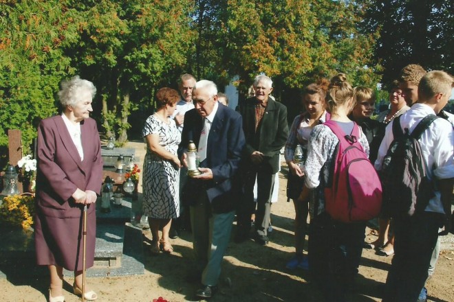 Dnia 17 września 2014 r. w Kwilczu uroczyście obchodzono Dzień Sybiraka z udziałem mieszkańców gminy oraz społeczności szkolnej Zespołu Szkół w Kwilczu. Uroczystość zorganizowano przy współpracy z Centrum Kultury i Edukacji im. Floriana Mazurkiewicza. Przybyłych na uroczystość gości i uczniów powitała dyrektor szkoły Agata Tomkowiak. W swojej wypowiedzi odwołała się do tragedii Sybiraków i podkreśliła, jak ważna jest pamięć o tych wydarzeniach i o ludziach, którzy doświadczyli okrutnego losu zesłania. Po wystąpieniu dyrektor szkoły młodzież gimnazjalna zaprezentowała montaż słowno-muzyczny zatytułowany „Dlaczego należy pamiętać?”. Szkolni aktorzy próbowali w krótkich scenkach i utworach poetyckich przywołać klimat tamtego okresu i oddać tragizm losów i ofiarność tych, którzy doświadczyli pobytu na „nieludzkiej ziemi”. Ze sceny recytowano z przejęciem: „Zabrano mi ojczyznę i dom rodzinny, zapędzono w świat męki, taki obcy, inny”. Młodzież z dużym zaangażowaniem wcieliła się w postać kobiety wycieńczonej i szukającej pożywienia dla dzieci czy też w bezdusznego sowieckiego nadzorcę. Utwory szkolnego chóru dopełniały nastrój powagi i nostalgii, który był wpisany w przeżycia Sybiraków. Ważnym elementem scenografii były biało-czerwona flaga i prezentacja multimedialna stworzona z autentycznych fotografii z tamtego okresu. Na zakończenie młodzież zwróciła się z apelem: „Nie wolno nam zapomnieć więzień i łagrów sowieckich, zagłady Żydów i niemieckich obozów śmierci; musimy pamiętać o tej lekcji historii, aby nigdy więcej się nie powtórzyła”. Po tym apelu odśpiewano Rotę. Następnie w dużym skupieniu i ciszy wysłuchano przejmujących wspomnień Jadwigi Klawe o pobycie w Kazachstanie i o niezwykle dramatycznych losach jej męża – Tomasza Klawego, który przebywał na zesłaniu w kopalni złota na Kołymie. Autentyczne i przejmujące wspomnienia sprawiły, że niejeden ze słuchaczy ukradkiem ocierał łzę. Po wystąpieniu Jadwigi Klawe głos zabrała jej córka – Jolanta Klawe. Nawiązała do książki „Ocalić od zapomnienia”, w której jeden z rozdziałów poświęcony jest przeżyciom jej rodziców. Spisała je, aby zostały utrwalone i przekazane młodszym pokoleniom rodziny, aby pamięć o tym, co przeżyli ich dziadkowie, nie odeszła wraz z nimi. Na zakończenie uroczystości w Centrum Kultury i Edukacji głos zabrał przewodniczący Rady Gminy Grzegorz Korpik, który podziękował za tę lekcję historii, przywołał jej tragiczny wymiar i odwołał się do postaw, które w dzisiejszych czasach są nam potrzebne. Zebrani goście oraz delegacje młodzieży szkolnej wraz z opiekunami udali się na Cmentarz Parafialny, aby symbolicznym zniczem, chwilą zadumy i refleksji oddać pamięć i cześć spoczywającym tam Sybirakom. Nad scenariuszem i całością uroczystości czuwała Olga Lehmann, oprawę muzyczną przygotowała Anna Stasik, pomoc techniczną i organizacyjną zapewnił Marcin Lehmann – nauczyciele Zespołu Szkół w Kwilczu. Olga Lehmann, pedagog Zespołu Szkół w Kwilczu Koło ZS w Międzychodzie zorganizowało także spotkania Sybiraków, ich rodzin i młodzieży przy grobach Sybiraków na cmentarzach w Kamionnie, Sierakowie i Międzychodzie. W Międzychodzie główne uroczystości rozpoczęła msza święta w kościele Niepokalanego Serca Maryi, odprawiona w intencji zamordowanych, zamęczonych i zagłodzonych na Wschodzie. Młodzież z Zespołu Szkół nr 1 przygotowała specjalny program okolicznościowy. Następnie wszyscy zebrali się przy „Tablicy pamięci i wdzięczności Sybiraków”. Przemówienie wygłosił starosta Julian Mazurek. Delegacje złożyły pod tablicą kwiaty. Rangę uroczystości podnosiła obecność pocztów sztandarowych. Na zakończenie Sybiracy i ich rodziny, a także zaproszeni goście spotkali się z władzami powiatu i miasta w restauracji „Carmen”. Adam Nowak, prezes Zarządu Koła ZS w Międzychodzie Uczniowie Zespołu Szkół w Kwilczu w programie okolicznościowym Jadwiga Klawe opowiedziała zebranym o swoich przeżyciach na zesłaniu Zapalenie zniczy na grobie Sybiraków na Cmentarzu Parafialnym w Kwilczu, znicz niesie Walenty Wyrwał, prezes Koła Związku Kombatantów Rzeczypospolitej i Byłych Więźniów Politycznych w Kwilczu Uroczystości na cmentarzu w Sierakowie. Do młodzieży Szkoły Podstawowej i Zespołu Szkół w Sierakowie przemawia Jarosław Łożyński z Towarzystwa Miłośników Ziemi Sierakowskiej. Za nim stoją (od prawej) prezes TMZS Ryszard Jaskuła, burmistrz Sierakowa Witold Maciołek i Adam Nowak – prezes Zarządu Koła ZS w Międzychodzie Spotkanie z uczniami Szkoły Podstawowej w Kamionnie, przemawia Zenon Napierała Uroczystość przy „Tablicy pamięci i wdzięczności Sybiraków” w Międzychodzie. Przy mikrofonie prezes Zarządu Koła ZS w Międzychodzie Adam Nowak Dekoracja ks. Romana Grocholskiego, proboszcza parafii Niepokalanego Serca Maryi, Odznaką Honorową Sybiraka przez wiceprezesa Zarządu Koła Mieczysława Wirszyca (pośrodku) i starostę Juliana Mazurka Odznaczenie Wiktora Prokopowicza Srebrną Odznaką Honorową za Zasługi dla Związku Sybiraków Przeczytano 41 Nawigacja wpisu Odsłonięcie pomnika Zesłańców Sybiru w Rzeszowie Obchody Dnia Sybiraka w Dębnie