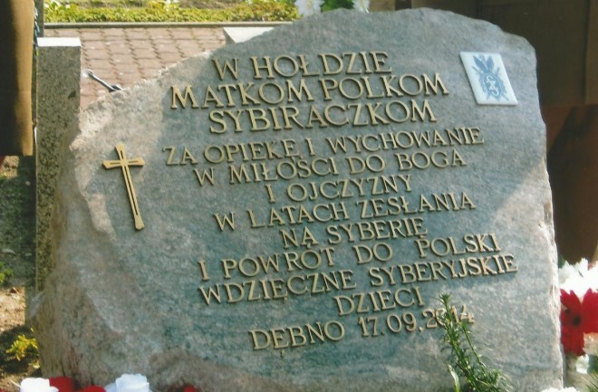 Obchody Dnia Sybiraka miały w tym roku szczególnie uroczysty charakter. Wiązały się bowiem z 25. rocznicą powstania Koła Związku Sybiraków w Dębnie (Oddział w Gorzowie Wielkopolskim) oraz z odsłonięciem tablicy pamiątkowej na kamieniu polnym usytuowanym przy pomniku Sybiraka na cmentarzu przy ul. Włościańskiej. Zarząd Koła od dawna pragnął oddać hołd wszystkim kobietom – matkom, które trafiły w tryby stalinowskiej machiny. Chylimy czoła przed tymi, które nie zniosły trudu zesłania, ale i przed tymi, które dotarły do miejsc przeznaczenia i tam, tysiące kilometrów od domu, własnymi rękami próbowały odtworzyć skrawek Polski. 17 września o godz. 10 odprawiona została msza święta w kościele pw. św. św. Apostołów Piotra i Pawła w Dębnie. Już w kościele ustawiły się poczty sztandarowe. Mszę odprawiał proboszcz tamtejszej parafii ks. Jacek Jaszewski. Celebrantami byli księża Daniel Nowocień i Edward Skiba – wikariusz z parafii Matki Bożej Fatimskiej. Ministrantami byli: Henryk Moskalik, syn Sybiraczki i kościelny Paweł Popławski. Homilię wygłosił ks. Jacek Jaszewski. Powiedział, że tradycją stały się obchody upamiętniające rocznice i święta Sybiraków, a towarzyszą im wspomnienie rozłąki, ból tęsknoty i widoczność śmierci. Wiceburmistrz Piotr Czepułkowski odczytał Hymn o miłości z Listu św. Pawła do Koryntian. Po mszy udaliśmy się na cmentarz przy ul. Włościańskiej. Liczna grupa zebranych Sybiraków i sympatyków Związku uświetniła uroczystość. Sztandary i flagi nadawały jej odświętny charakter. Poczet sztandarowy stanowiła młodzież szkolna. Przy sztandarze Koła Związku Sybiraków w poczcie stanęli uczniowie Gimnazjum Publicznego im. A. Fiedlera w Dębnie – Natalia Skulisz, Joanna Rawska, Paweł Korzeniowski. Poczet sztandaru Zespołu Szkół Ponadgimnazjalnych nr 1 im. J. Słowackiego stanowili Karolina Potaniec, Bartosz Zaradzki i Luiza Kwarcińska. Przy sztandarze Ligi Obrony Kraju – Olivier Syroka, Anna Włodkowska-Moszej i Weronika Krawczuk. Przy sztandarze Koła Związku Kombatantów RP i Byłych Więźniów Politycznych – w mundurach Związku Strzeleckiego „Strzelec” Wągrowiec Oleh Fedyna, Paweł Laszek, Artur Paczewski. Nie zabrakło burmistrza miasta Dębna Piotra Downara, wraz z radnymi Adamem Kaczmarczykiem, Andrzejem Dobrowolskim, Krystyną Ziołą z mężem Edwardem, Heleną Sługocką, księży Jacka Jaszewskiego, Daniela Nowocienia i Edwarda Skiby, przedstawicieli Zarządu Oddziału ZS w Gorzowie Wielkopolskim – wiceprezesa Wincentego Hubskiego, sekretarz Haliny Zalewskiej i członka Zarządu Stanisławy Moroch. Przybyli przedstawiciele Zarządu Okręgowego Związku Inwalidów Wojennych RP w Szczecinie z płk. Stanisławem Kimszalem na czele, a także Koła w Dębnie z prezesem Zdzisławem Pyrą. Związek Kombatantów RP i Byłych Więźniów Politycznych reprezentowała prezes tutejszego Koła Maria Mazur. Byli dyrektorzy – Zespołu Ekonomiczno-Administracyjnego w Dębnie Danuta Patkowska, Zespołu Szkół Ponadgimnazjalnych nr 1 w Dębnie Andrzej Dobrowolski, Gimnazjum Publicznego im. Arkadego Fiedlera Barbara Kornaś, z nauczycielką Magdaleną Umińską, przedstawiciele Liceum Społecznego w Zespole Szkół Stowarzyszenia Oświatowego w Dębnie z ks. Krzysztofem Kobielą, przedstawiciele Zespołu Szkół w Boleszkowicach – z Agnieszką Sztubecką, Przedszkola nr 2 w Dębnie – z dyrektor Dorotą Ulicz, wychowawczynią Iwoną Dumą wraz z dziećmi oraz Przedszkola nr 1 w Dębnie – z dyrektor Joanną Ryżyńską. Udział wzięli Janina Bladyniec i Elżbieta Krupka z drukarni Pol-Graf w Dębnie, przedstawiciele zespołu plastycznego Pastele w Dębnie, chór Srebrny Włos, sympatycy z Boleszkowic, Antoni Żmuda-Trzebiatowski, Czesława Stoparek, Leontyna Grzybek z Sarbinowa i Zielenia, dorosłe dzieci Sybiraków – Andrzej Jędras, Henryk Moskalik i inni, Sybiracy, ich rodziny i sympatycy, Ryszard Czaczka, Józef Cierluk i Stanisław Szóstka. Cmentarz przybrał uroczysty charakter, do czego przyczyniły się flagi państwowe i sztandary. Kamień z napisem pokryty był biało-czerwonym pokrowcem. Obok kamienia stała warta – w mundurach wojskowych Marek Aleksandrowicz i Bartosz Ramus. Po krótkim przemówieniu okolicznościowym burmistrza miasta Dębna Piotra Downara, odsłonięty został nowy znak pamięci – kamień z napisem poświęconym Matkom Sybiraczkom. Odsłonięcia dokonał burmistrz Piotr Downar z prezes Zarządu Koła Związku Sybiraków Zofią Sadowską. Ks. Edward Skiba z parafii Matki Bożej Fatimskiej i ks. Jacek Jaszewski poświęcili kamień. Liczne delegacje złożyły wiązanki i kwiaty. Prowadzącym uroczystość był radny Adam Kaczmarczyk – stale współpracujący z Kołem Związku Sybiraków w Dębnie. Zebrani udali się następnie do Dębnowskiego Ośrodka Kultury. Tam na ścianie frontowej została przygotowana wystawa – obrazy namalowane przez dzieci z zespołu plastycznego Pastele przy DOK w Dębnie pt. „Syberia w oczach dzieci”. W gablotach umieszczone zostały pamiątki rodzinne Sybiraków. Wystawiona była kronika Koła Związku Sybiraków w Dębnie. Przez 10 lat prowadziła ją z artystycznym talentem Sybiraczka Alina Nawrocka, następne tomy prowadzi Sybiraczka Anna Bukowska. Podobnie jak na cmentarzu, tak i w sali DOK uroczystość prowadził radny Adam Kaczmarczyk. Prezes Zofia Sadowska złożyła krótkie sprawozdanie. Głos zabrali burmistrz Piotr Downar, wiceprezes Zarządu Oddziału ZS w Gorzowie Wielkopolskim Wincenty Hubski, prezes Zarządu Okręgowego Związku Inwalidów Wojennych w Szczecinie płk Stanisław Kimszal, zastępca przewodniczącego Rady Miejskiej Andrzej Dobrowolski. Antoni Żmuda-Trzebiatowski odznaczony został Medalem Opiekuna Miejsc Pamięci Narodowej, Agnieszka Sztubecka – Odznaką Honorową Sybiraka, a Jadwiga Downar, Henryk Bondini i Adam Kaczmarczyk – Krzyżem 95-lecia ZIW 