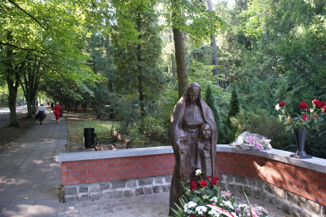 W 75. rocznicę napaści sowieckiej na Polskę, 17 września, w Dniu Sybiraka na Cmentarzu Centralnym w Szczecinie odbyła się uroczystość poświęcona ofiarom represji stalinowskich. W tym roku uroczystość miała charakter wyjątkowy. Marszałek województwa zachodniopomorskiego Olgierd Geblewicz wraz z harcerzami ze Szczepu „Ognia” odsłonił pomnik Matki Sybiraczki, a arcybiskup diecezji szczecińsko-kamieńskiej Andrzej Dzięga w asyście czterech księży, w tym kapelana szczecińskich sybiraków ks. płk. dr. Piotra Sroki, dokonał aktu poświęcenia. Pomnik stanął na największym cmentarzu w kraju (trzecim w Europie) w Kwaterze Sybiraków i jest dziełem szczecińskich artystów plastyków Ewy i Leszka Soroczyńskich. Autorem projektu architektonicznego całego kompleksu pomnika jest syn Sybiraczki, architekt Krzysztof Adamiec. Pomnik mógł powstać dzięki znacznej pomocy finansowej województwa zachodniopomorskiego, a także dzięki ofiarności Sybiraków i ich sympatyków. W dniu 15 września, podczas umieszczania pomnika na przeznaczonym miejscu dokonano uroczystego wmurowania Aktu Erekcyjnego. Odsłonięcia pomnika Matki Sybiraczki dokonał marszałek województwa zachodniopomorskiego Olgierd Geblewicz wraz z harcerzami ze Szczepu „Ognia” Wystąpienie prezes Zarządu Oddziału ZS w Szczecinie Iwony Biedulskiej. Od lewej prezydent Szczecina Piotr Krzystek, dyrektor Gabinetu Marszałka Krzysztof Barczyk, poseł na Sejm RP Magdalena Kochan, marszałek Olgierd Geblewicz Od lewej: proboszcz ks. Wacław Nowak – opiekun goleniowskich Sybiraków, proboszcz parafii prawosławnej ks. Paweł Stefanowski, ks. Kazimierz Łukianiuk – proboszcz parafii pw. św. Rafała Kalinowskiego w Nowogardzie, ks. abp Andrzej Dzięga, ks. płk Piotr Sroka – kapelan szczecińskich Sybiraków Kwiaty dla nielicznych już Matek Sybiraczek Kompleks pomnika Sybiraków na Cmentarzu Centralnym Oprac.: Iwona Biedulska Przeczytano 130 Nawigacja wpisu Obchody Dnia Sybiraka w Dębnie Odsłonięcie tablicy pamiątkowej w Kuźnicy Czarnkowskiej