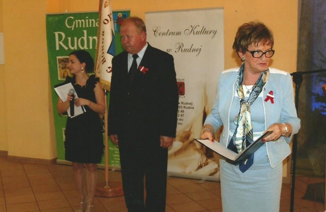 Dnia 17 września 2014 r., w Dniu Sybiraka w Centrum Kultury w Rudnej miała miejsce niezwykła uroczystość nadania sztandaru Kołu Związku Sybiraków w Rudnej. Swoją obecnością zaszczycili m.in.: prezes Zarządu Oddziału Związku Sybiraków w Legnicy Maria Jurkiewicz, przedstawiciel Zarządu Głównego ZS Henryk Olejnik, prezes Zarządu Koła ZS w Rudnej Kamila Mazurek, wicewojewoda dolnośląski Ewa Mańkowska, JE ks. bp Stefan Cichy, sekretarz miasta Legnica Marek Białowąs, przedstawiciele gminy Rudna: wójt Władysław Bigus, przewodniczący Rady Gminy Jerzy Stankiewicz oraz radni i sołtysi gminy Rudna. Koło Związku Sybiraków w Rudnej powołano w 1989 r., 11 czerwca w ówczesnym Gminnym Ośrodku Kultury odbyło się pierwsze zebranie, na którym dokonano wyboru Zarządu. Przewodniczącym pierwszego Zarządu został Zbigniew Bisikierski. W zebraniu założycielskim uczestniczyło około 50 osób. W późniejszych latach Koło zostało podzielone na dwa odrębne – w Rudnej oraz Chobieni. W 2007 r. decyzją Zarządu Oddziału Związku Sybiraków w Legnicy, w porozumieniu z władzami gminy oraz za wiedzą i zgodą członków obydwu Kół, dokonano scalenia w jedno Koło Rudna. Prezesem był wówczas Piotr Gerlach, który pełnił tę funkcję do 2008 r. W czerwcu 2008 r. po jego rezygnacji z funkcji prezesa wybrano nowy Zarząd, a prezesem została Kamila Mazurek, która pełni tę funkcję do dziś. W chwili obecnej Koło liczy 54 członków, jednak liczba ta wciąż maleje. Wątłe zdrowie i podeszły wiek nie sprzyjają dużej aktywności zrzeszonych, jednak pomimo przeciwności zawsze starają się wywiązać ze swojej społecznej misji dawania żywego świadectwa o tragicznej historii Polski. Uroczystości Dnia Sybiraka rozpoczęły się mszą świętą w intencji Sybiraków w kościele parafialnym pw. Świętej Trójcy w Rudnej, podczas której odbyło się poświęcenie sztandaru. Po mszy wszyscy udali się do budynku Centrum Kultury w Rudnej, gdzie odbyła się druga, bardzo ważna część uroczystości. Część oficjalna rozpoczęła się wprowadzeniem pocztów sztandarowych, odśpiewaniem hymnów oraz uczczeniem minutą ciszy poległych Sybiraków. Następnie przekazano sztandar Kołu Związku Sybiraków w Rudnej. Akt nadania sztandaru odczytała prezes Zarządu Oddziału Związku Sybiraków w Legnicy Maria Jurkiewicz, która wraz z wójtem gminy Rudna Władysławem Bigusem dokonała uroczystego przekazania sztandaru. Wójt gminy w swojej przemowie powiedział: „W takich podniosłych chwilach jak to dzisiejsze spotkanie ze szczególną mocą uświadamiamy sobie, jak ważnym moralnym obowiązkiem jest zachowanie pamięci o ofiarach reżimu. Upływ czasu nie może nas współcześnie żyjących oraz przyszłych pokoleń zwolnić z tej powinności. Pamiętajmy, że naród, który nie kultywuje pamięci swoich przodków, jest skazany na zagładę. Nam, którzy historię znamy z podręczników i opowieści uczestników tych tragicznych wydarzeń, nie wolno zapomnieć o was, którzy jesteście żywym świadectwem martyrologii narodu”. Głos zabrała również prezes Zarządu Oddziału Związku Sybiraków w Legnicy Maria Jurkiewicz oraz wicewojewoda dolnośląski Ewa Mańkowska, która powiedziała: „Przeżycia sybirackie stanowią przestrogę dla przyszłych pokoleń. Są dowodem na to, iż dociekanie prawdy historycznej jest niezwykle ważne dla poczucia tożsamości Polaków, dla odbudowy szacunku dla państwa prawa i tradycji narodowych. Pragnę wyrazić wdzięczność i słowa uznania ludziom, którzy oddali życie za wierność ojczyźnie, oraz tym, którzy po zniszczeniach wojennych odbudowali Polskę, ludziom silnym, prawym, mądrym i sprawiedliwym”. Na zakończenie części oficjalnej nastąpiło wręczenie honorowych medali i odznaczeń Sybirakom oraz osobom zasłużonym dla Związku Sybiraków, a także przekazanie podziękowań dla sponsorów sztandaru. Następnie w części artystycznej młodzież w montażu słowno-muzycznym pokazała, że pamięta i szanuje – najszczerzej i najpiękniej, jak potrafi. Zaprezentowany w przejmującej ciszy i skupieniu występ zgromadzeni nagrodzili brawami na stojąco. Warto na zakończenie jeszcze raz przytoczyć słowa wójta gminy Rudna Władysława Bigusa: „Ufam, że dzisiejsze obchody pozostawią trwały ślad w sercach i umysłach wszystkich uczestników, ale także będą cenną lekcją historii i patriotyzmu dla młodzieży”. I tak się stało, Dzień Sybiraka połączony z przekazaniem sztandaru Kołu Związku Sybiraków w Rudnej na długo pozostanie uczestnikom spotkania w pamięci. Po zakończeniu uroczystości zaproszeni goście mieli okazję zobaczyć wystawę prac plastycznych pt. „Pastelowe barwy zła Sybir”, przygotowaną przez dzieci i młodzież uczęszczających na zajęcia organizowane w Centrum Kultury w Rudnej. Oprac.: /RH/, „Nowiny Gminne” nr 9 (164), wrzesień 2014 Poza centralnymi obchodami Dnia Sybiraka w Rudnej na szczególną uwagę zasługują uroczystości zorganizowane 25 września przez Koło ZS w Jaworze. Rozpoczęła je msza święta w kościele pw. św. Marcina. Po mszy uczestnicy udali się pod obelisk ku czci Sybiraków na dziedzińcu kościoła, gdzie zapalono znicze i złożono kwiaty w hołdzie poległym na zesłaniu. Zarząd Oddziału Związku Sybiraków w Legnicy reprezentowali: prezes Maria Jurkiewicz, wiceprezes Wanda Puchała i skarbnik Antoni Dziemirowicz. Następnie wszyscy udali się do Teatru Miejskiego, gdzie referat okolicznościowy wygłosił prezes Zarządu Koła Michał Janczewski. Głos zabrał przedstawiciel poseł na Sejm RP Elżbiety Witek, a prezes Maria Jurkiewicz przedstawiła młodzieży smutną historię przeżyć Sybiraków. Osoby zasłużone zostały odznaczone. Na koniec ze specjalnym programem wystąpiła młodzież ze Szkoły Podstawowej nr 1. Podobne uroczystości zorganizowane przez władze samorządowe odbyły się w Kołach w Ści